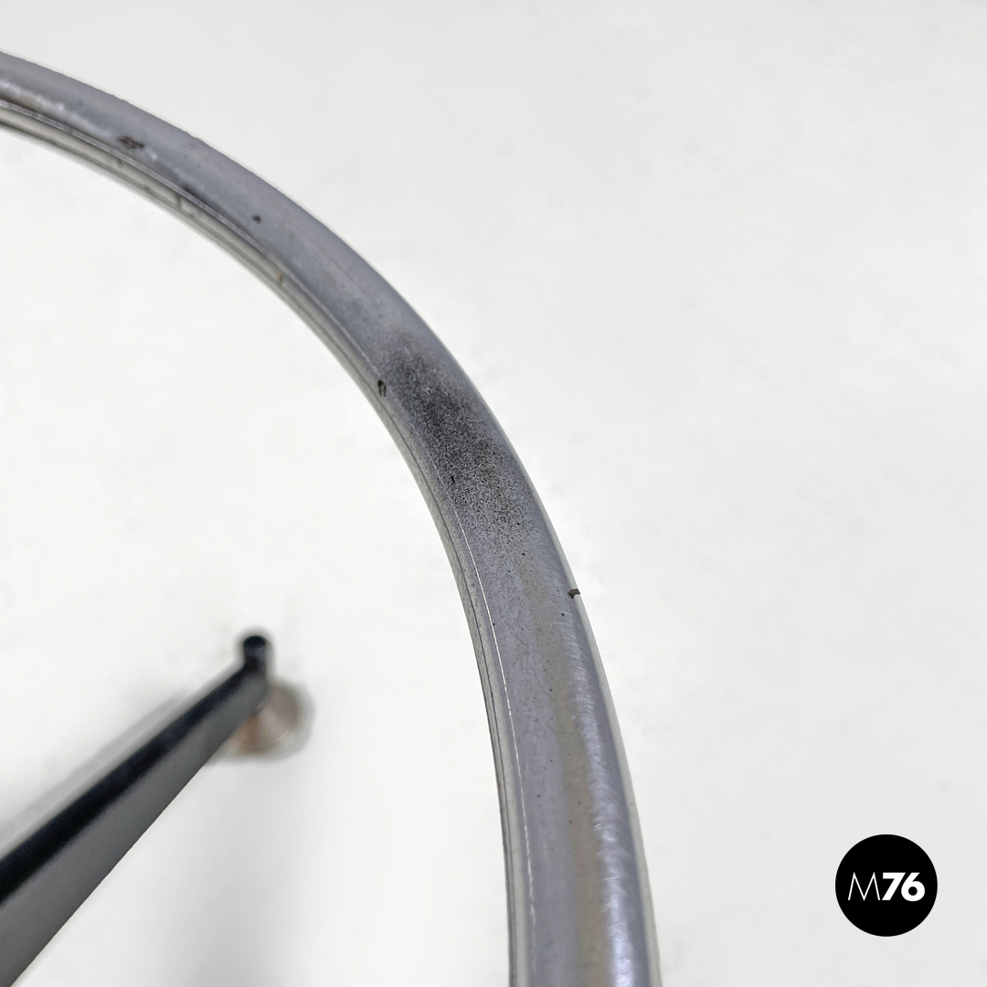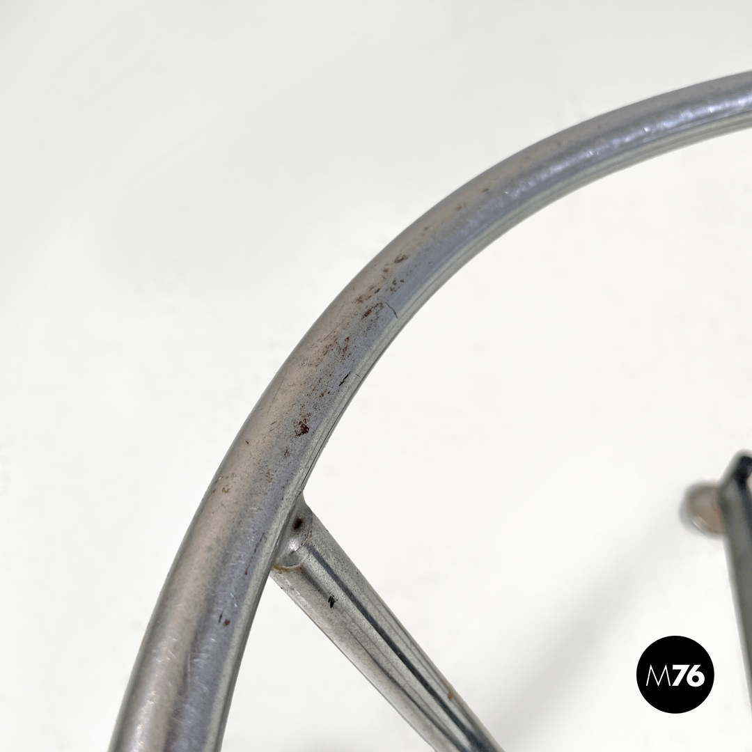 Buone condizioni, con segni dell’uso e del tempo, ossidazioni e un leggero alone di vernice sul poggiapiedi.