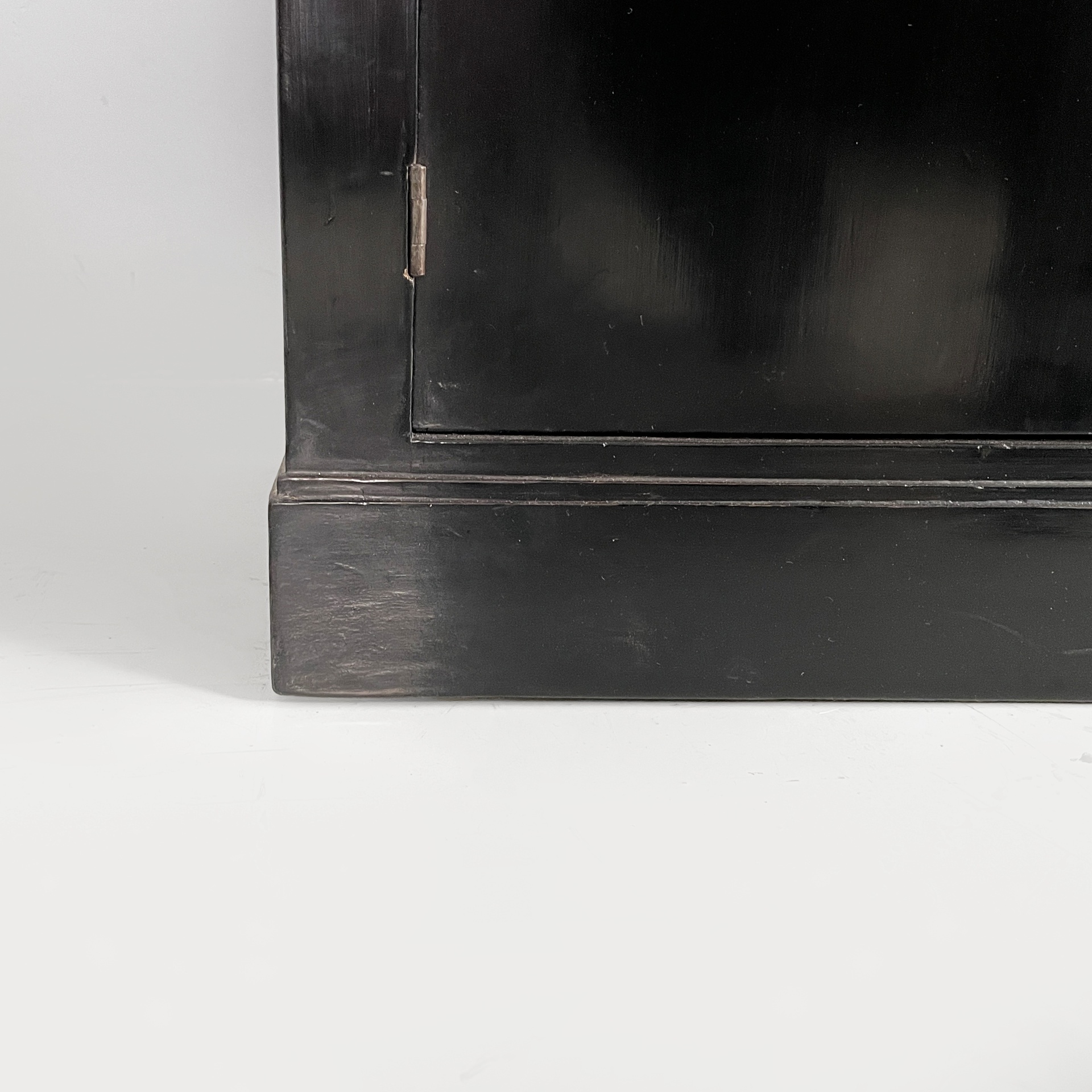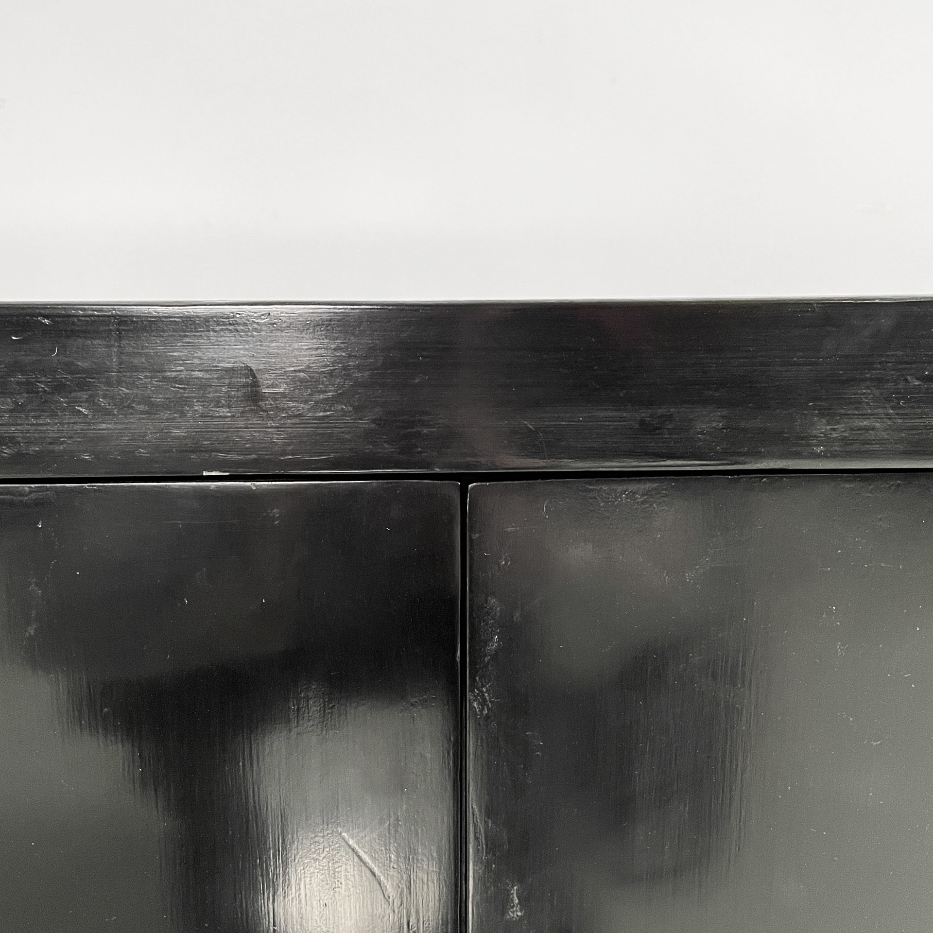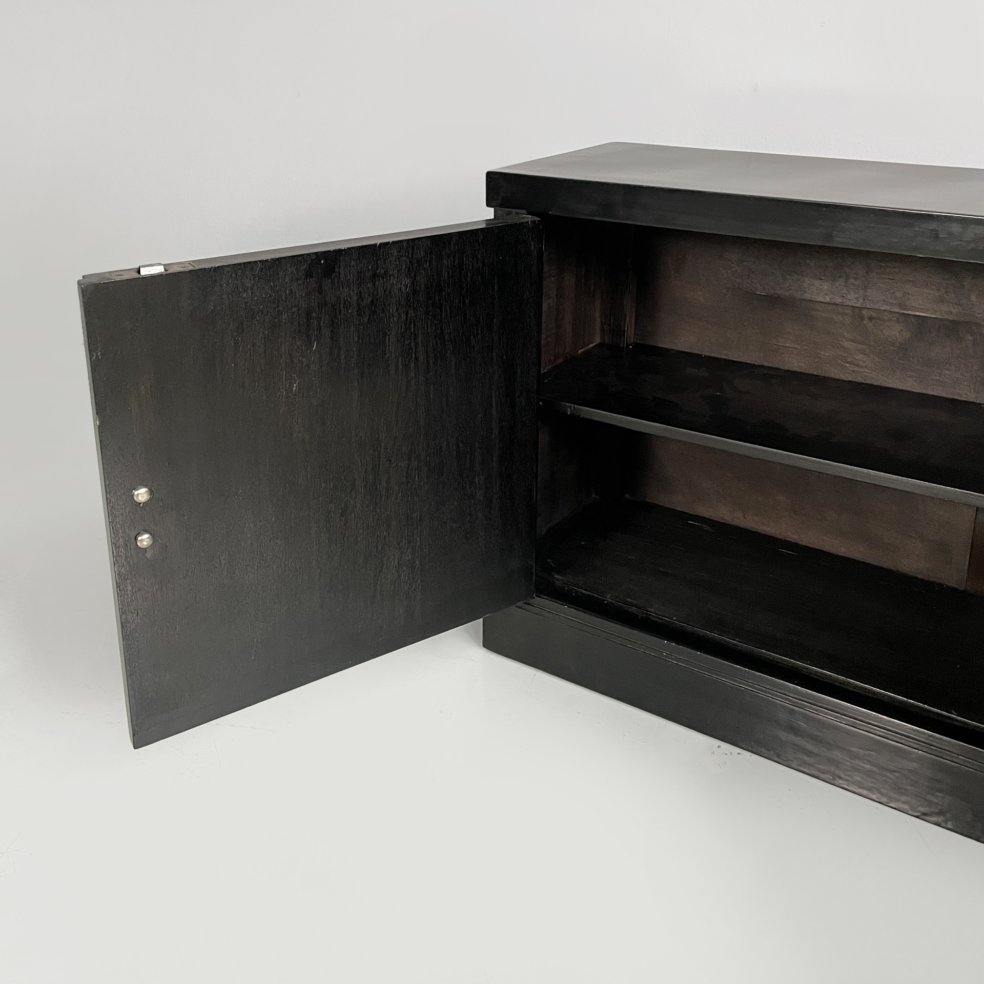 Sideboard a base rettangolare in legno verniciato nero. Sul fronte è presente un vano con quattro ante a battente e maniglie in ottone curvato. Mensola interna in legno nero. Art Deco.