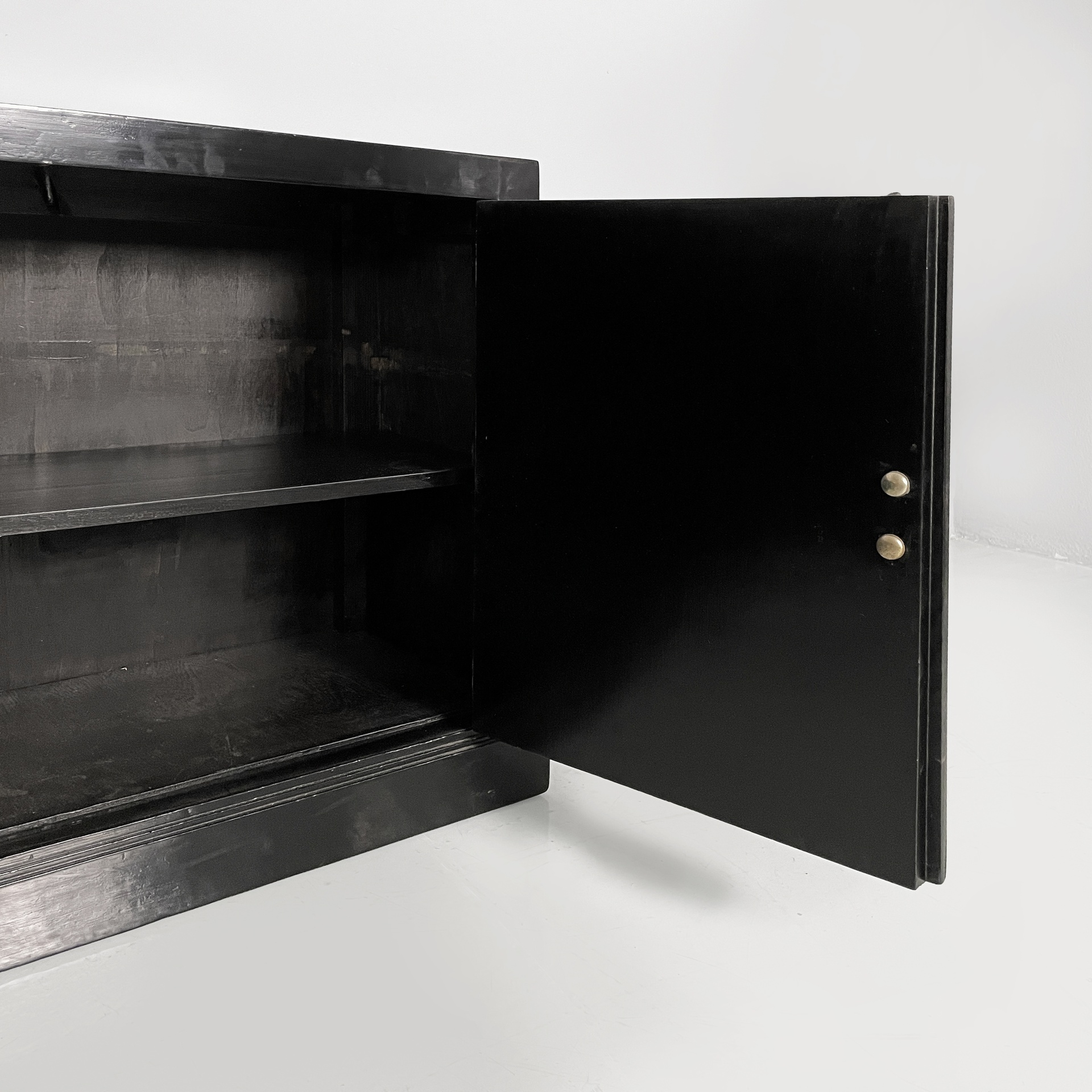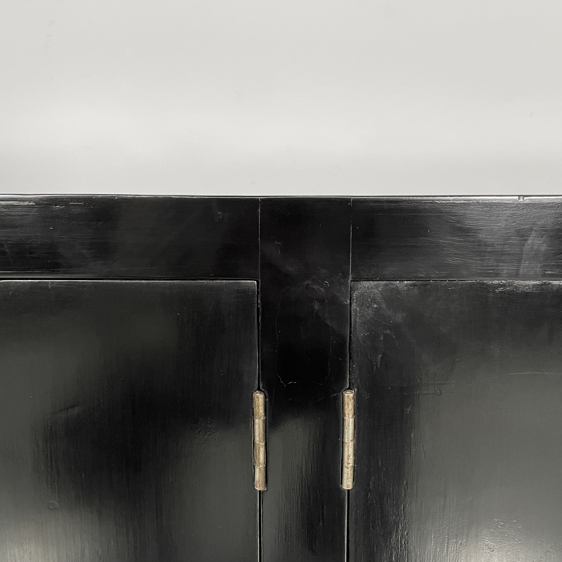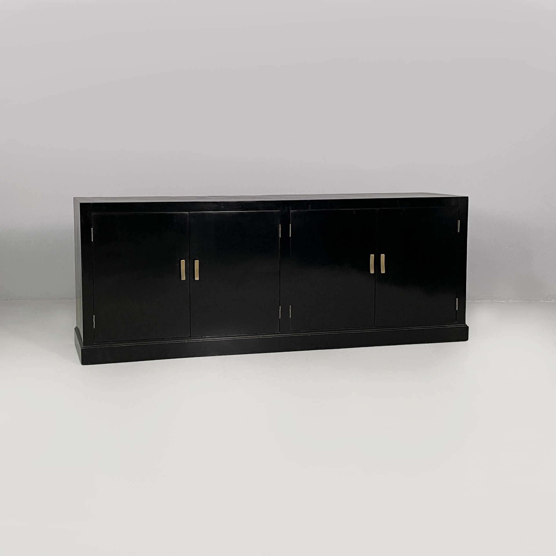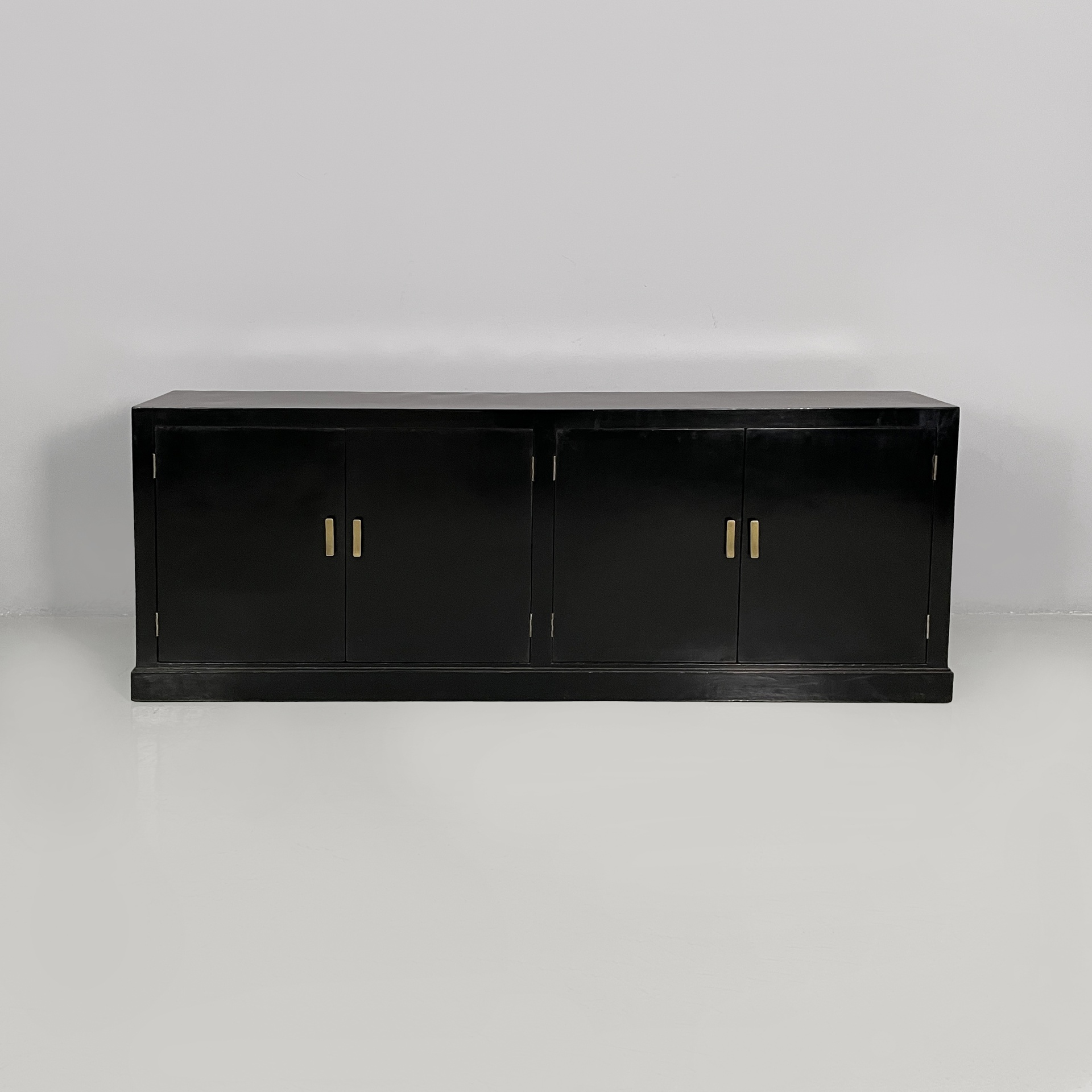 Sideboard a base rettangolare in legno verniciato nero. Sul fronte è presente un vano con quattro ante a battente e maniglie in ottone curvato. Mensola interna in legno nero. Art Deco.