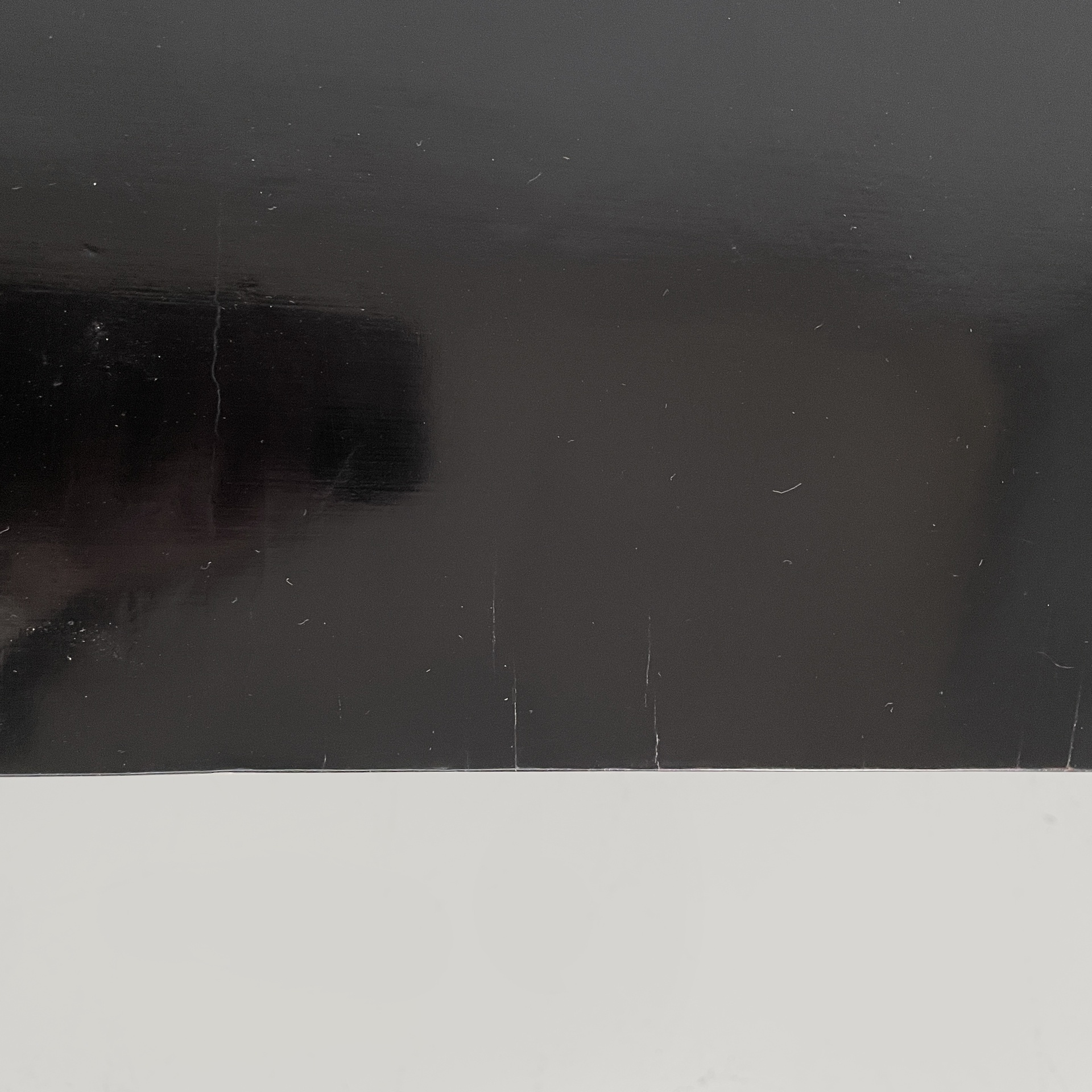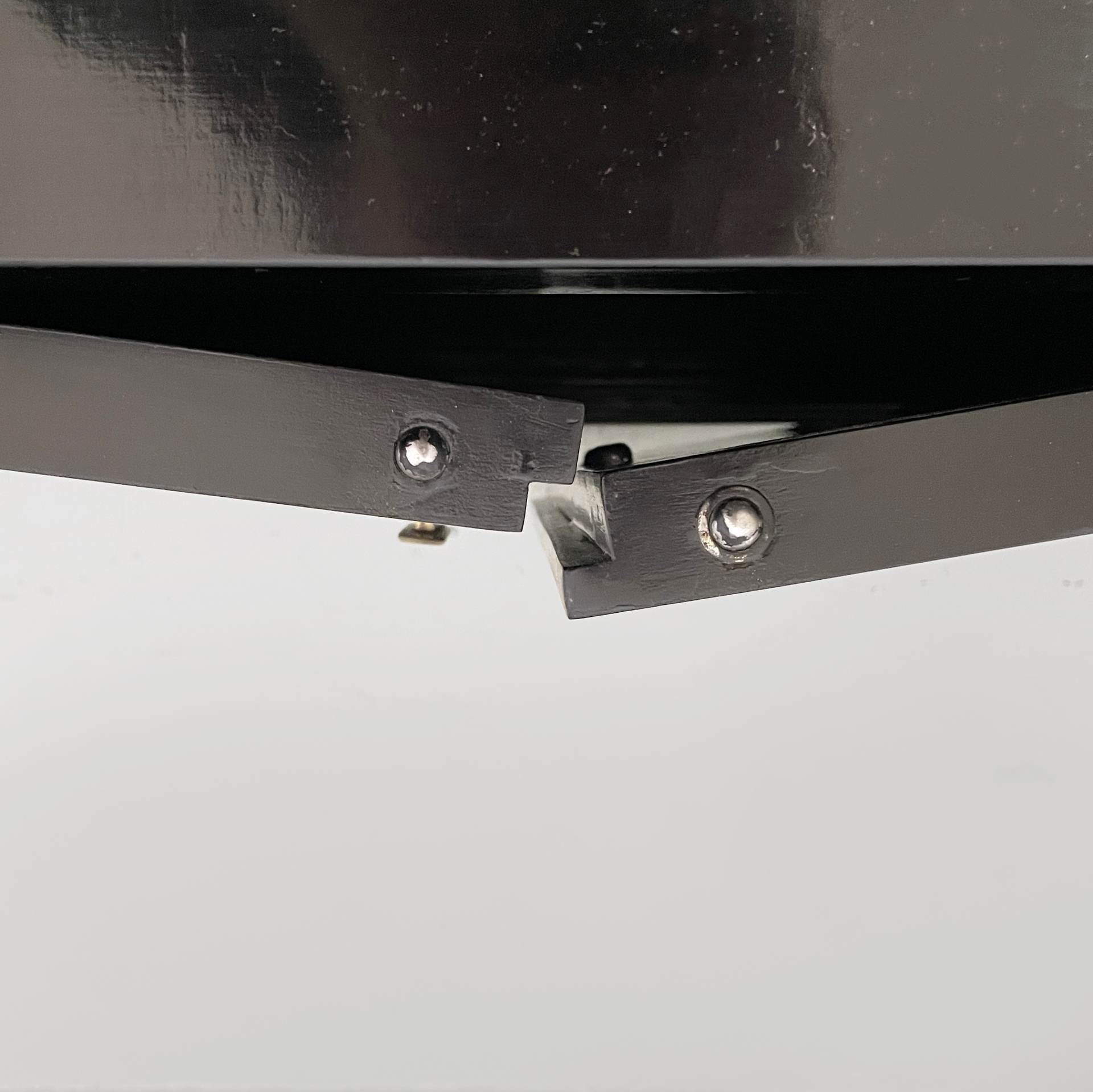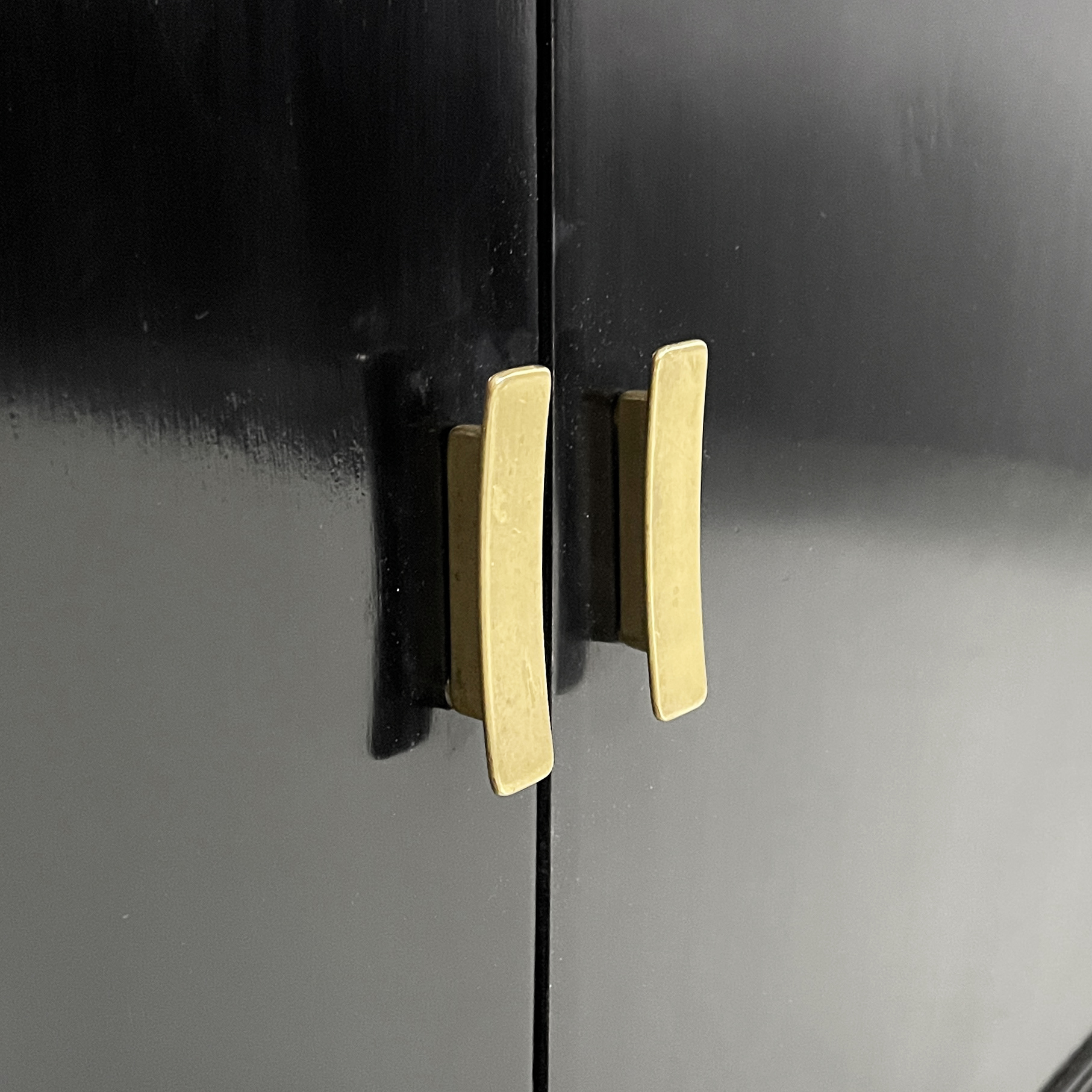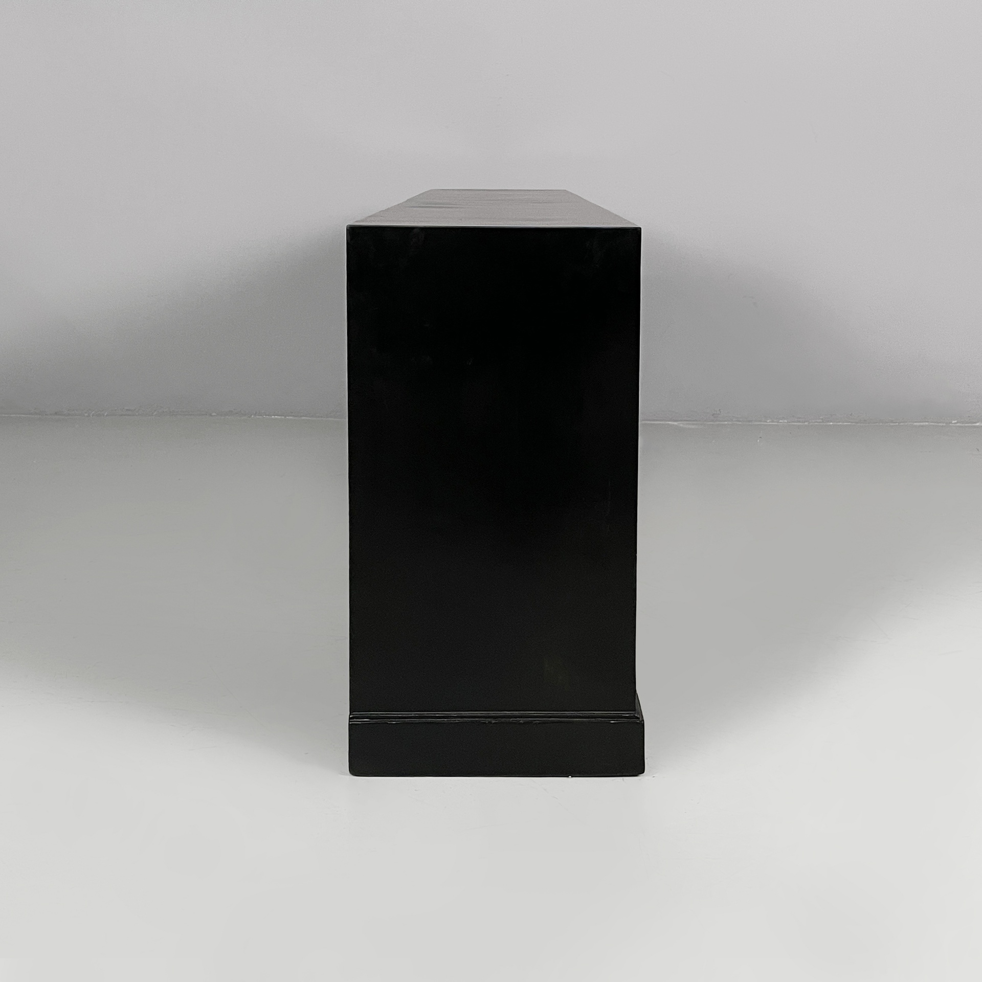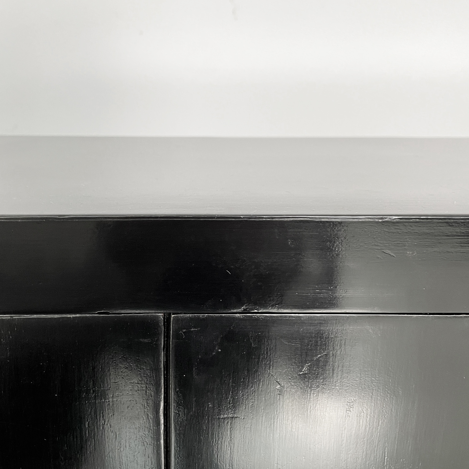 Sideboard a base rettangolare in legno verniciato nero. Sul fronte è presente un vano con quattro ante a battente e maniglie in ottone curvato. Mensola interna in legno nero. Art Deco.