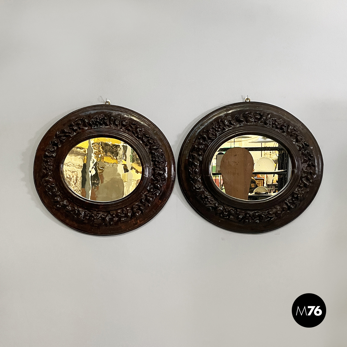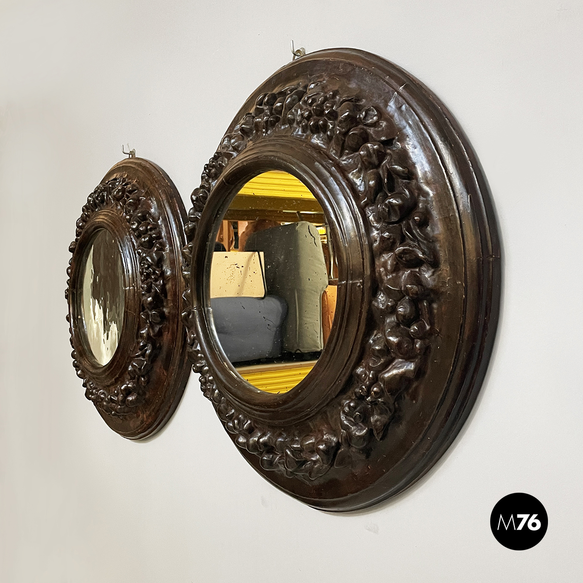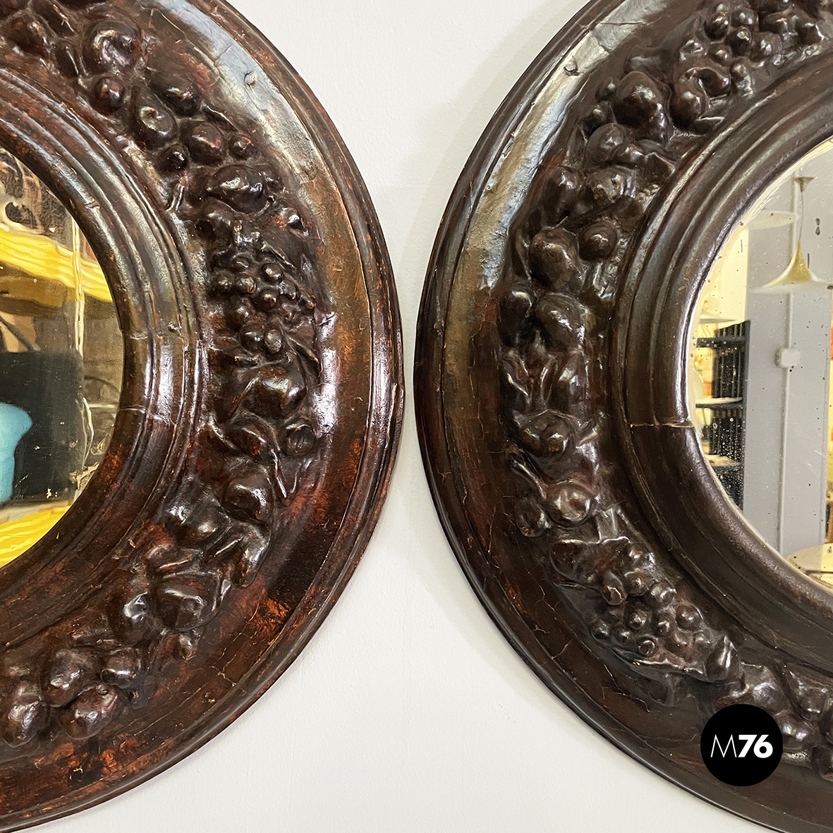 Coppia di specchi da parete ovali con cornice finemente lavorata e decorata in papier-mâché.