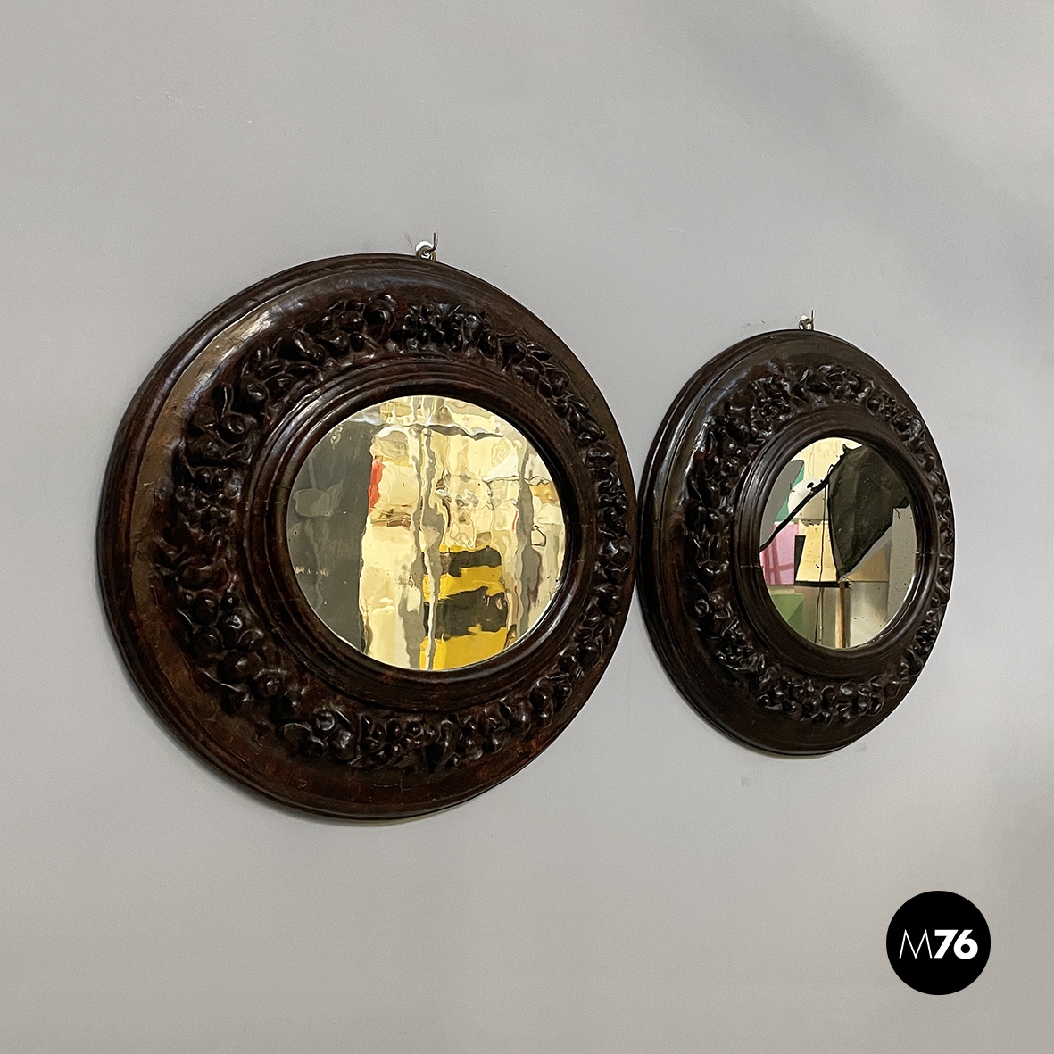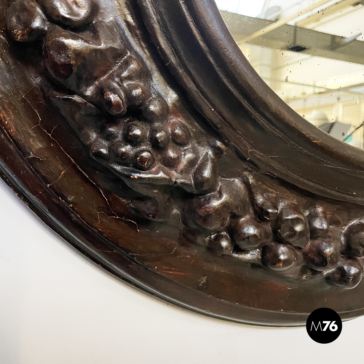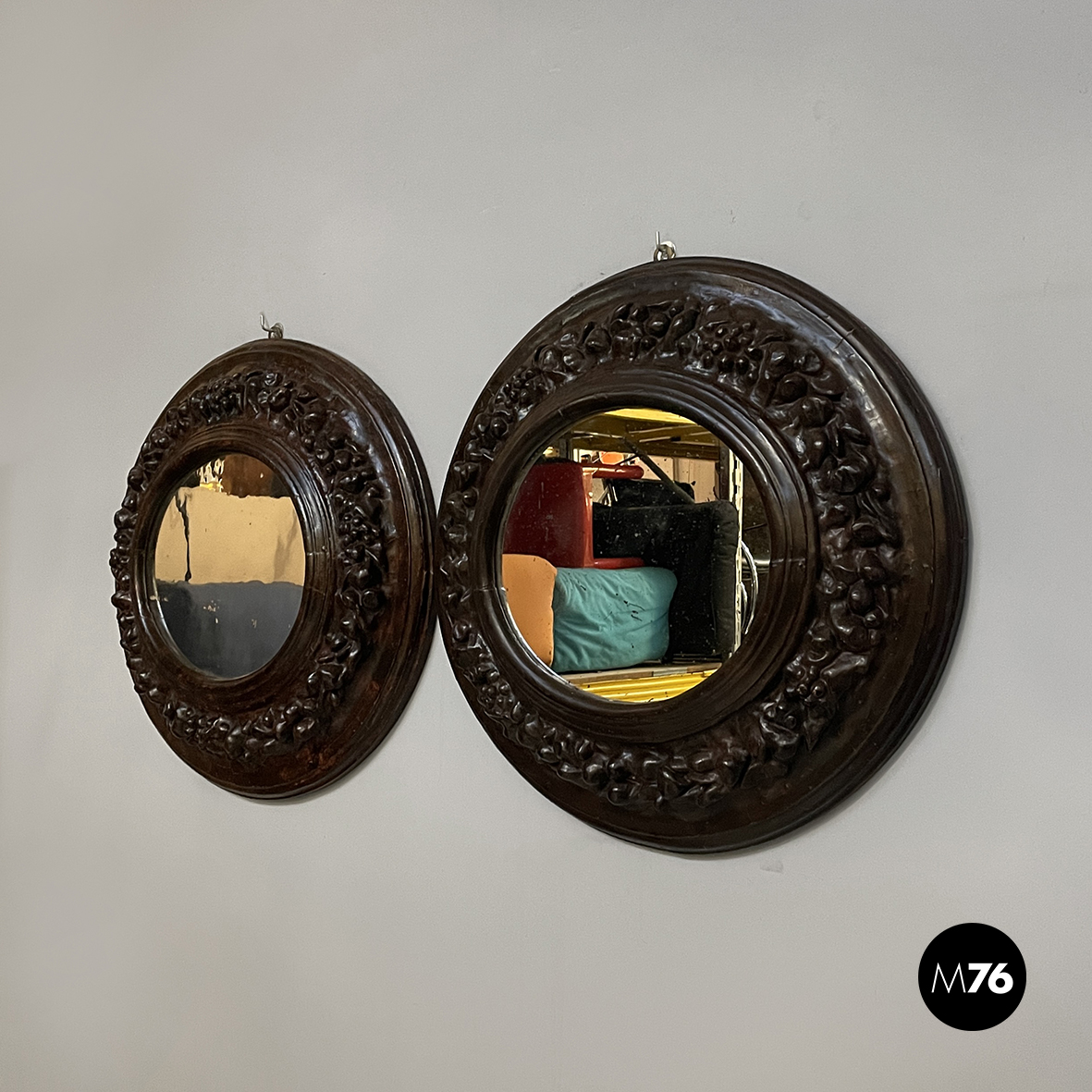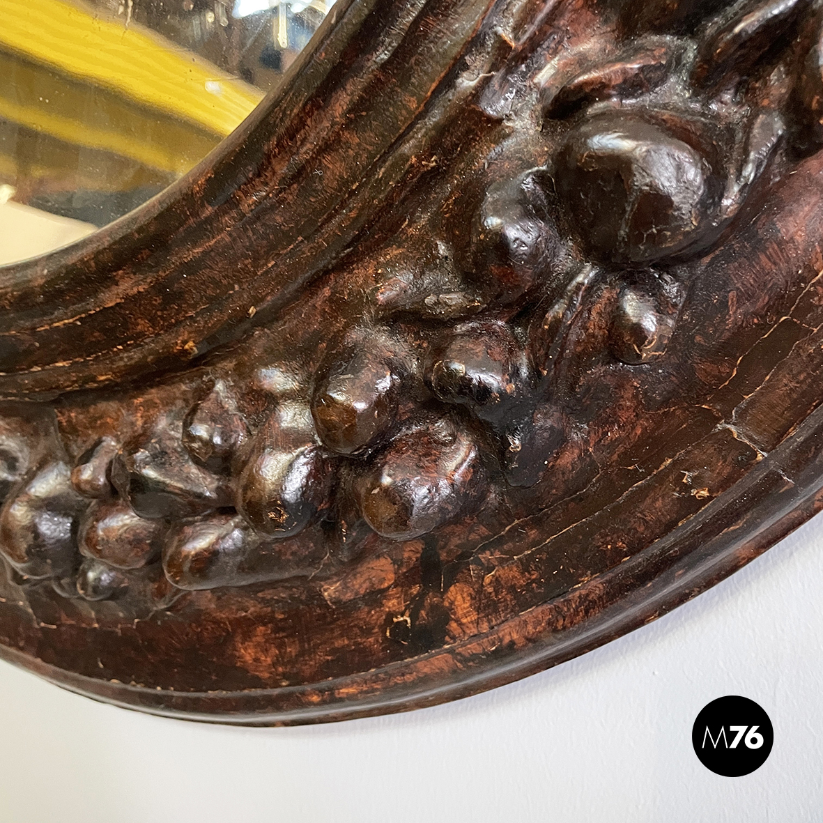 Coppia di specchi da parete ovali con cornice finemente lavorata e decorata in papier-mâché.