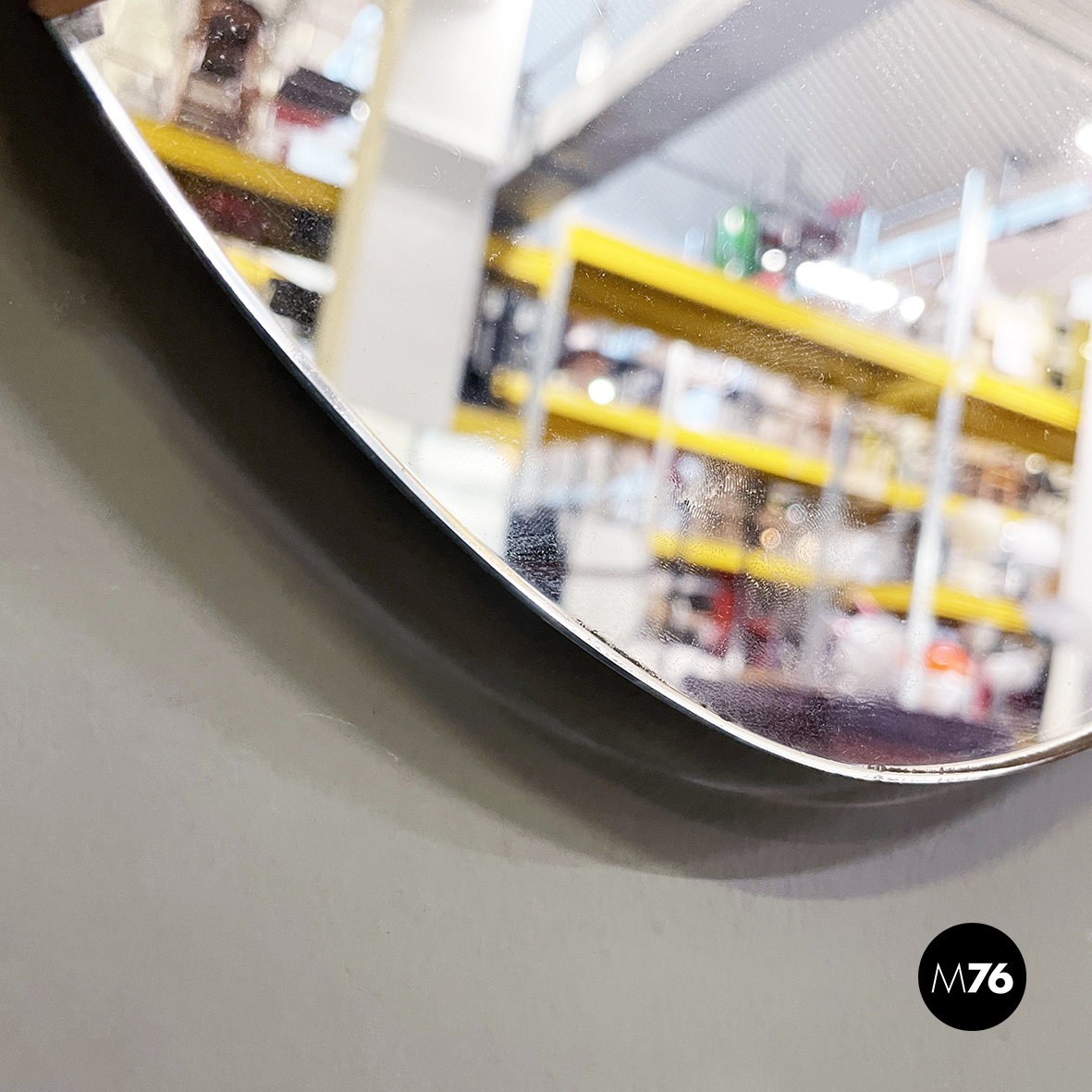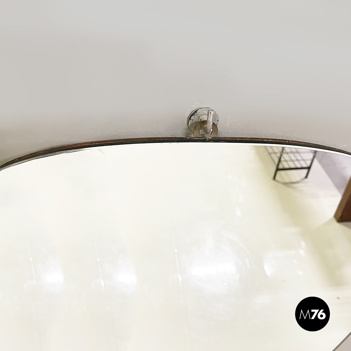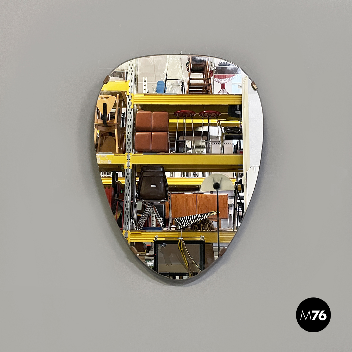 Specchio da parete a forma di scudo. La struttura dello lo specchio è in legno con quattro ganci in ottone brunito, i quali permettono allo specchio di rimanere fissato alla struttura.