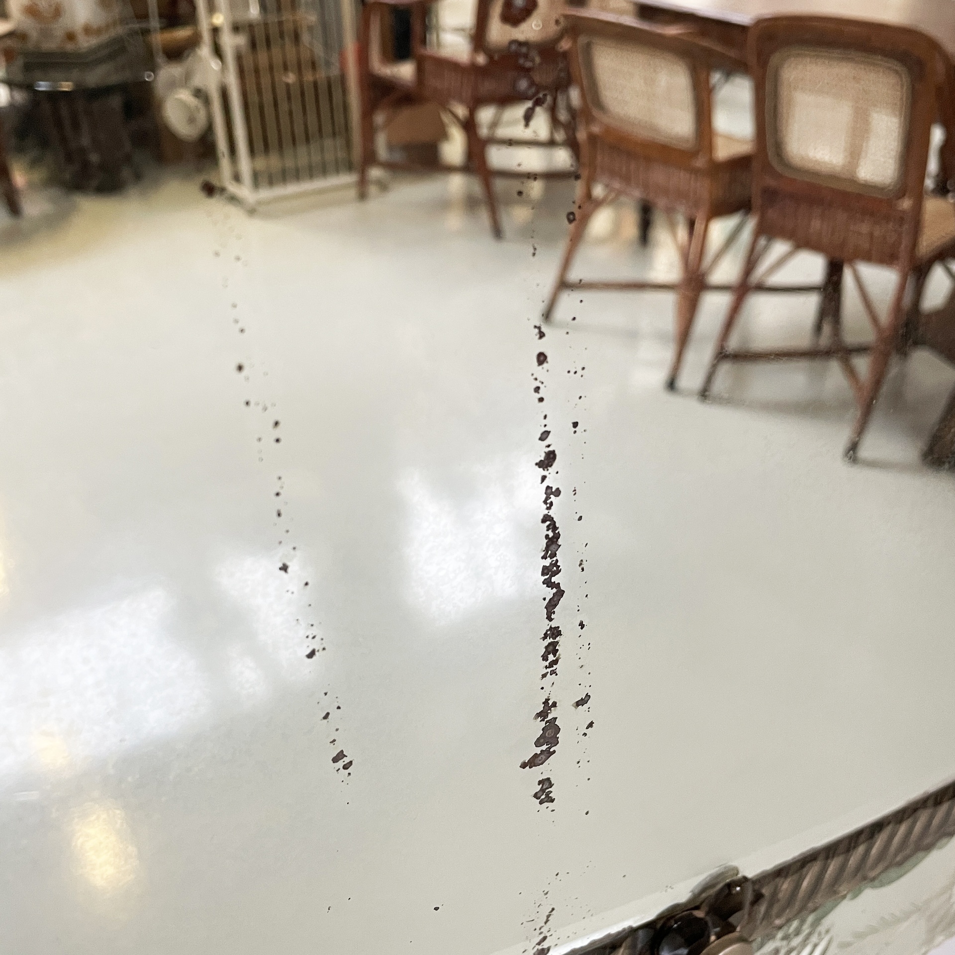 Discrete condizioni, in patina. Presenta piccole mancanze su alcuni decori e segni sullo specchio.