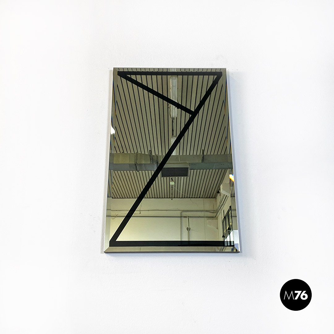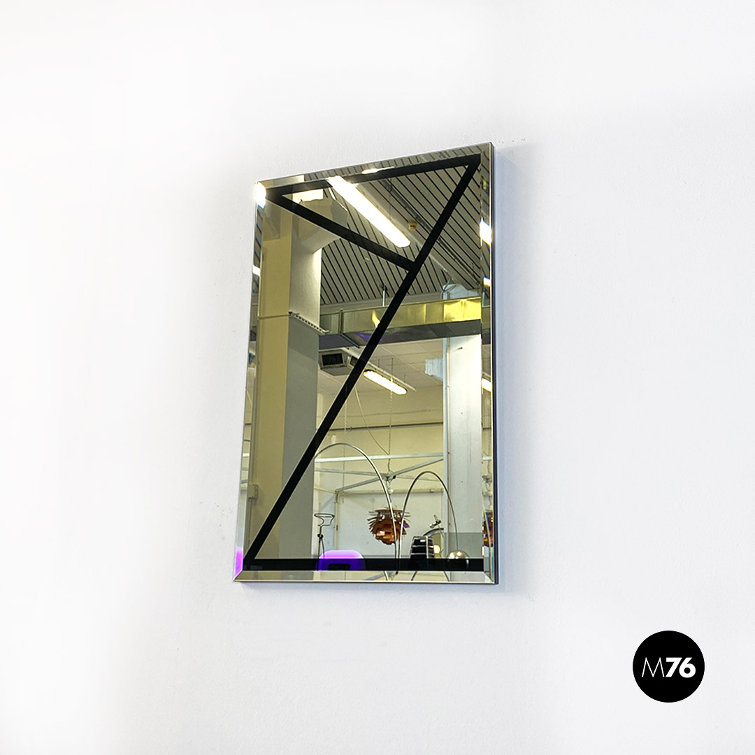 Specchio da parete con motivo geometrico in nero, 1980 ca.