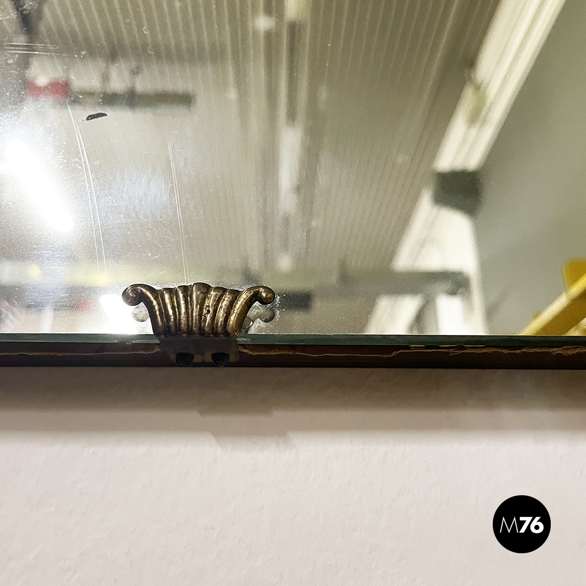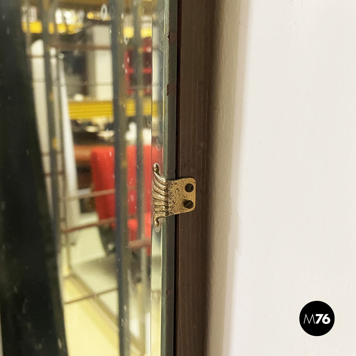 Specchio da parete con ottone brunito e legno, 1960 ca.
