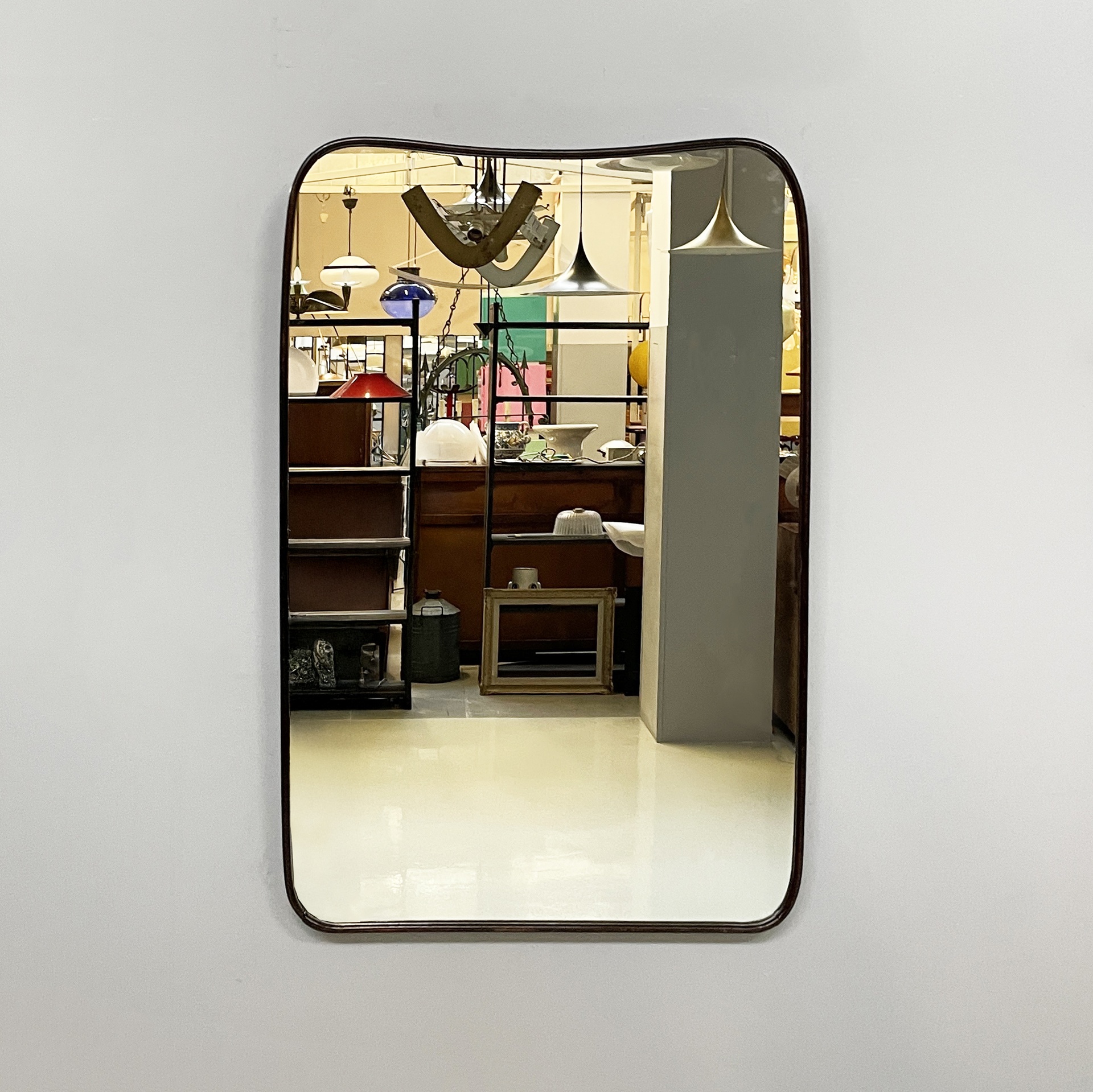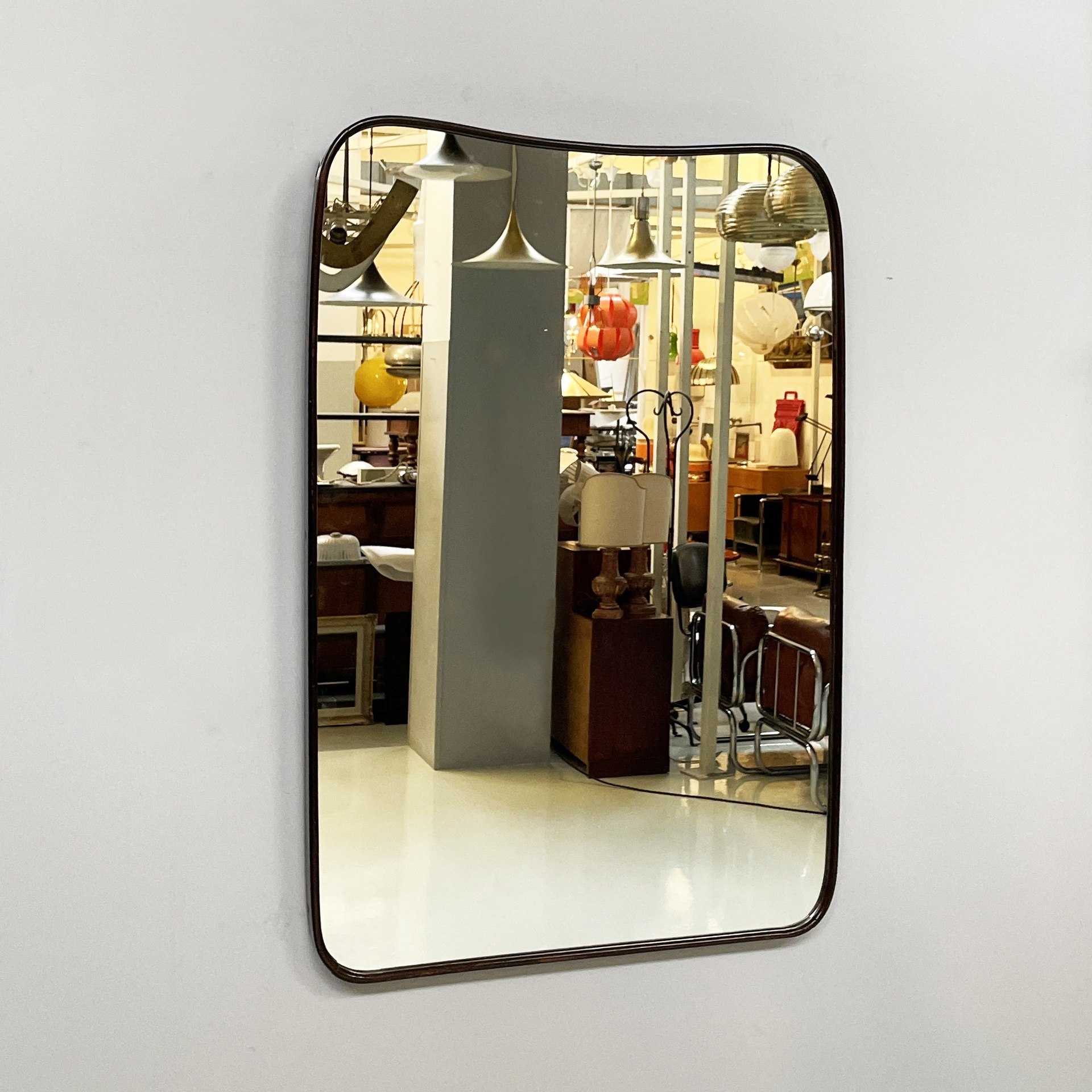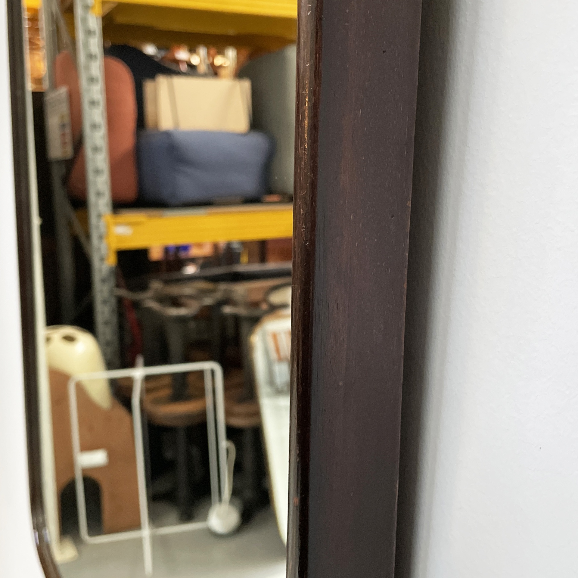 Specchio da parete sagomato e tondeggiante con cornice in legno.