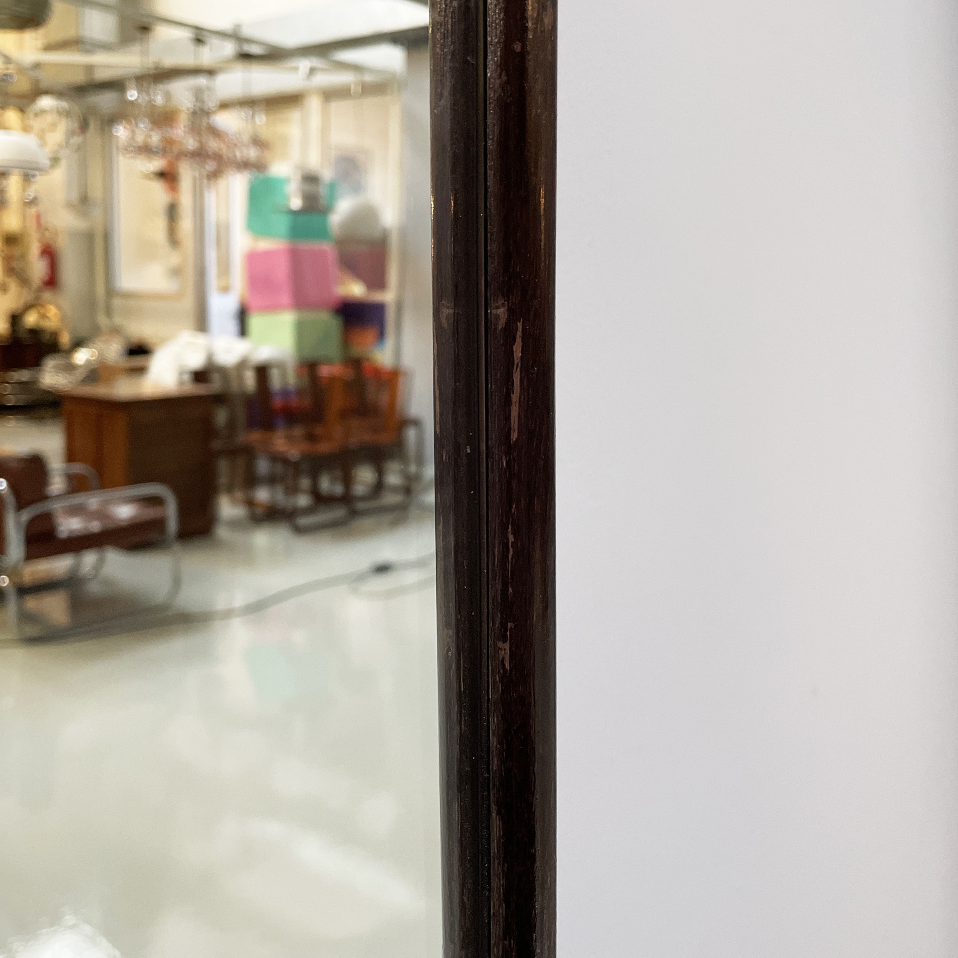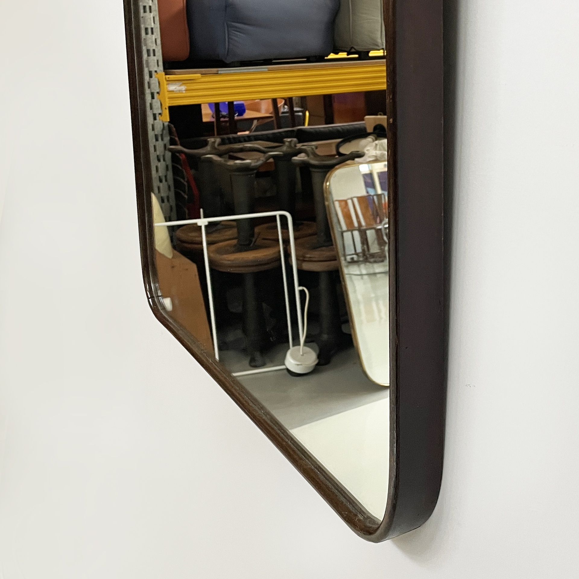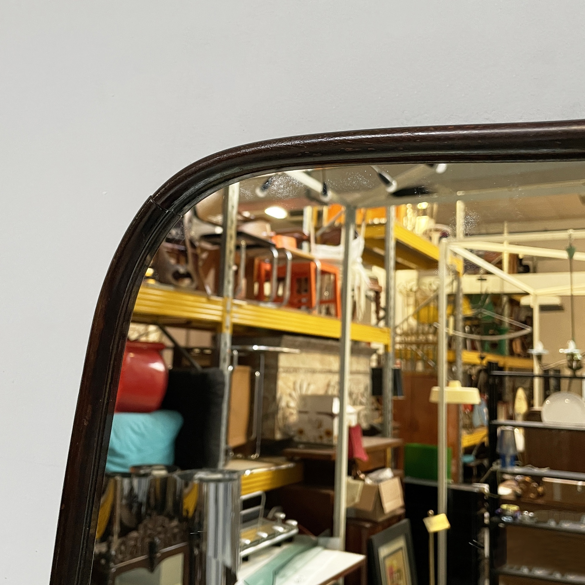 Specchio da parete sagomato e tondeggiante con cornice in legno.