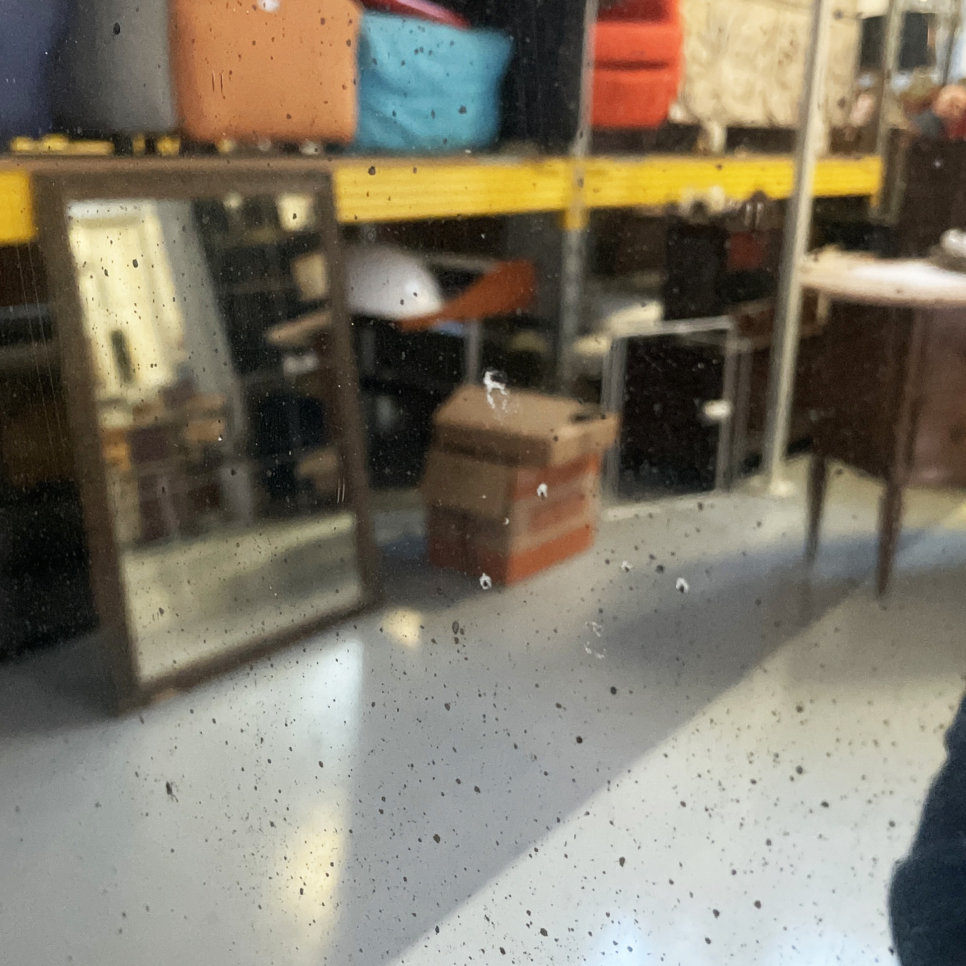Condizioni vintage. Il legno presenta segni e mancanze sparse. Lo specchio presenta segni del tempo.