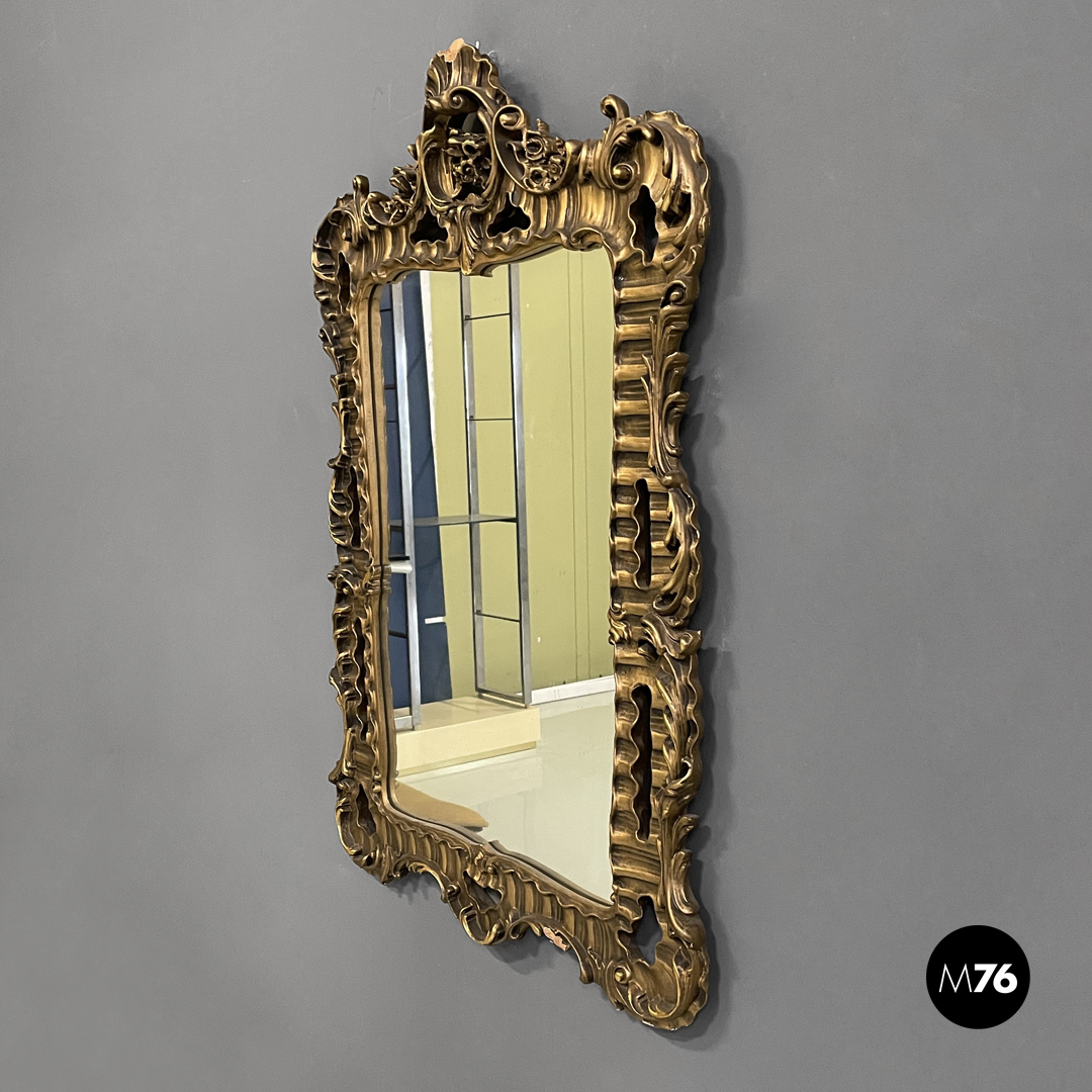 Specchio da parete in legno dorato decorato, 1960 ca.