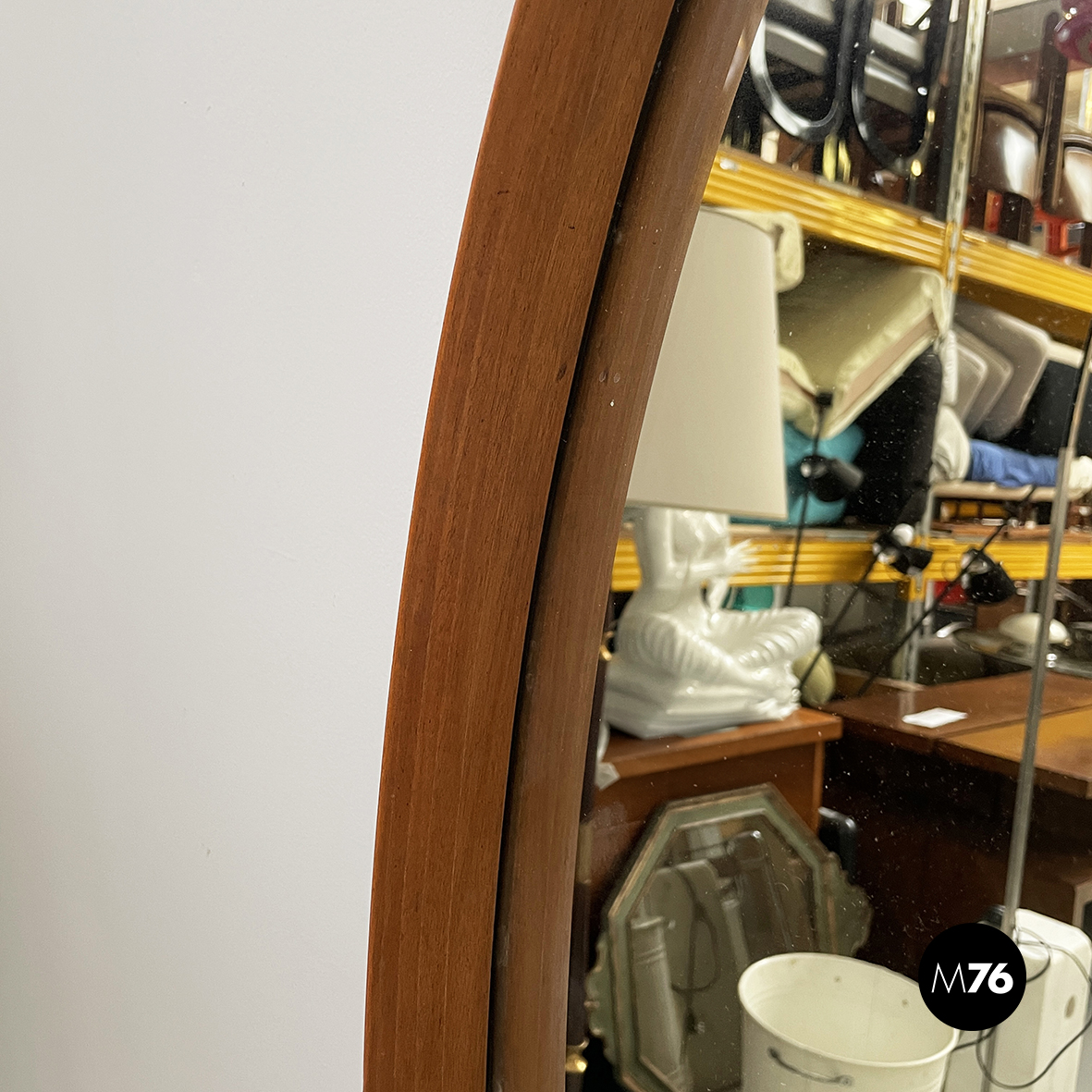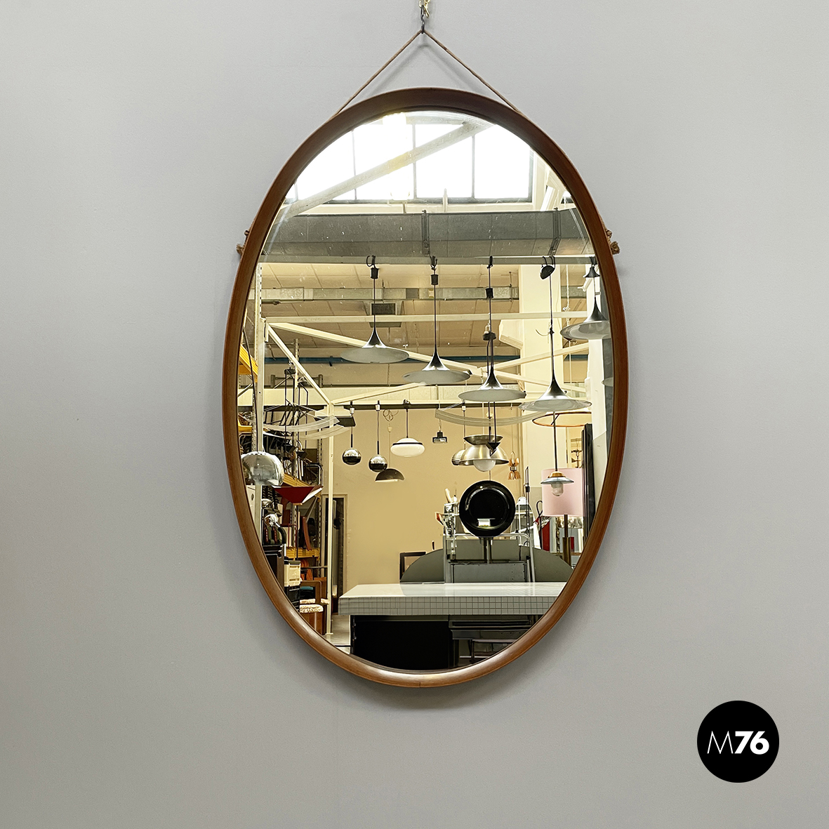 Specchio da parete ovale in con cornice in legno. Nella parte superiore è presente una corda per poterlo fissare a parete.