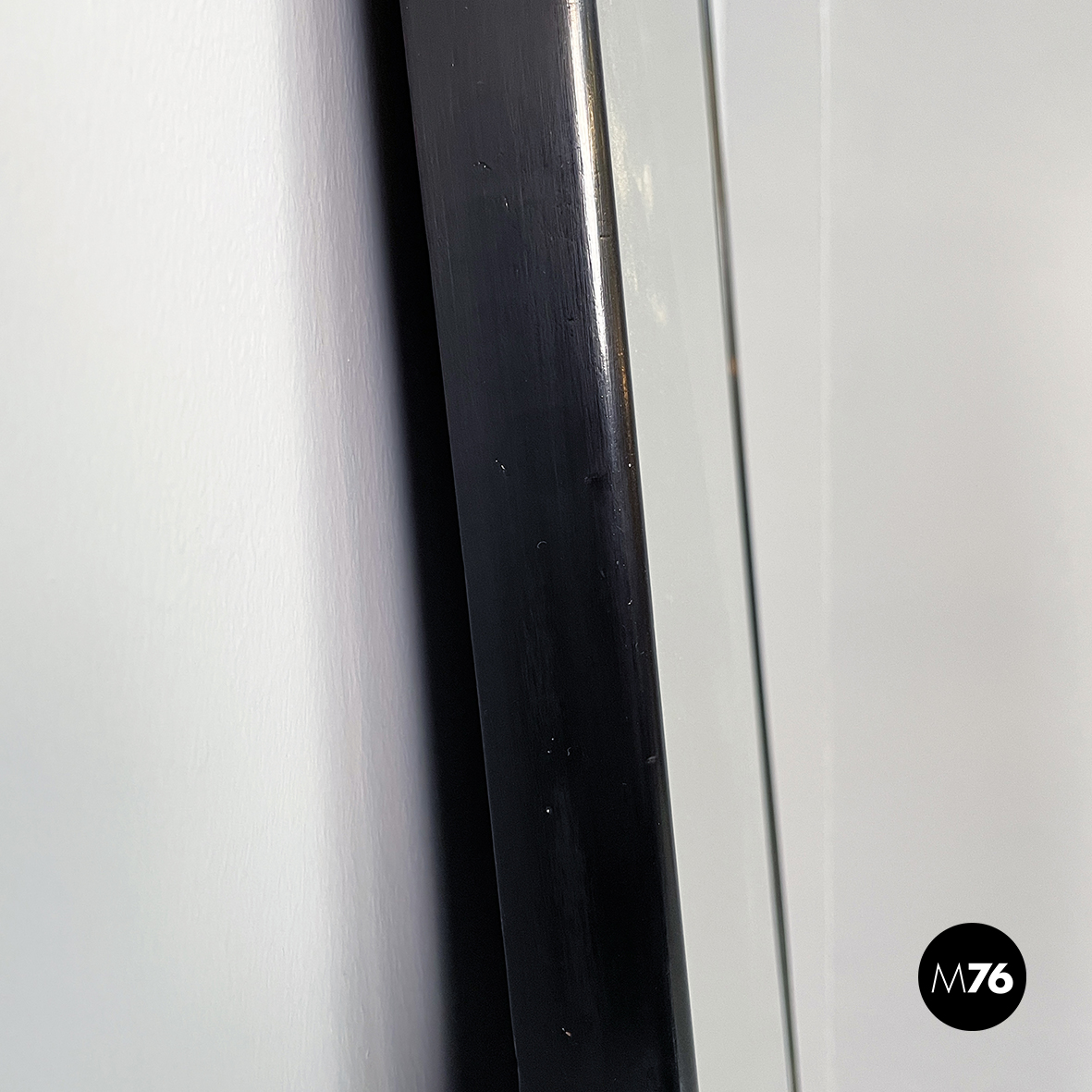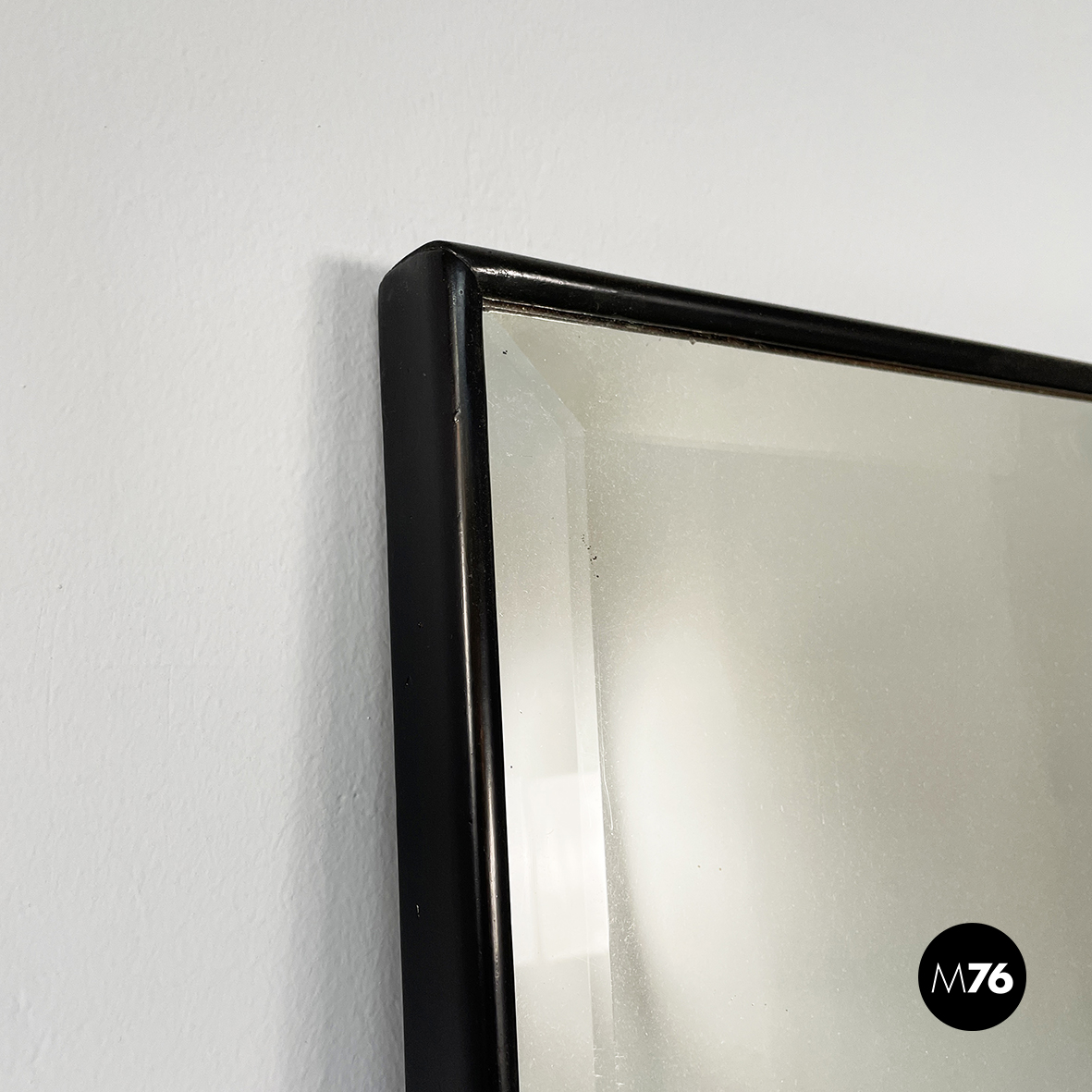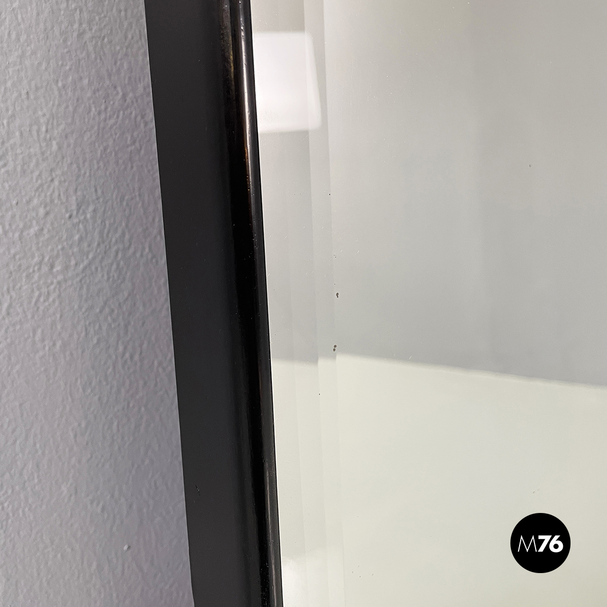 Specchio da parete rettangolare con cornice dal profilo tondeggiante in legno verniciato nero. Lo specchio può essere appesa sia in verticale che in orizzontale.