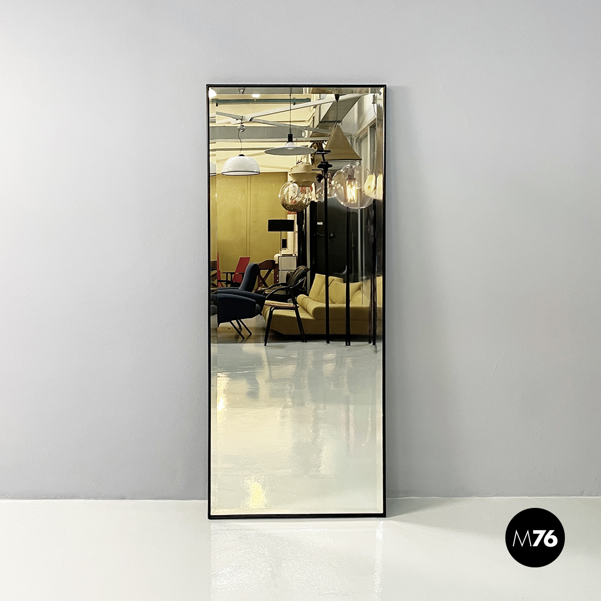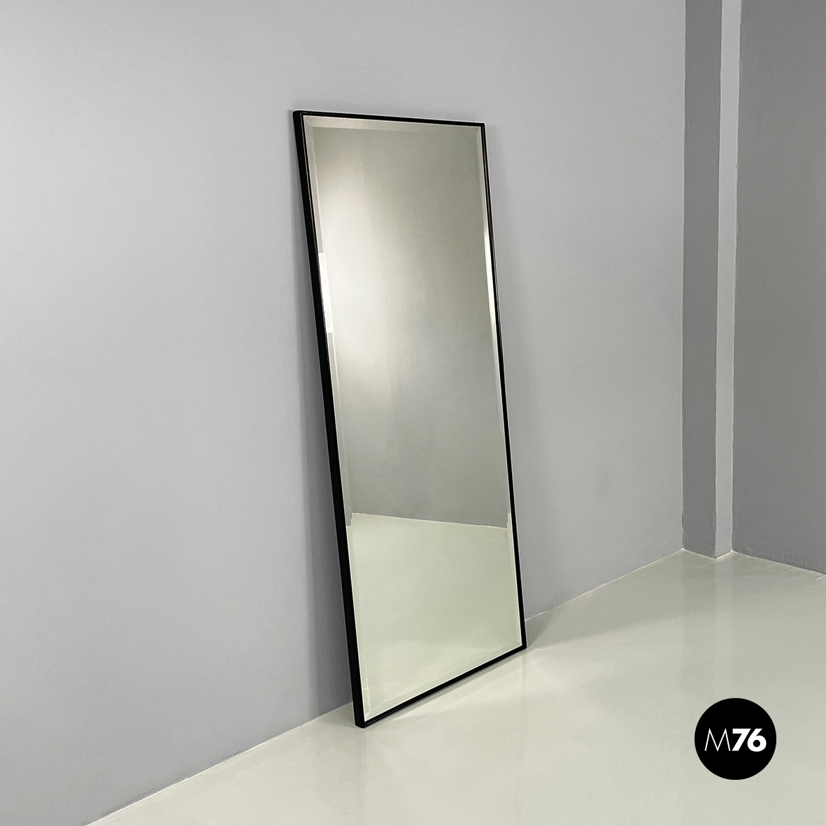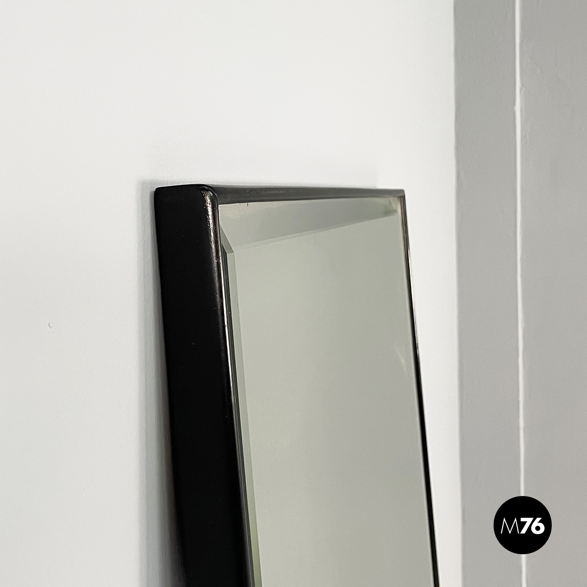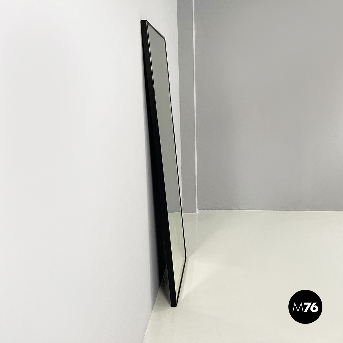 Specchio da parete rettangolare con cornice dal profilo tondeggiante in legno verniciato nero. Lo specchio può essere appesa sia in verticale che in orizzontale.