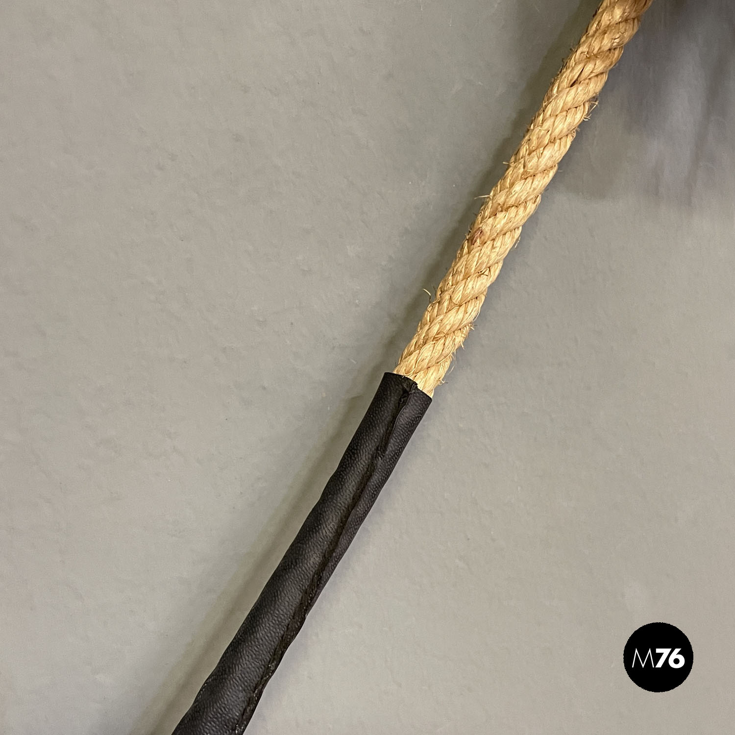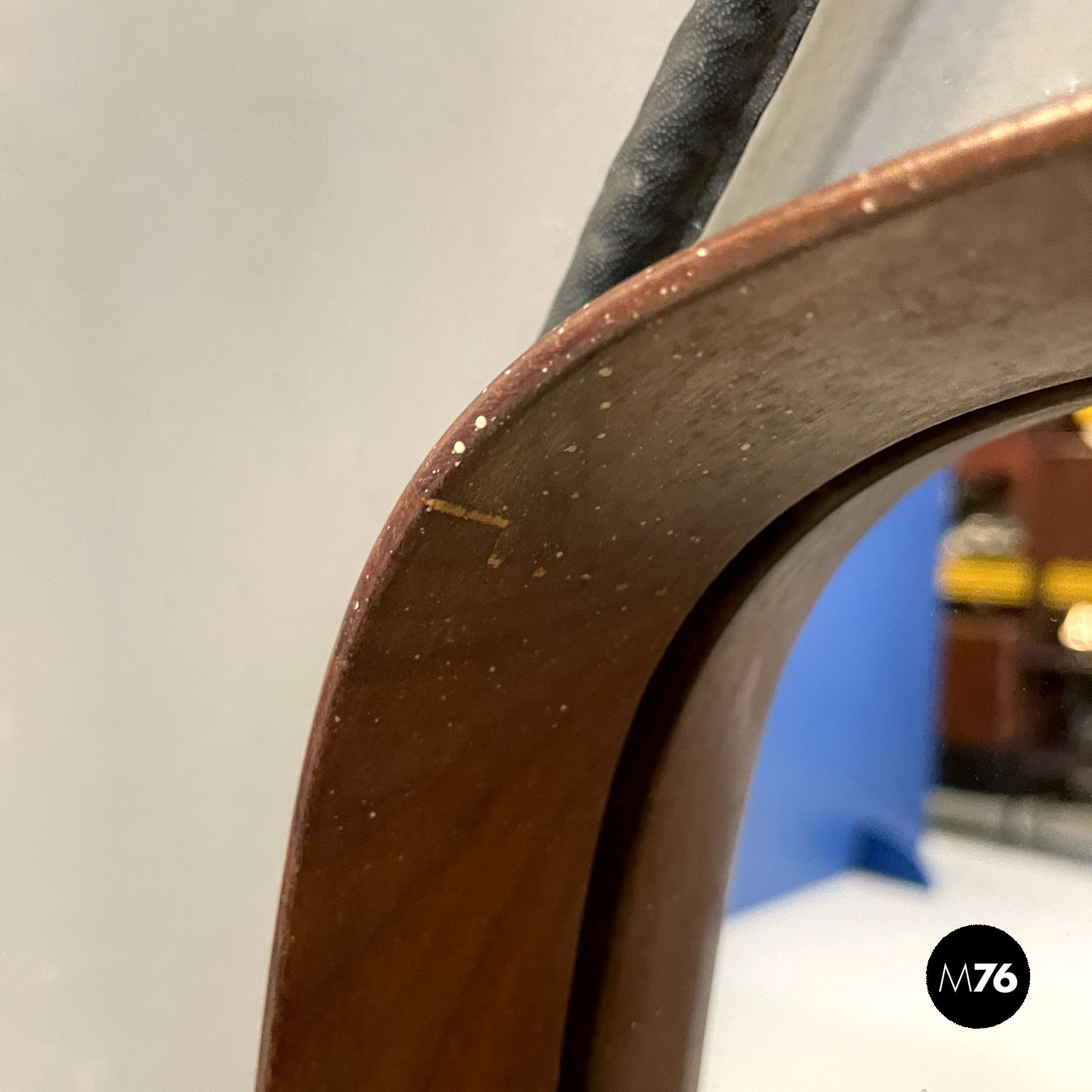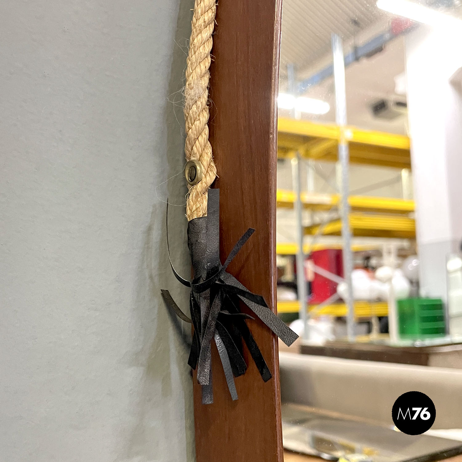 Specchio da parete in legno, pelle e corda, 1960 ca.