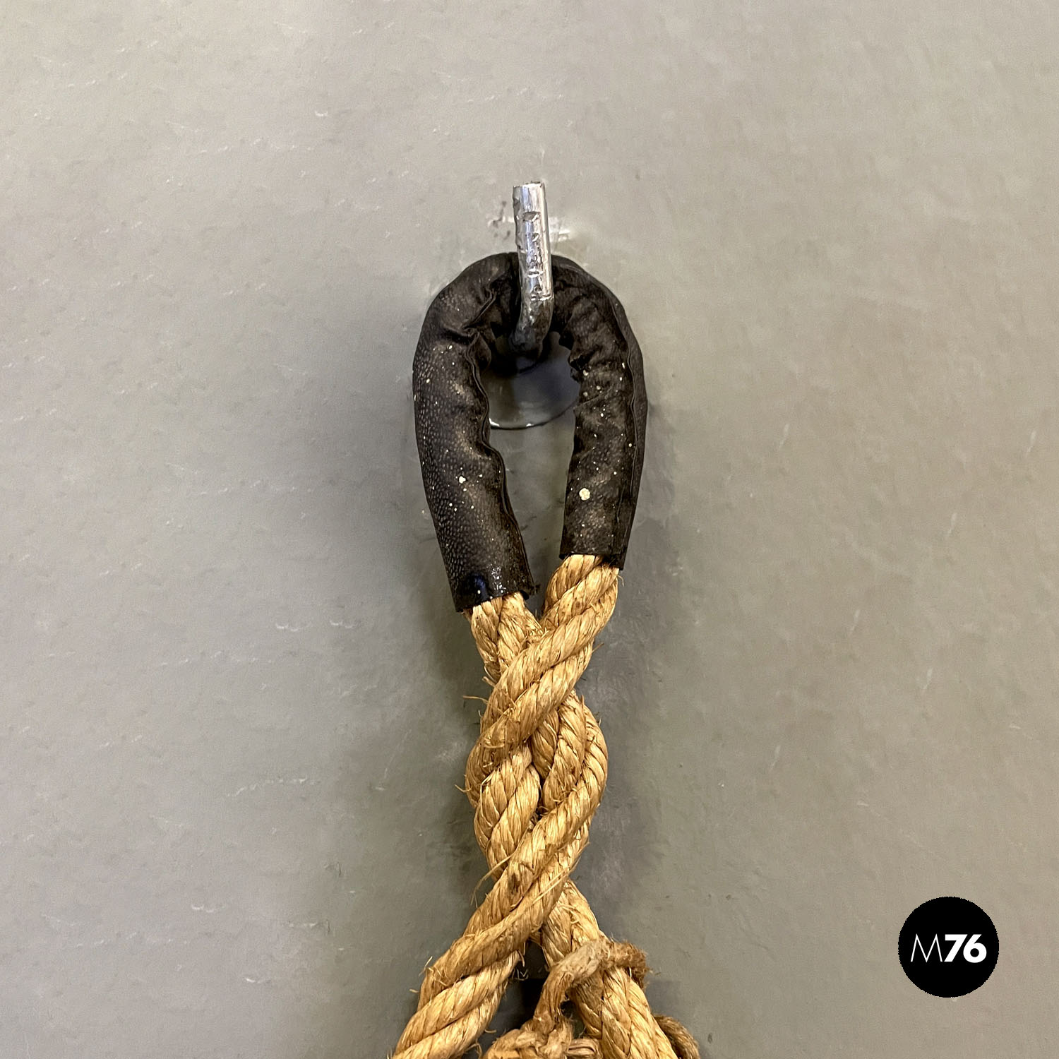 Specchio da parete in legno, pelle e corda, 1960 ca.