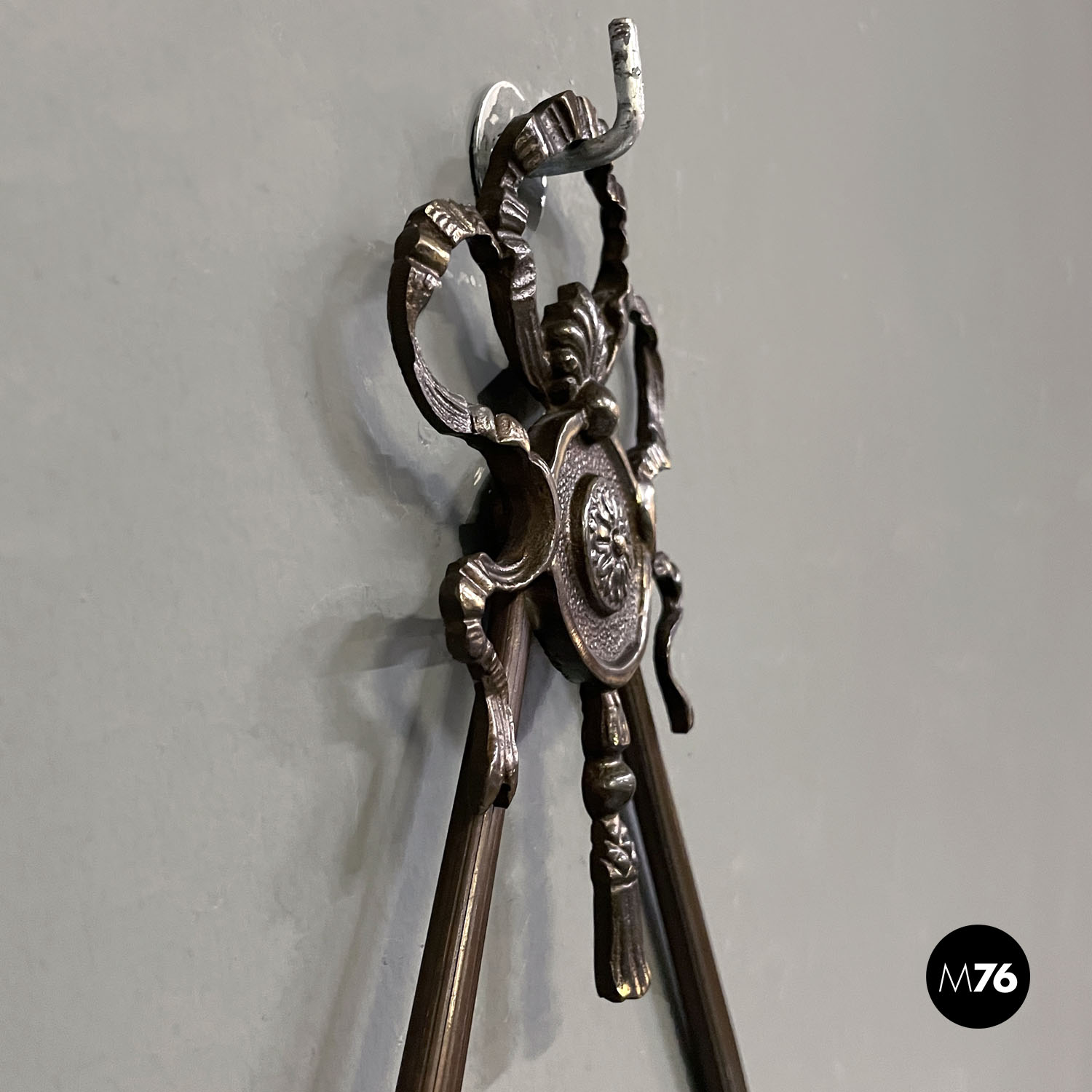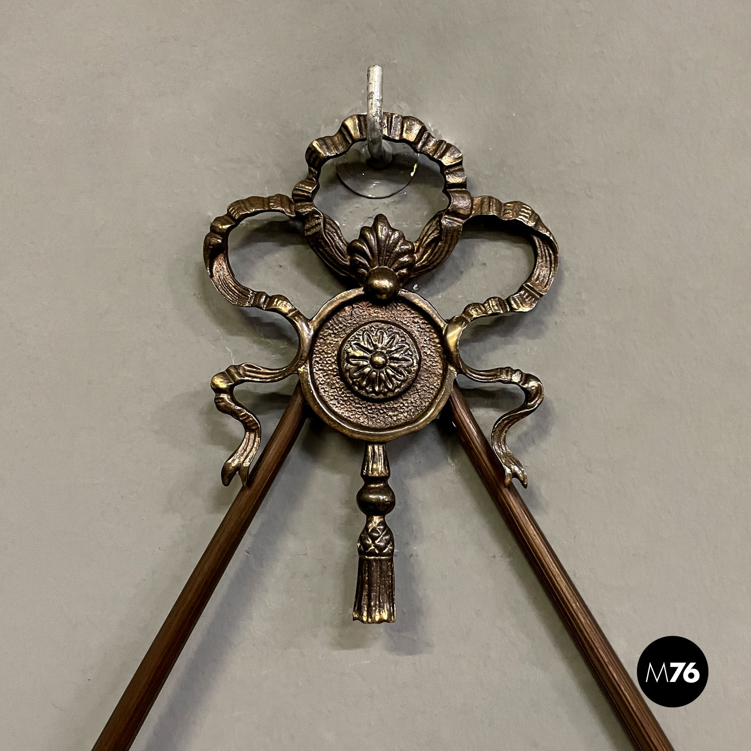 Specchio da parete in ottone con fiocco, 1950 ca.