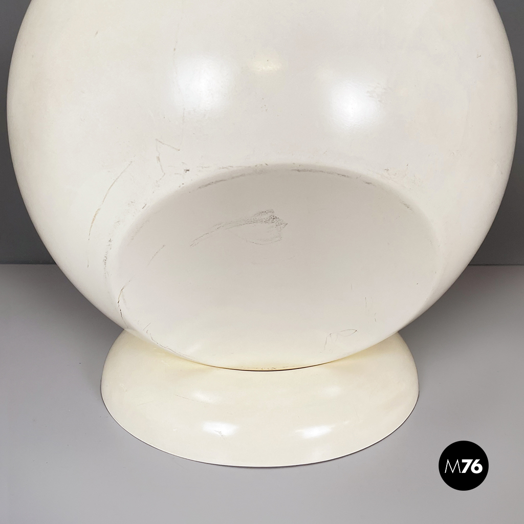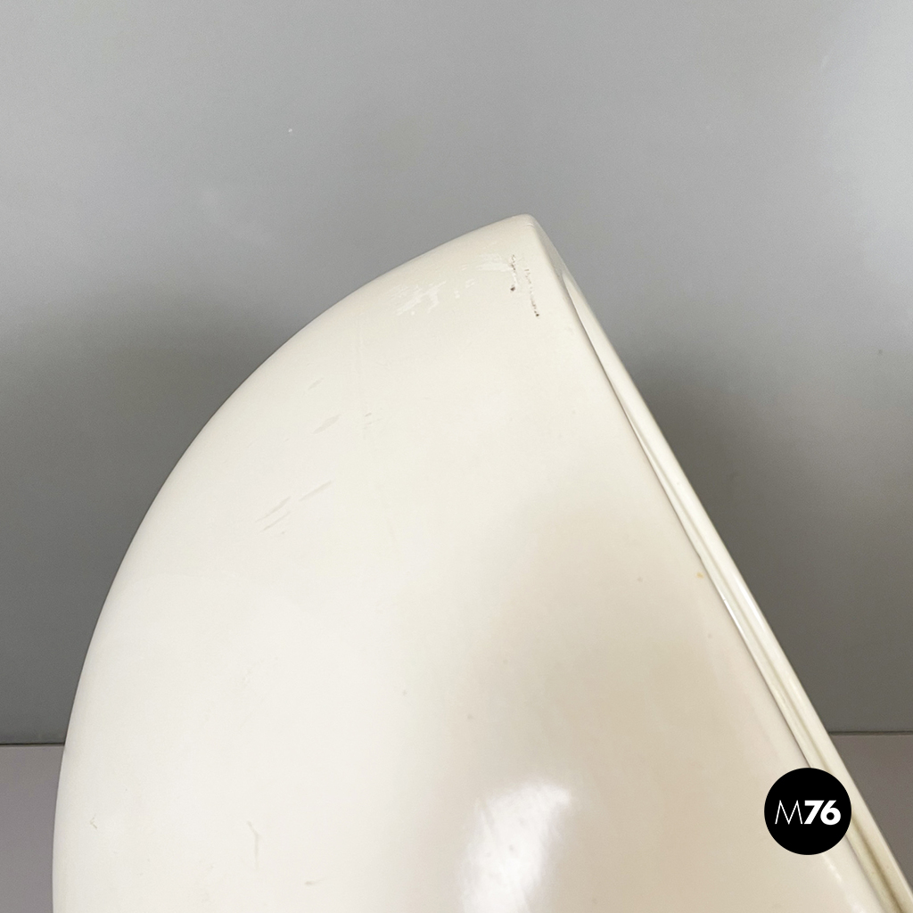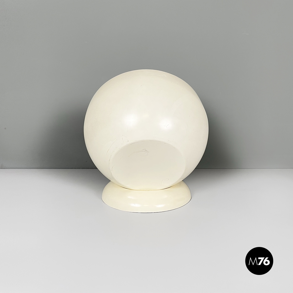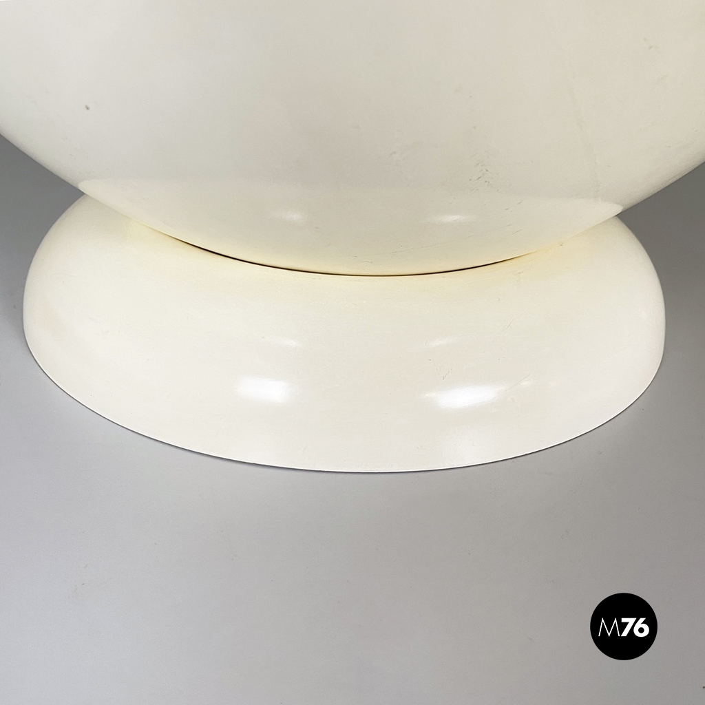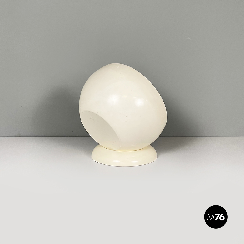 Specchio da tavolo di forma tondeggiante con base tonda in plastica ABS bianco crema. Lo specchio è appoggiato alla base, quindi è posizionabile a piacere.