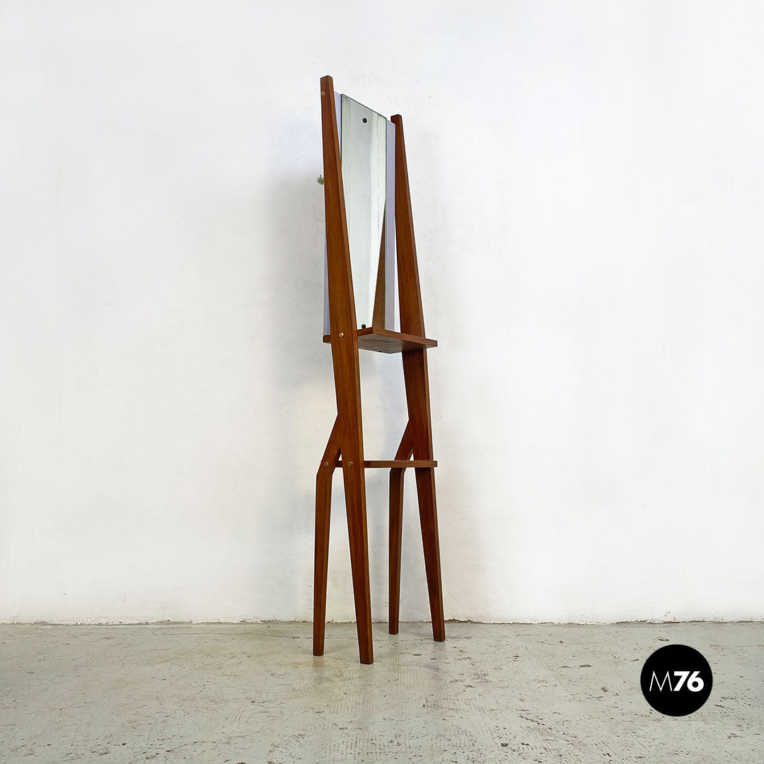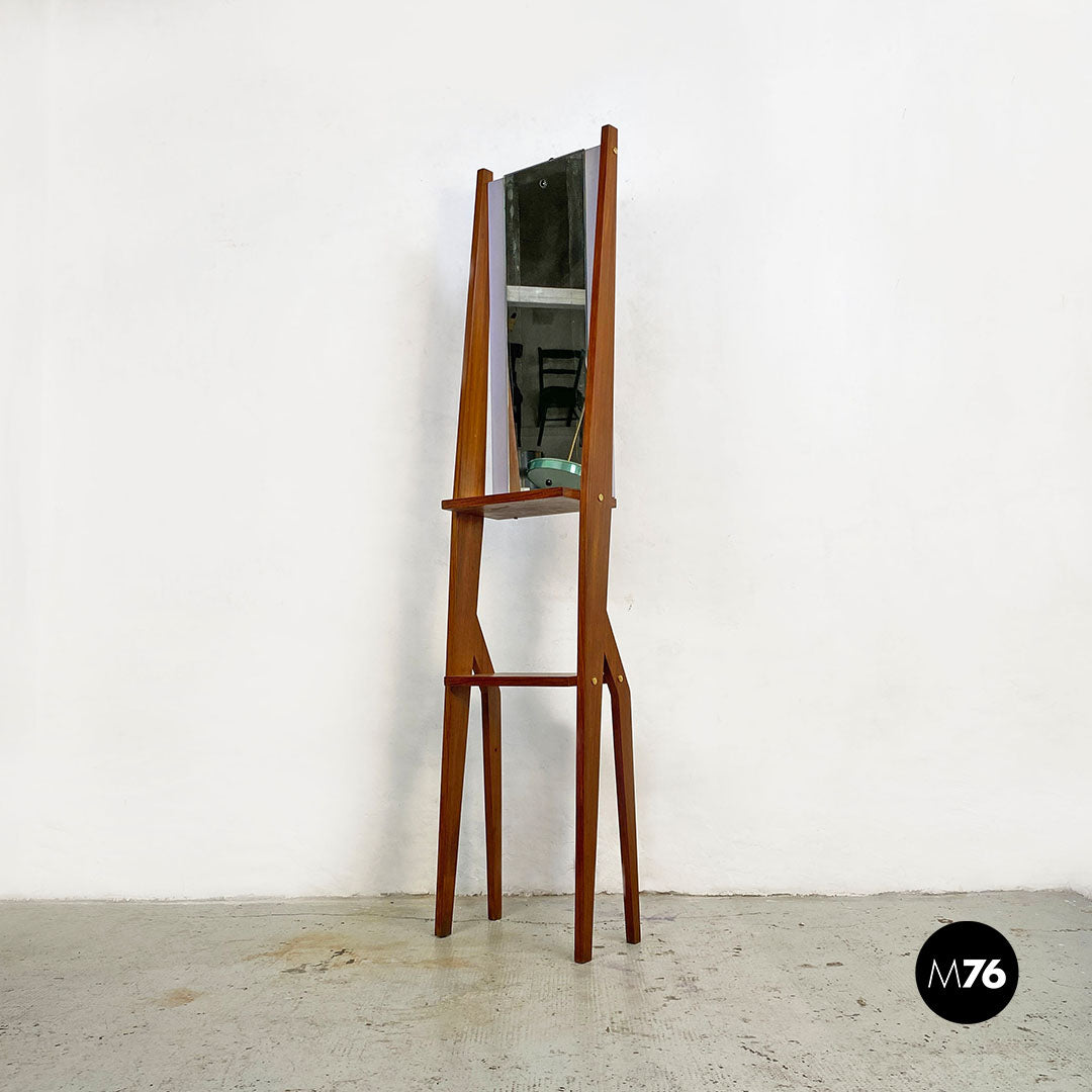 Specchio a figura intera di forma rettangolare, autoportante con struttura in legno con doppio ripiano.