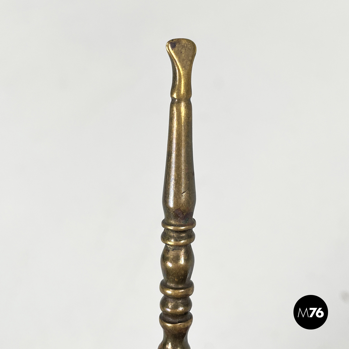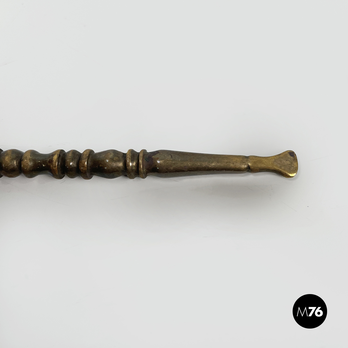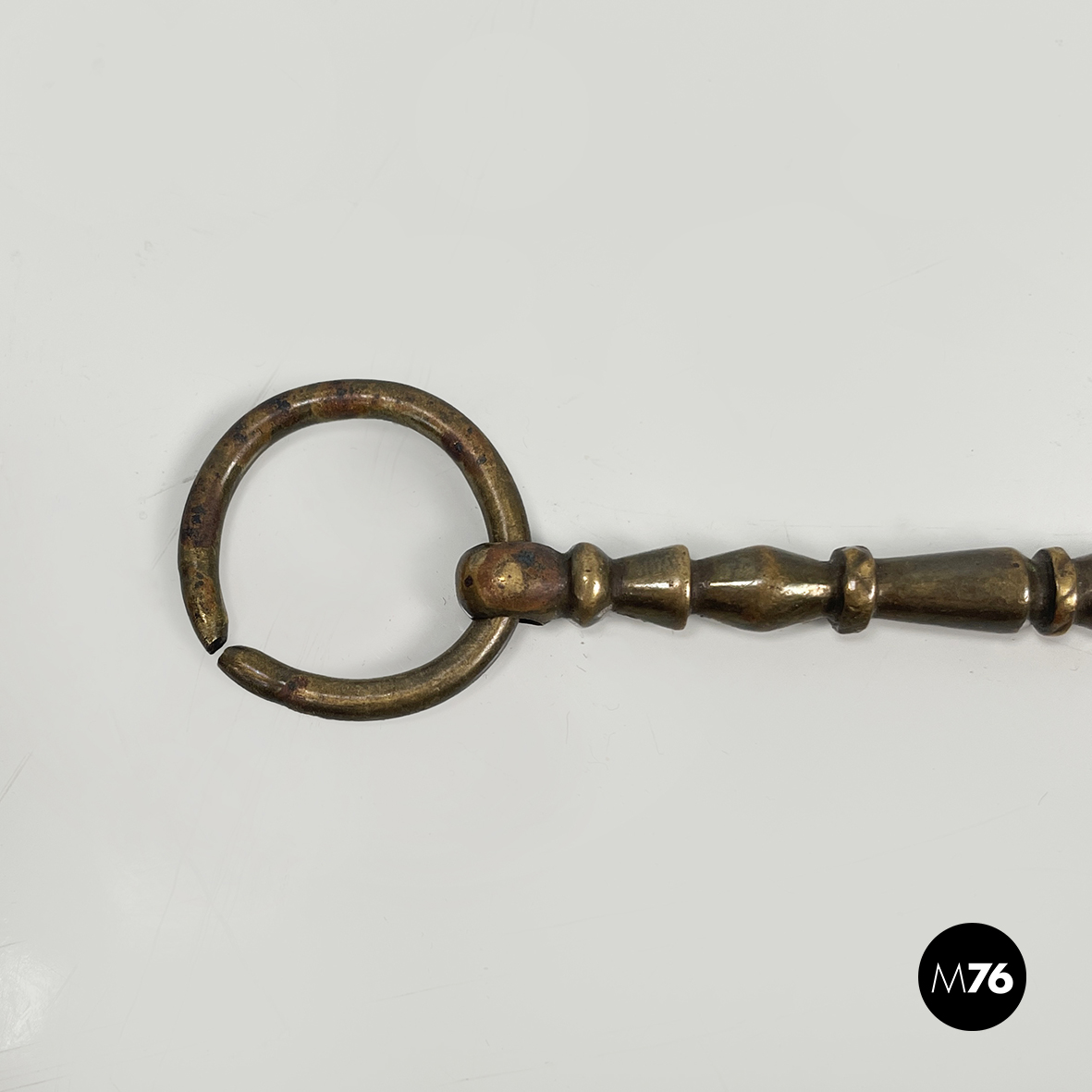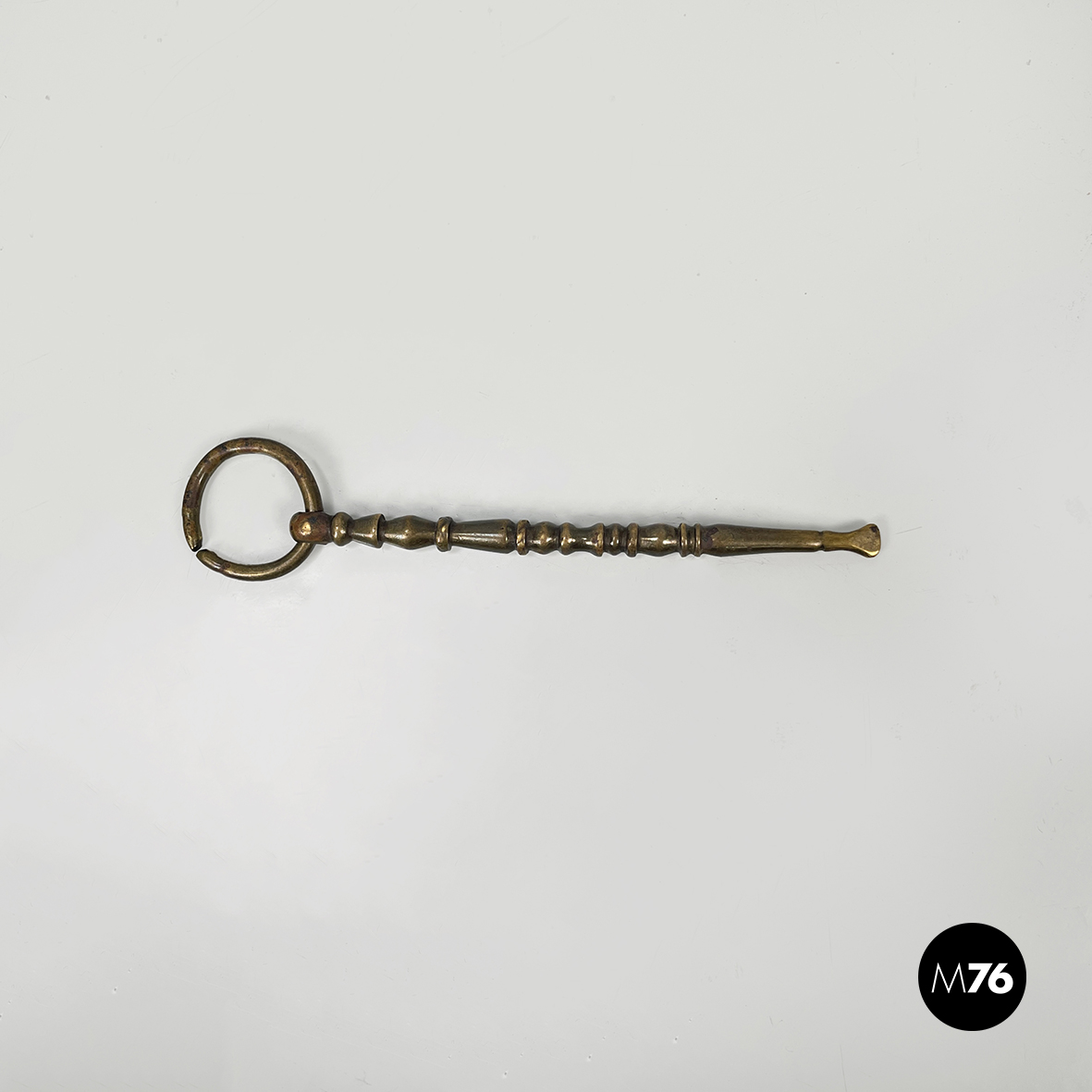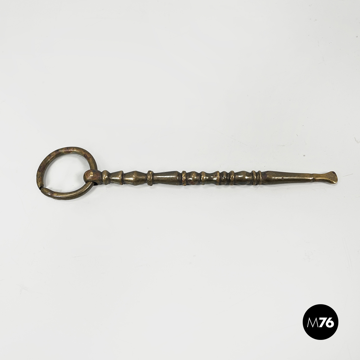 Strumento per pannocchie in ottone, utilizzato per tener la pannocchia calda senza scottarsi le mani. La struttura è composta infatti da un parte dritta e lavorata, da inserire, e un cerchio, ovvero il supporto.