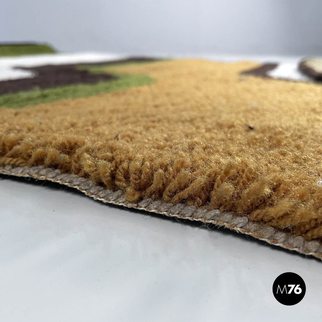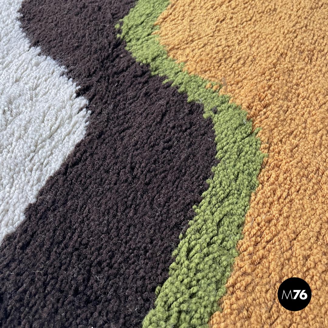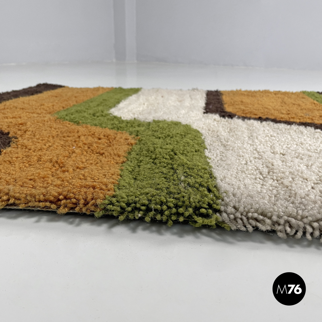 Tappeto a pelo corto in marrone, arancione, beige e verde, 1970 ca.