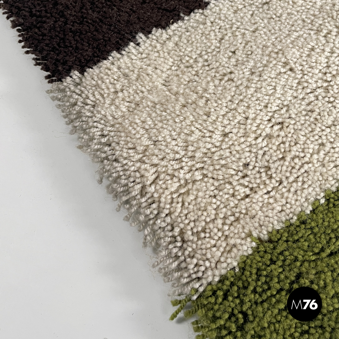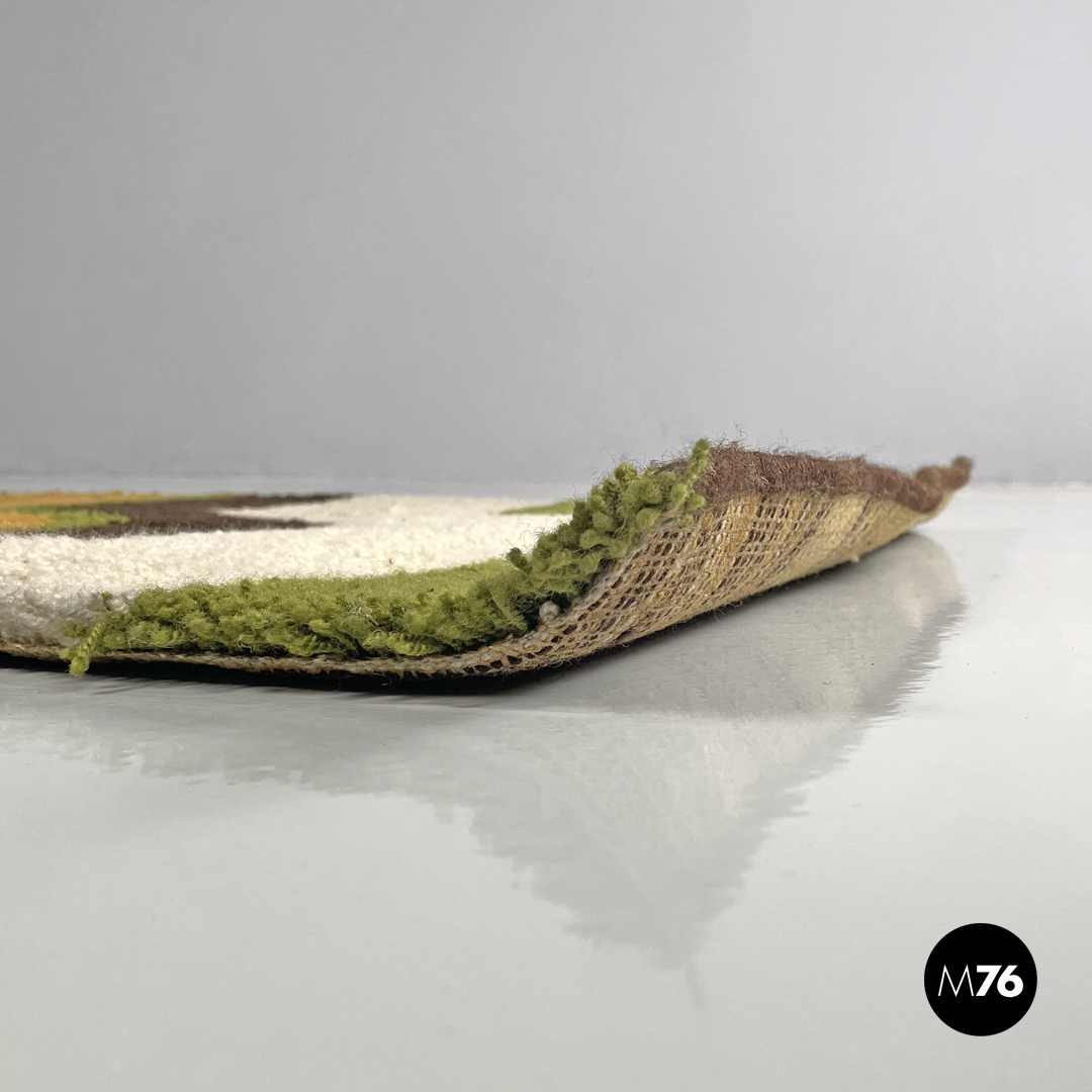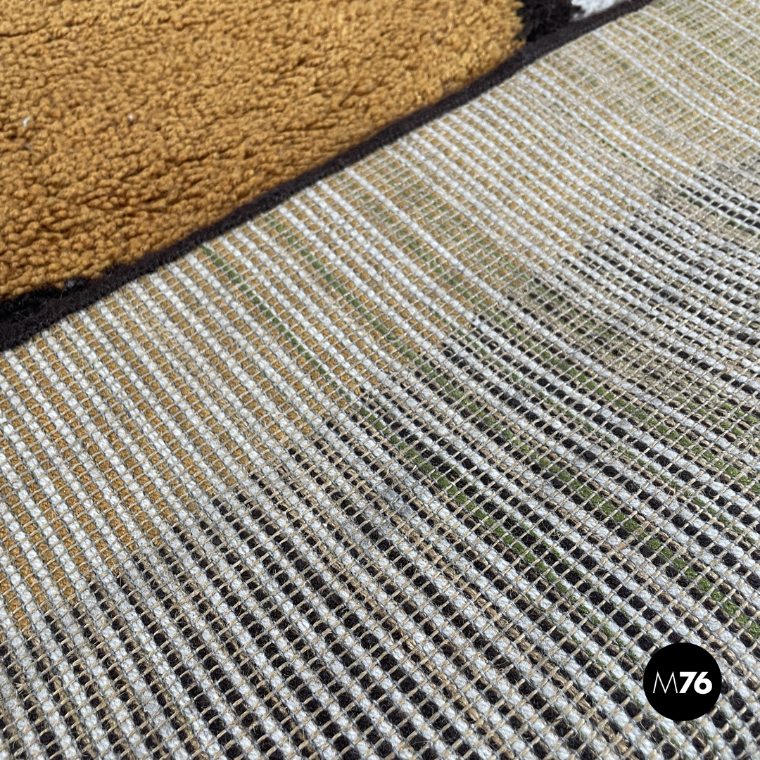 Tappeto a pelo corto in marrone, arancione, beige e verde, 1970 ca.