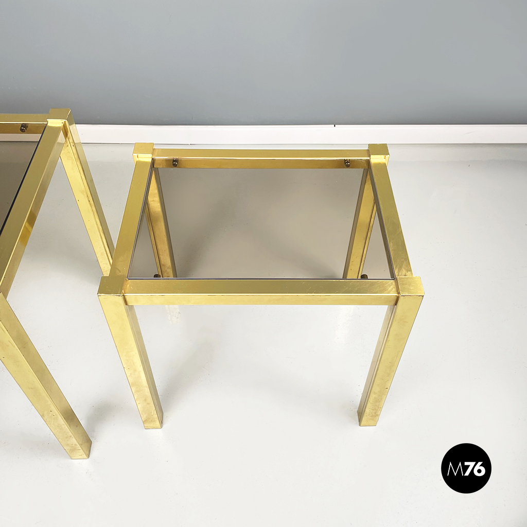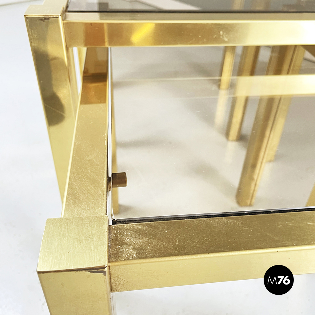 Tavoli da caffè in ottone e vetro fume, 1970 ca.