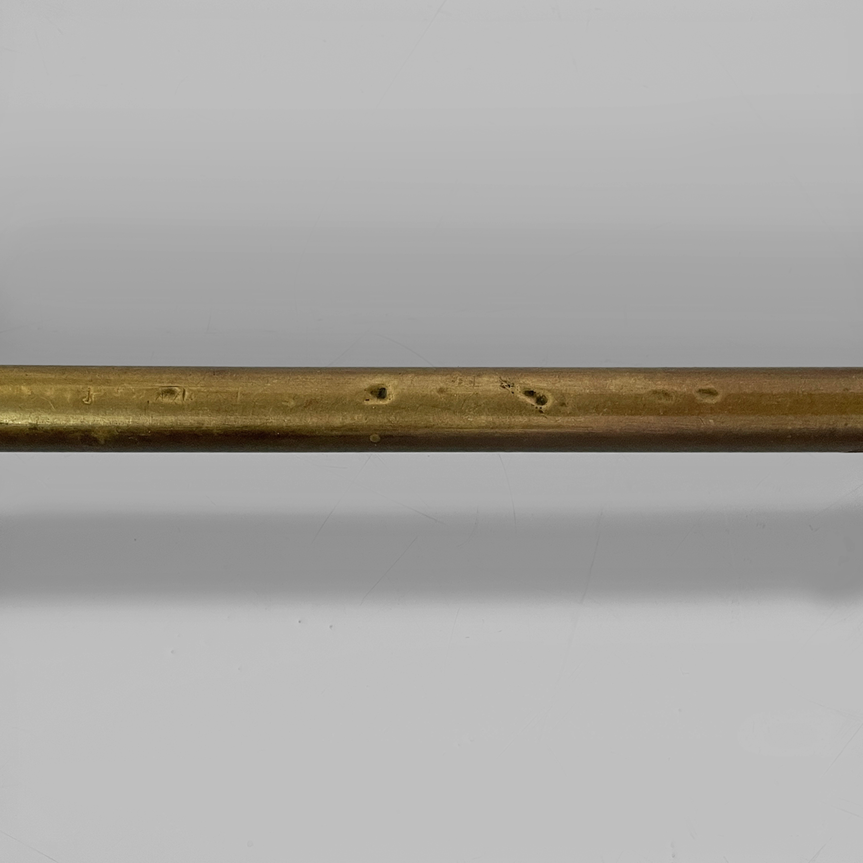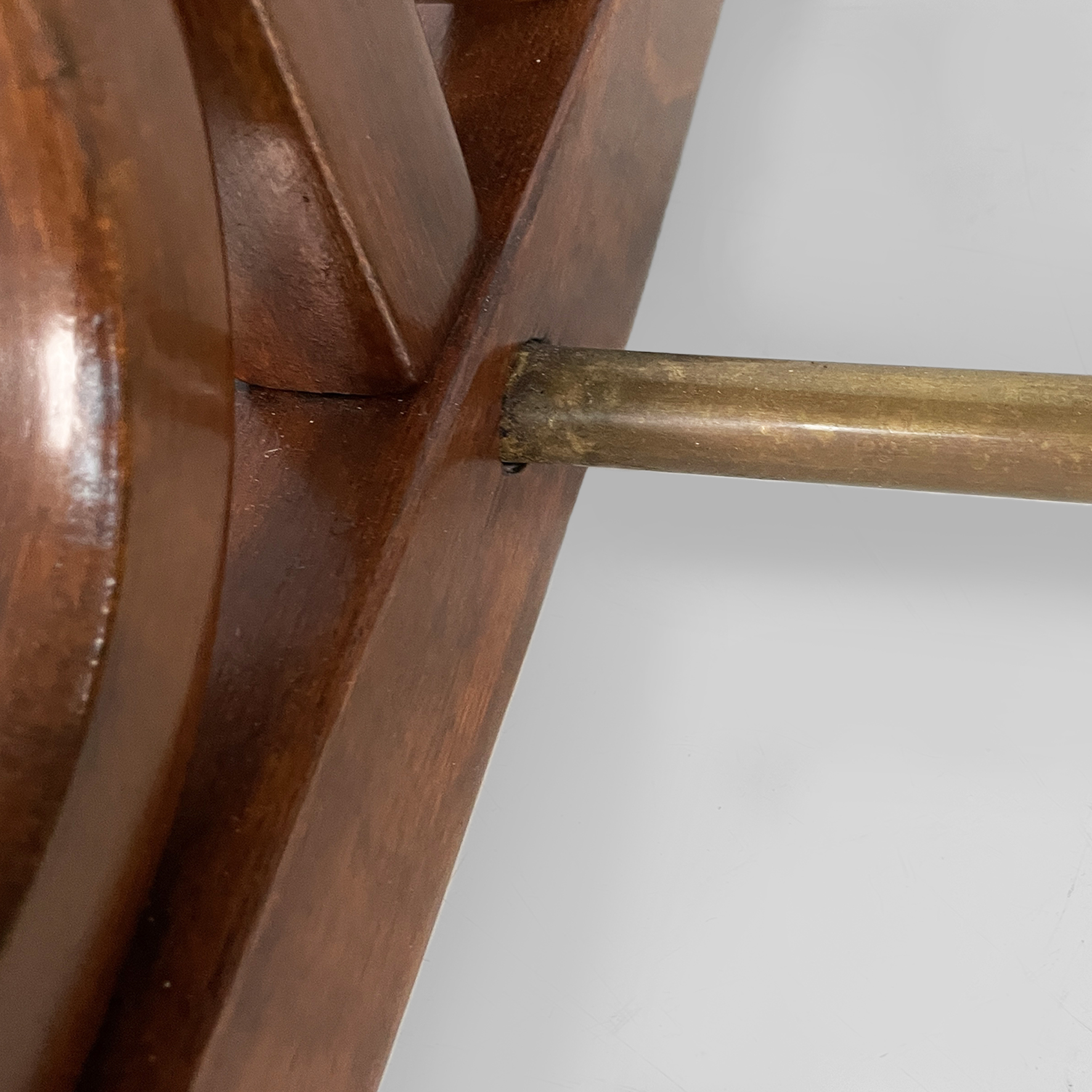 Buone condizioni, segni del tempo sull’ottone. Il piano del legno è leggermente imbarcato. Legno restaurato.