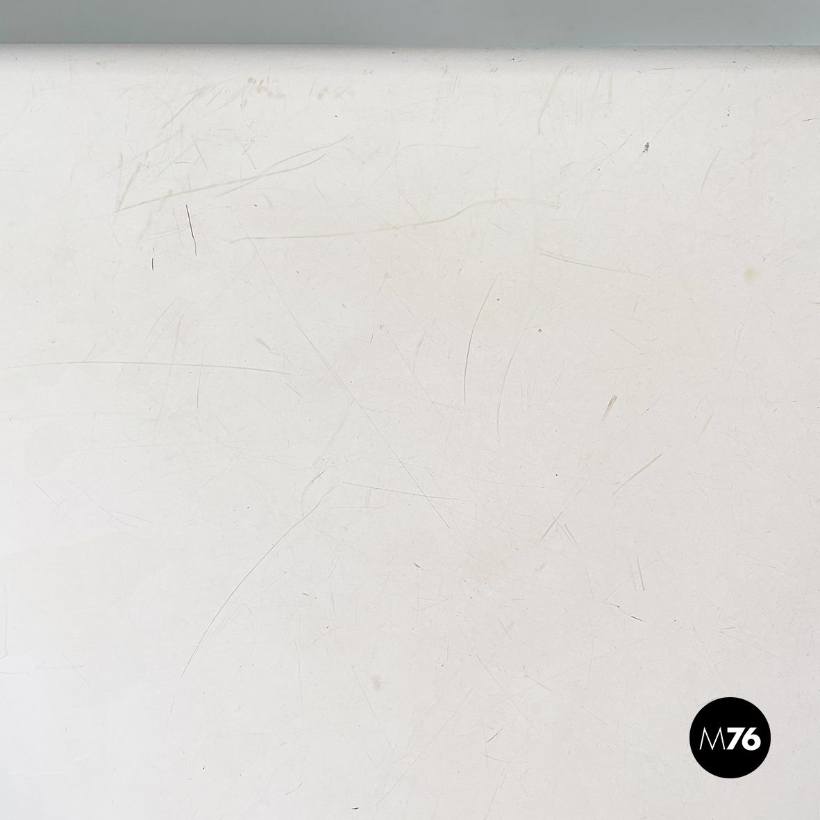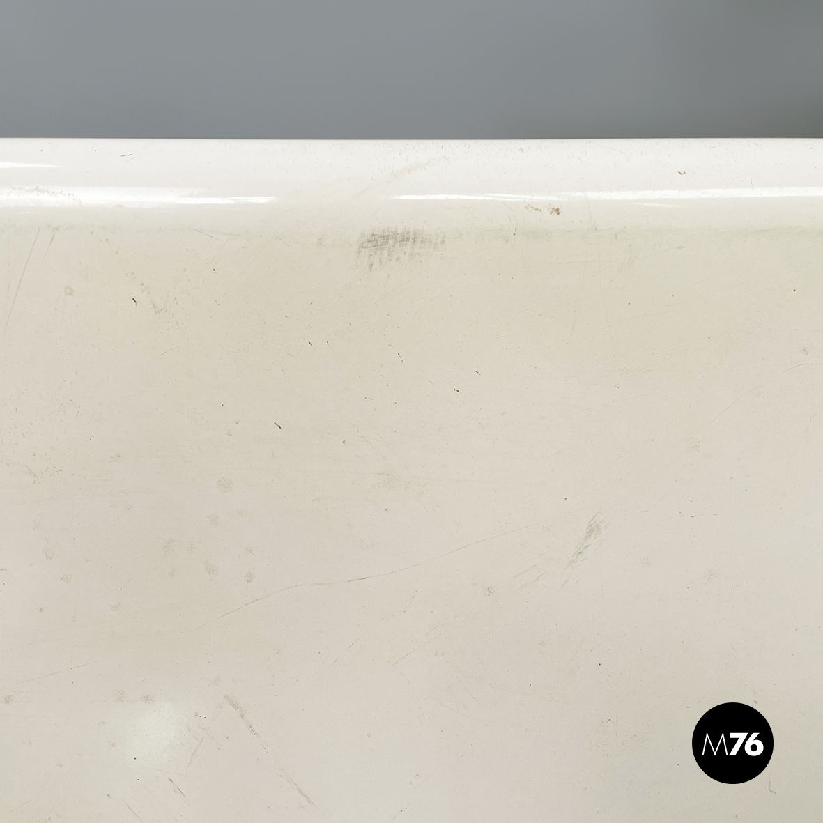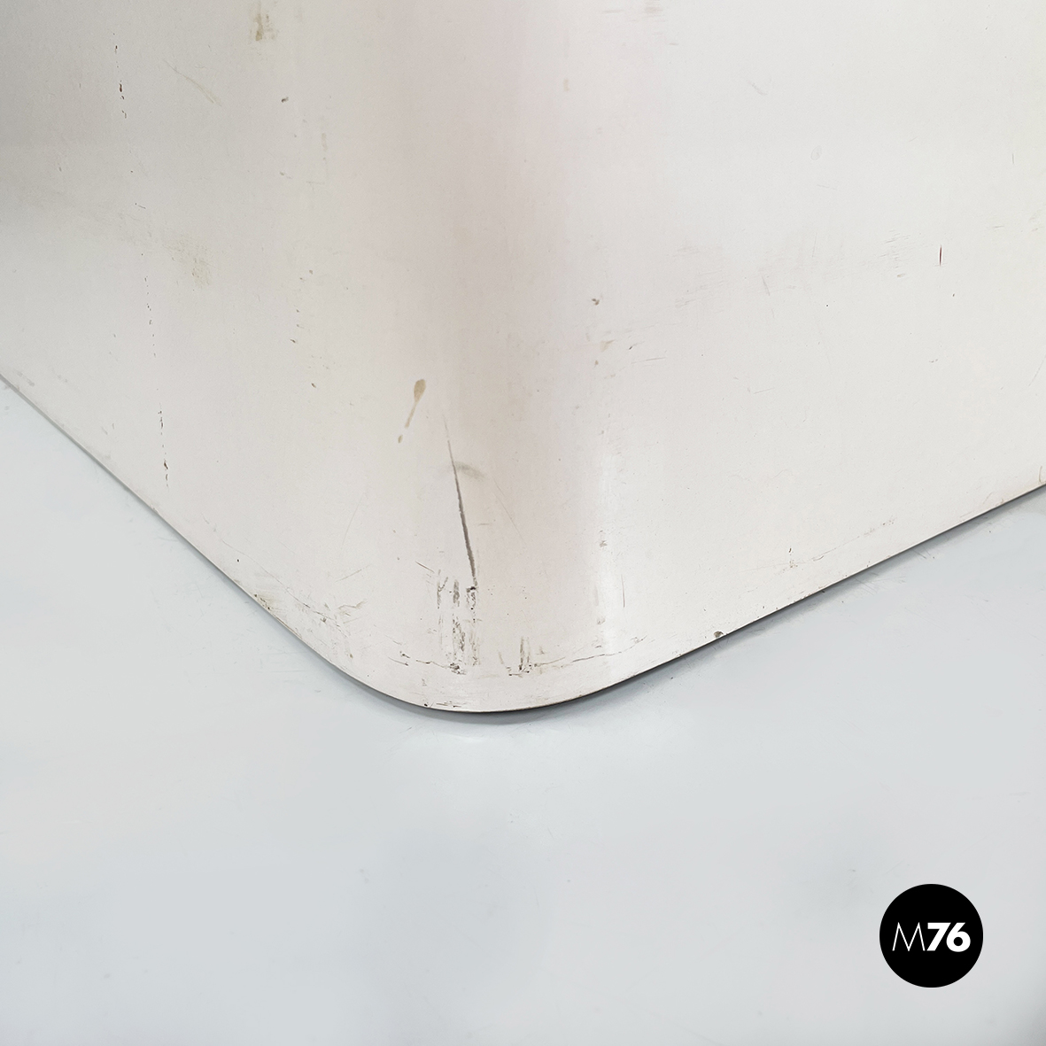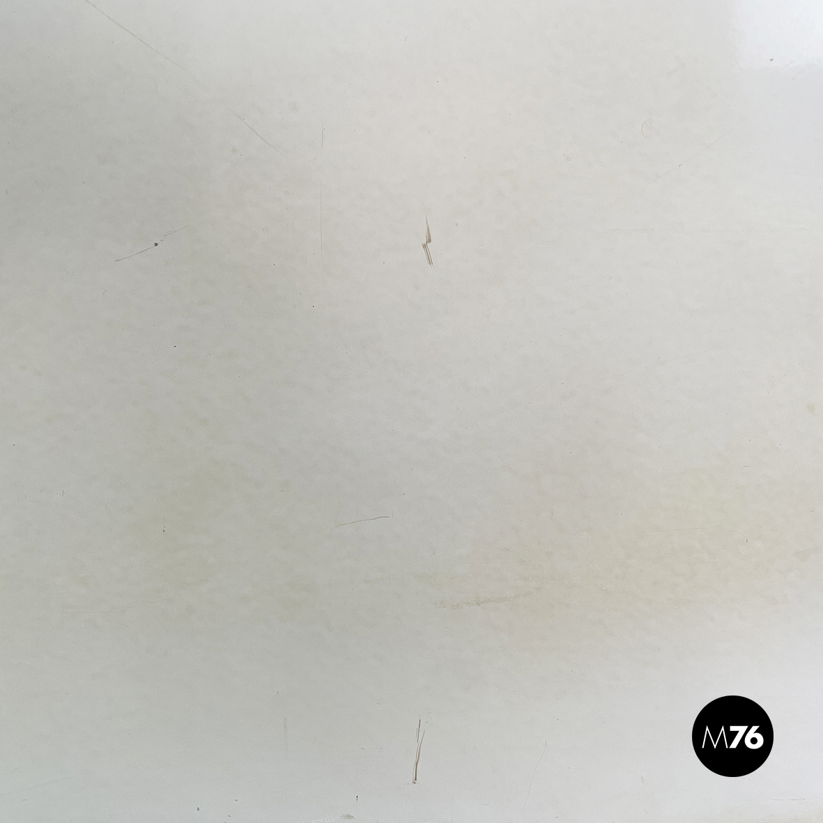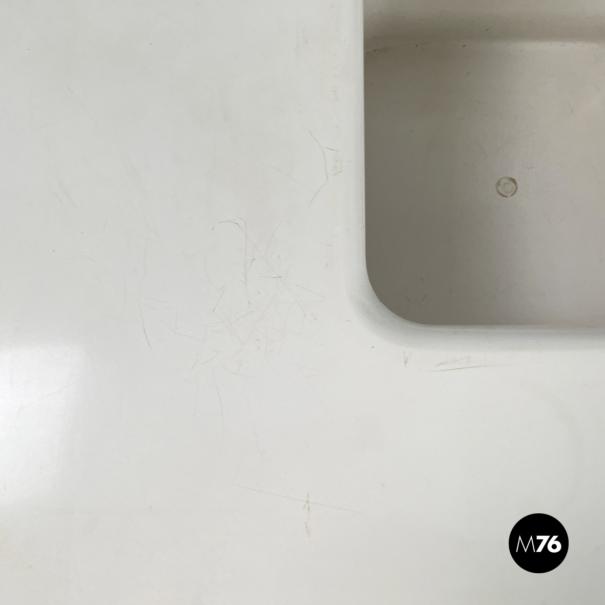 Tavolo da caffè con portabottiglie in vetroresina bianca. Il tavolo presenta una struttura monoscocca in vetroresina a base quadrata. In un angolo presenta un vano quadrato, utilizzabile come vasiera o portaoggetti. Il tavolo è adatto ad uso esterno come per il giardino.
