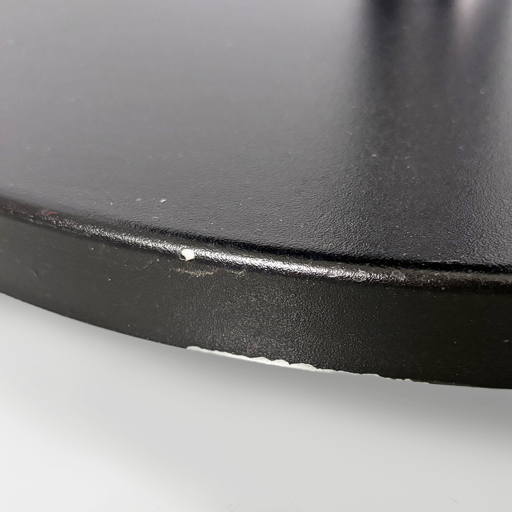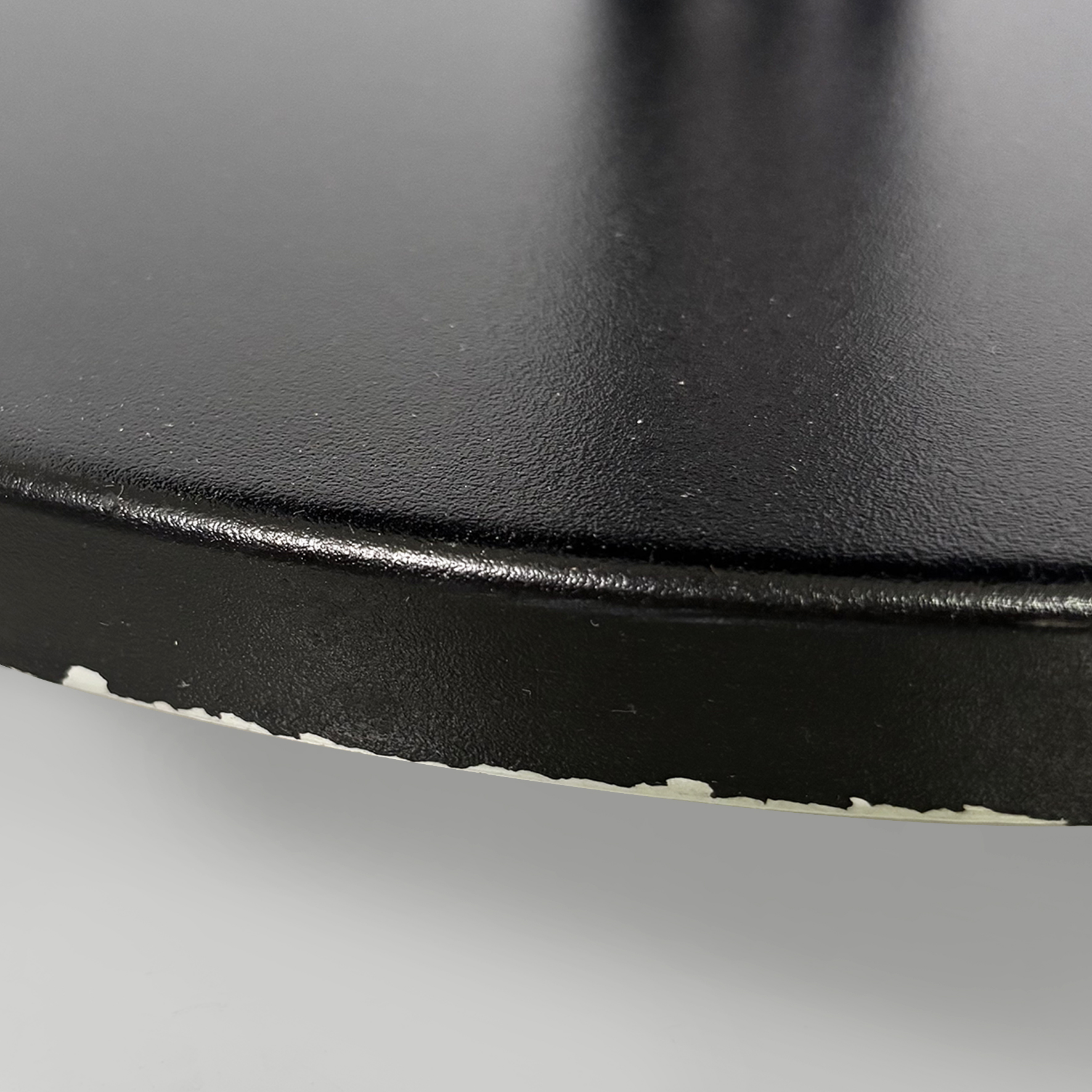 Tavolo da caffè tondo interamente in ferro composto da un piano rivestito in gomma.