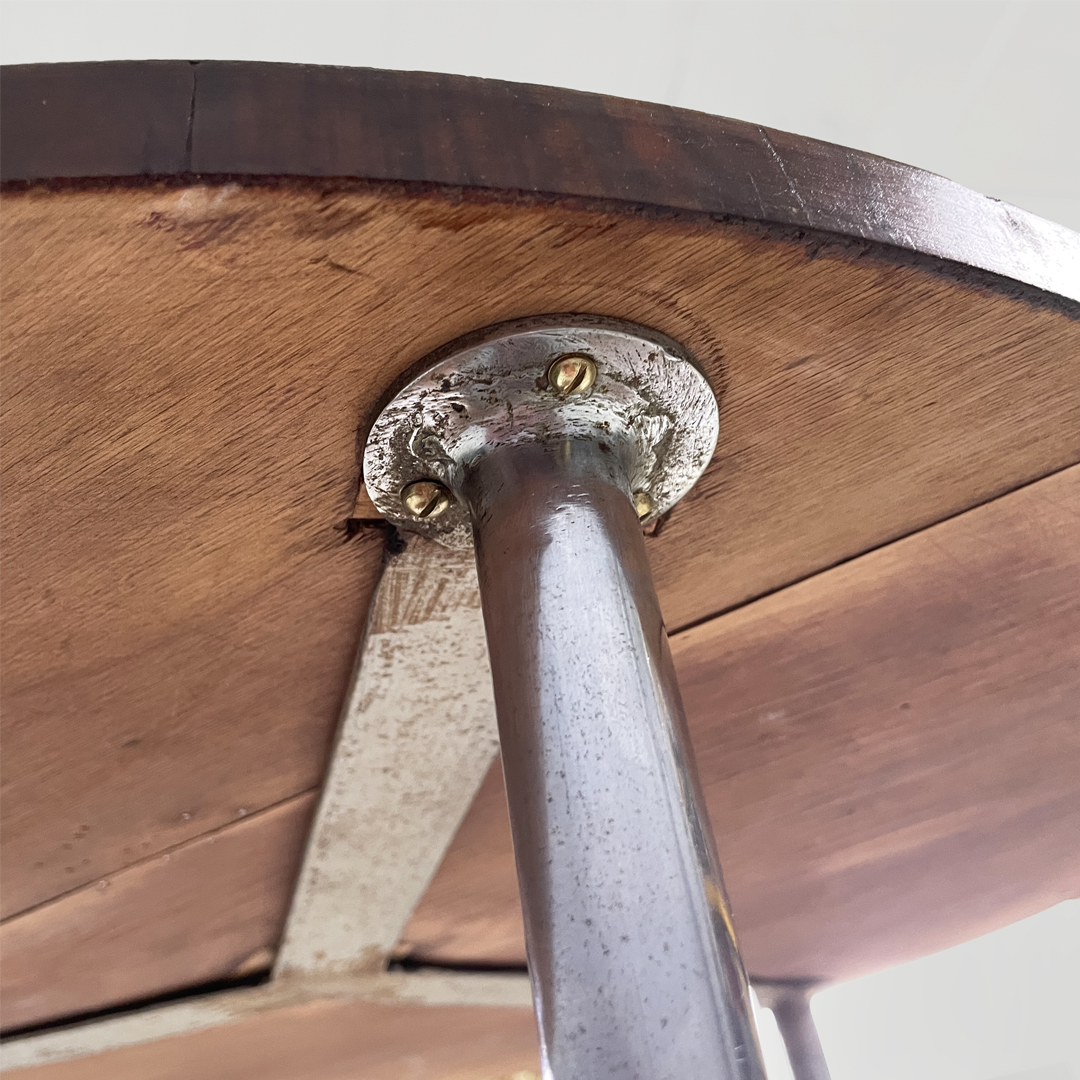 Buone condizioni, restaurato, con leggeri segni dell’uso e del tempo e ossidazioni sul metallo.