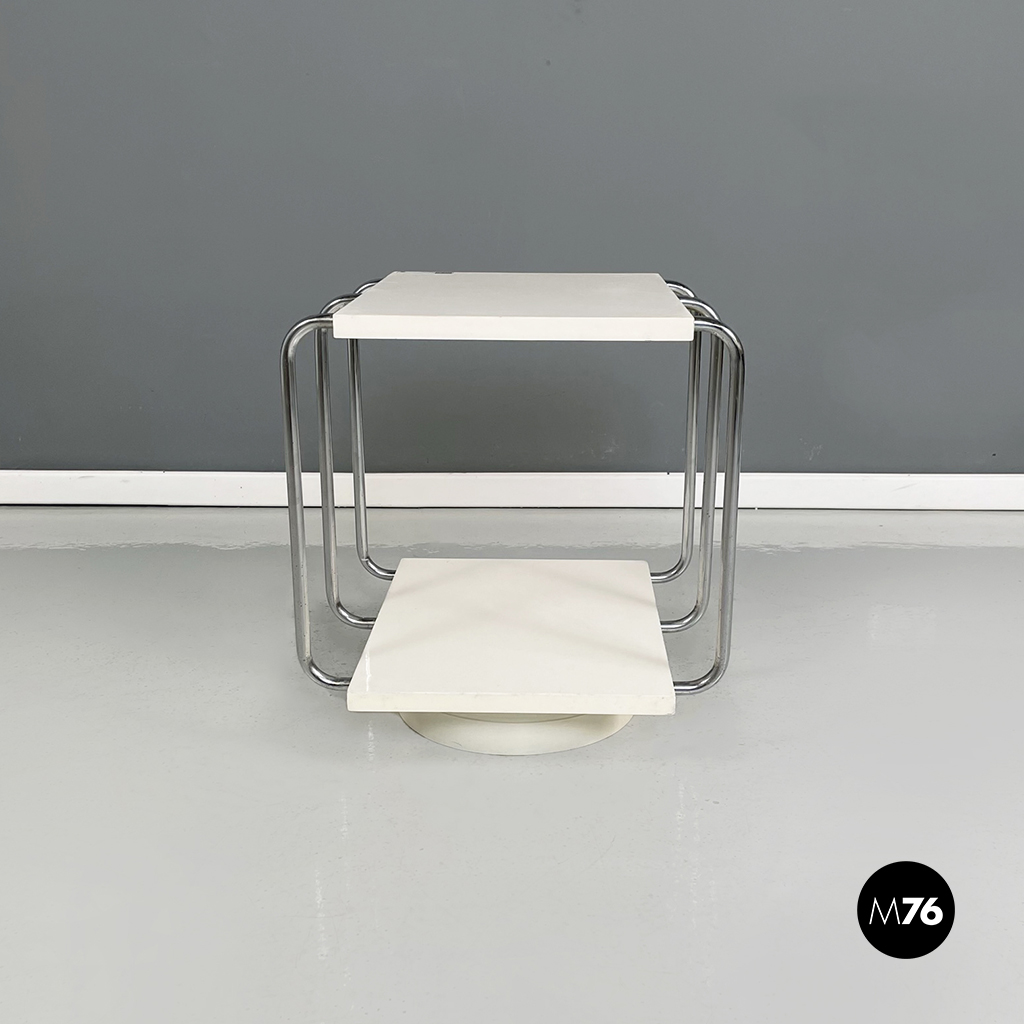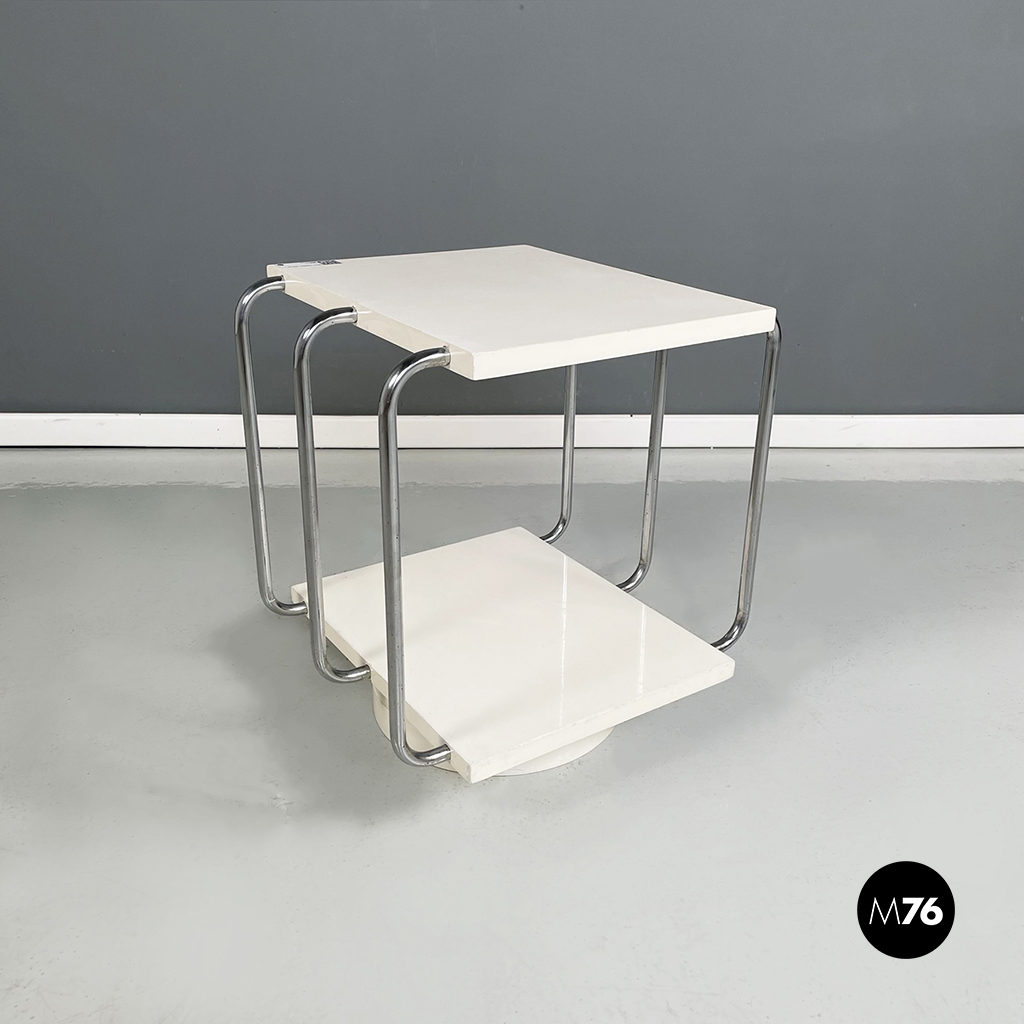 Tavolo da caffè in legno bianco e metallo, 1980 ca.