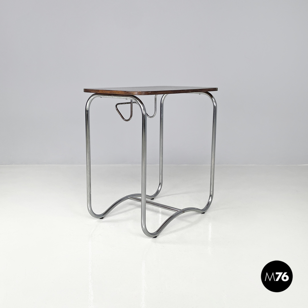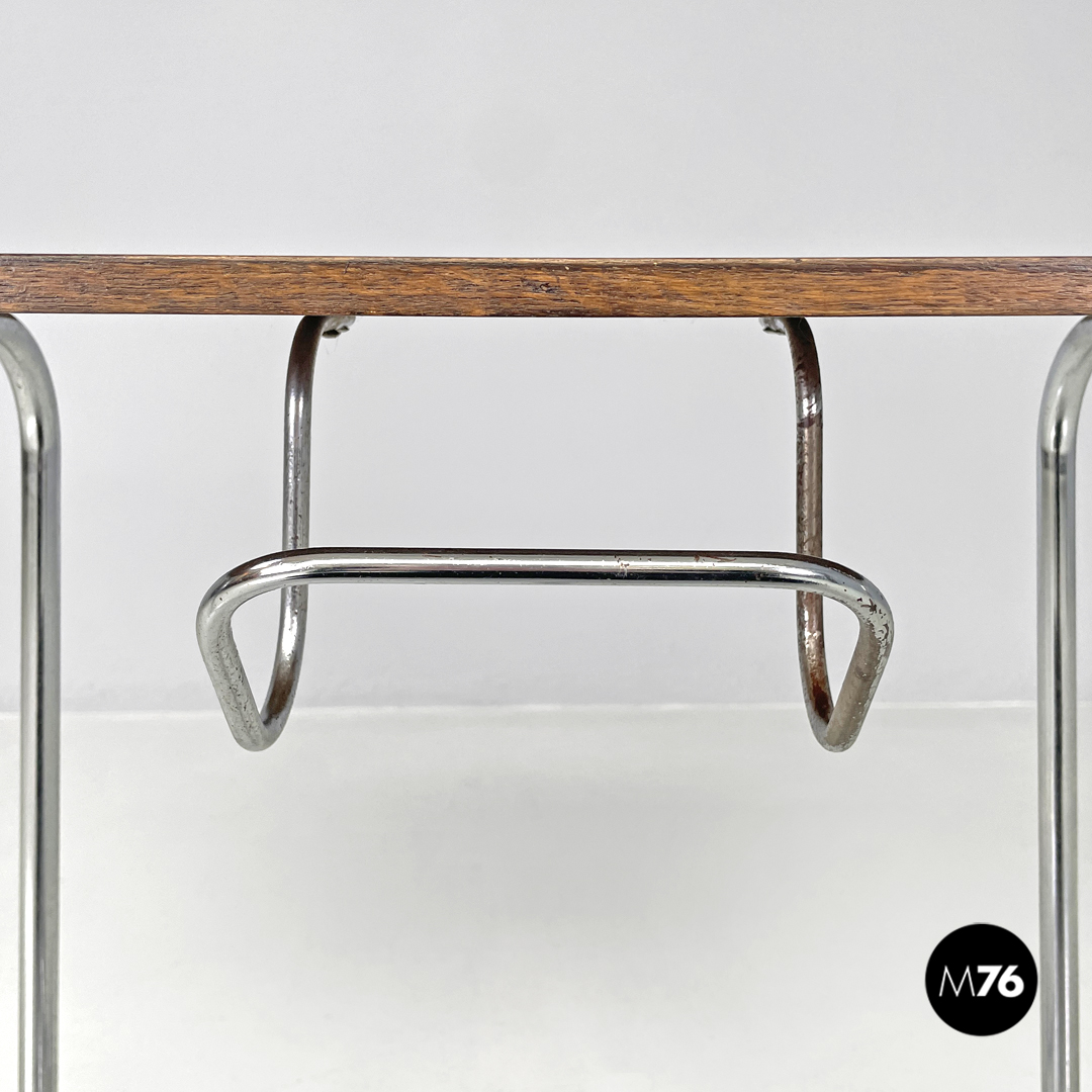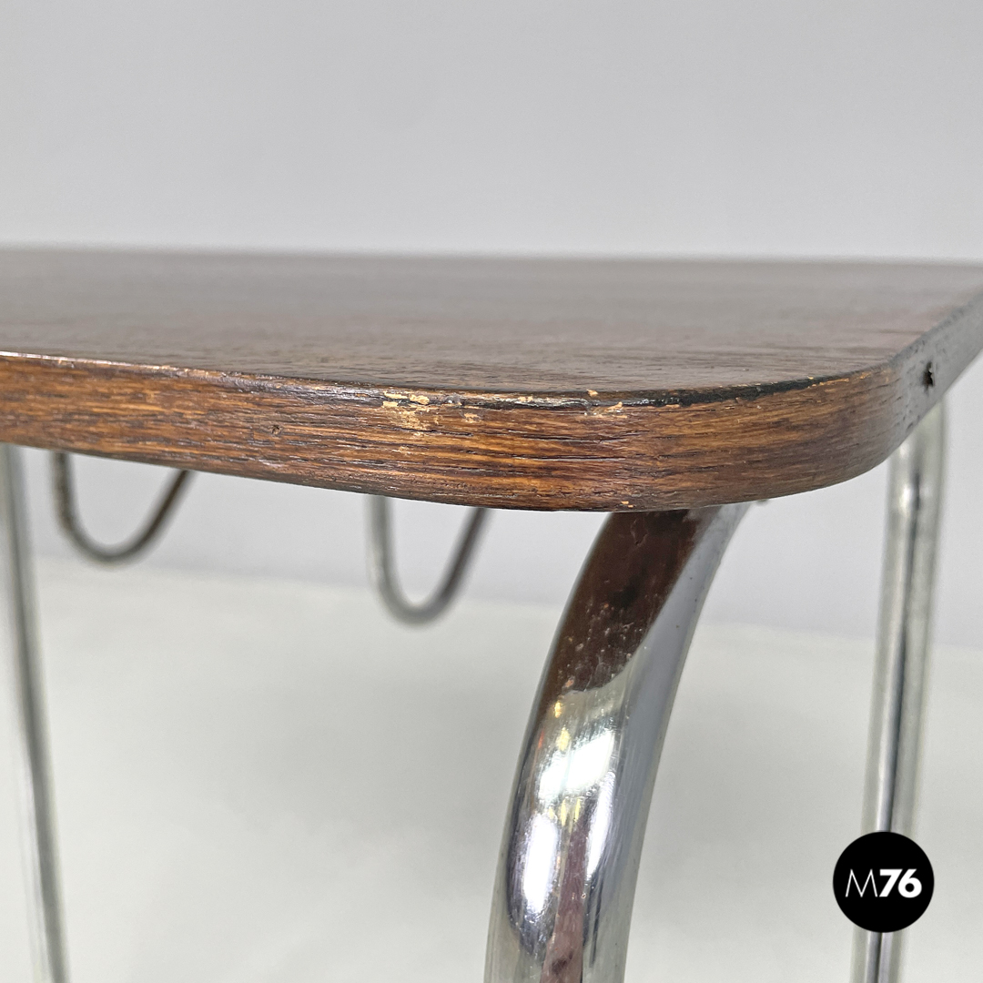 Tavolo da caffè con gancio portagiornali in legno e metallo, 1950 ca.