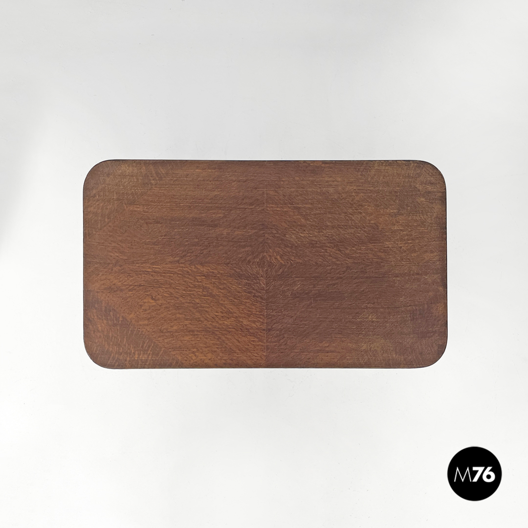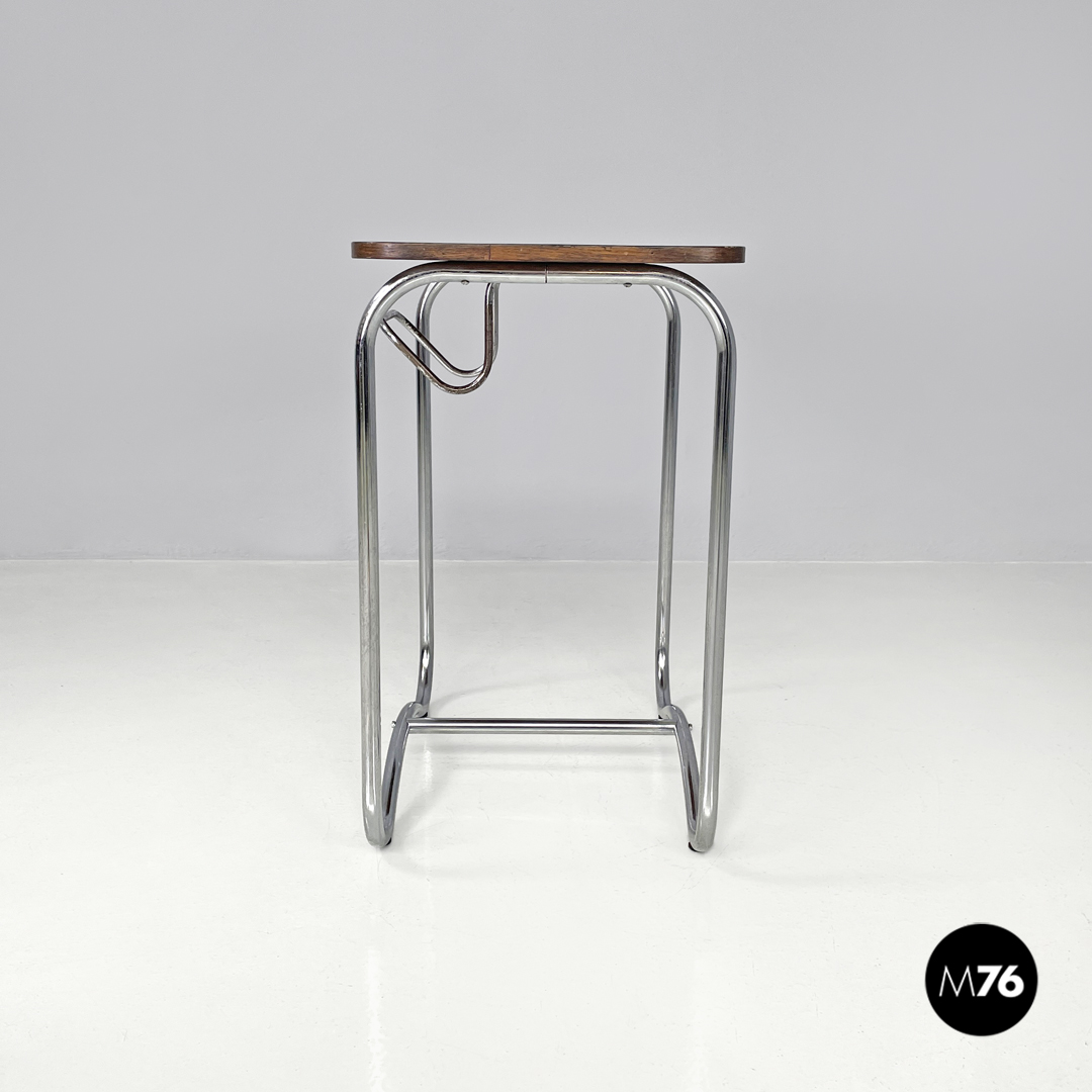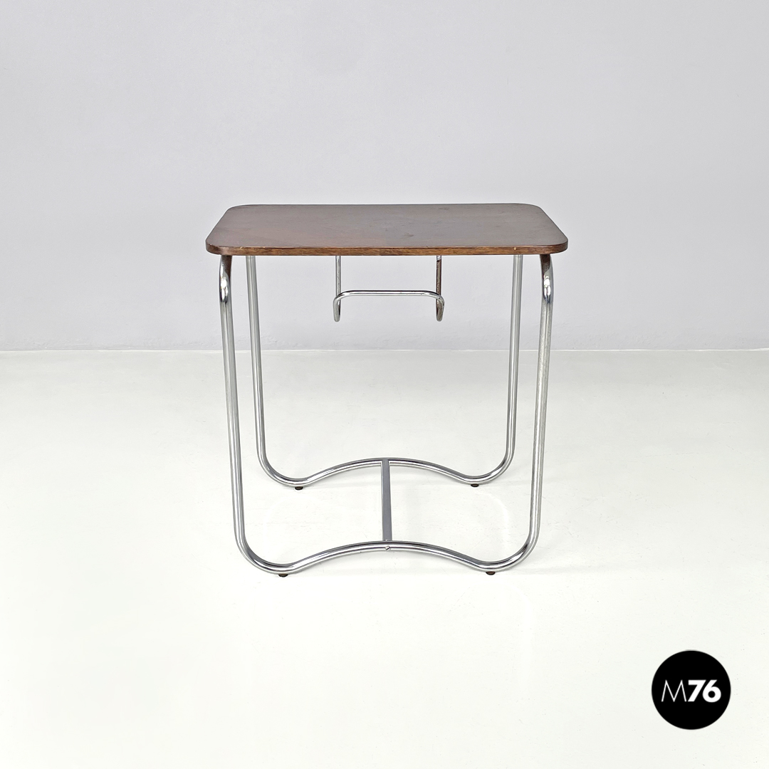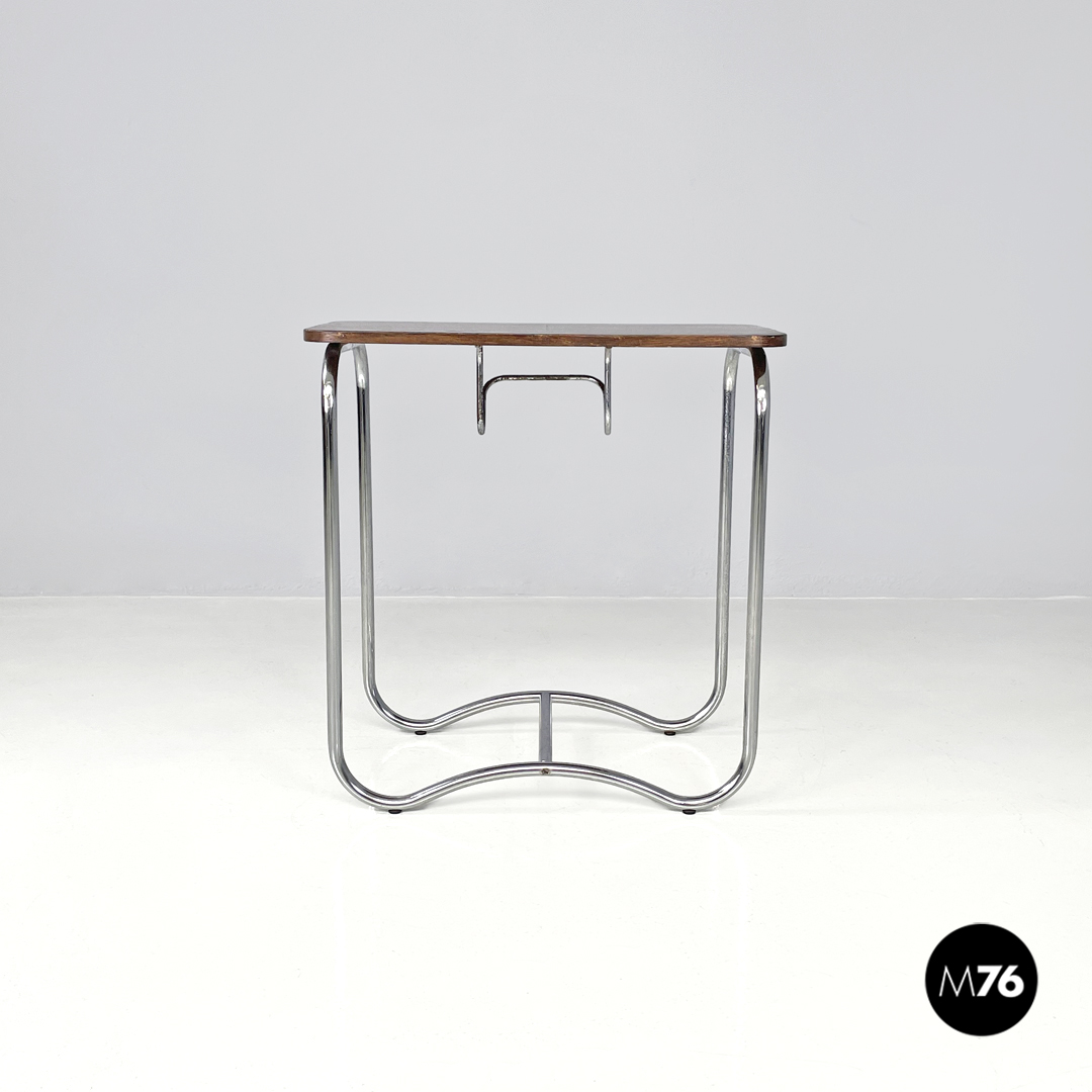 Tavolo da caffè con gancio portagiornali in legno e metallo, 1950 ca.