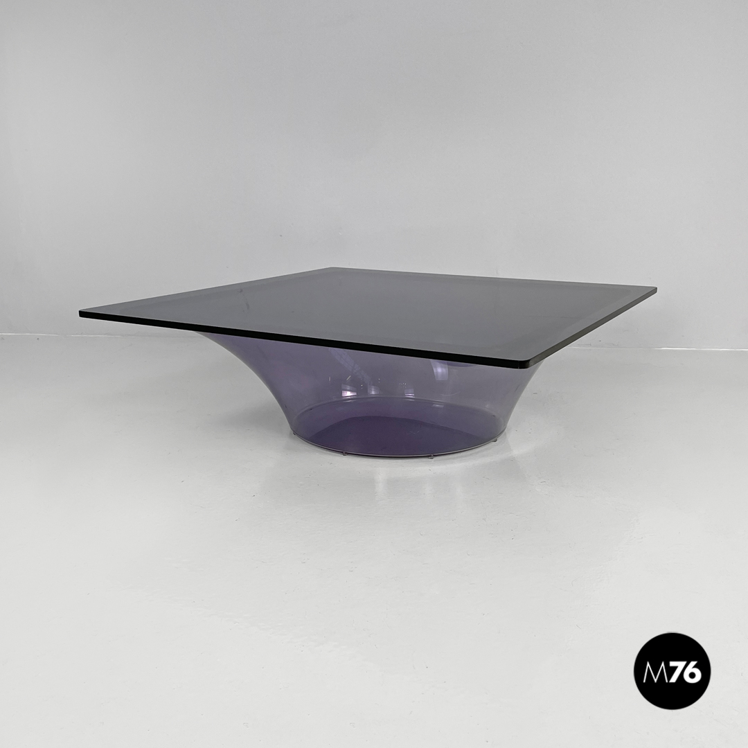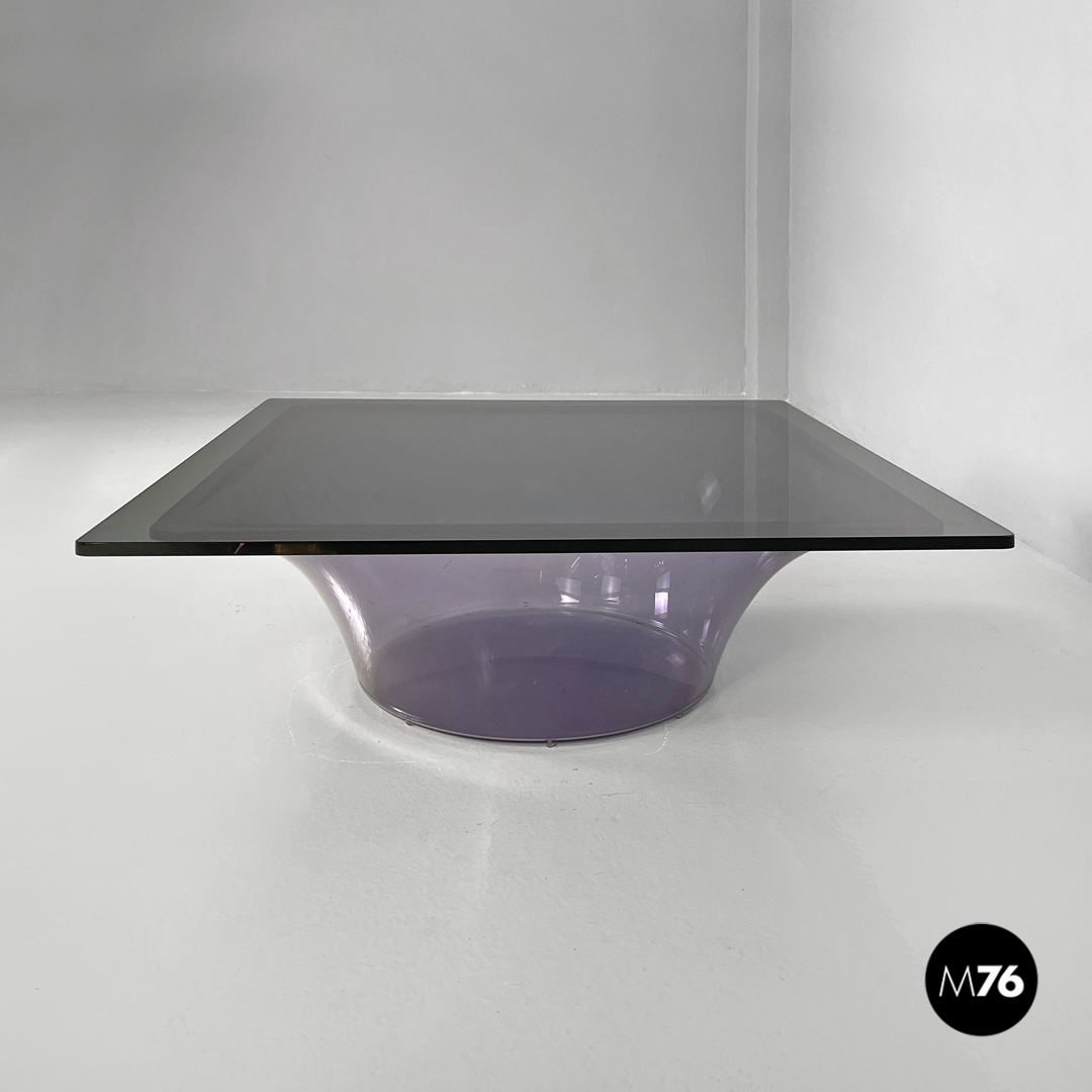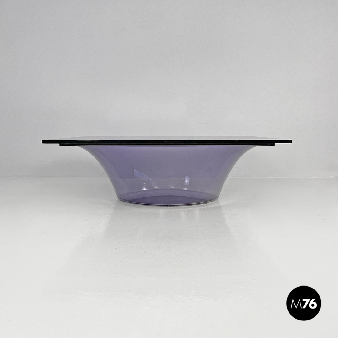 Tavolo da caffè in plexiglass viola e vetro fumè, 1970 ca.
