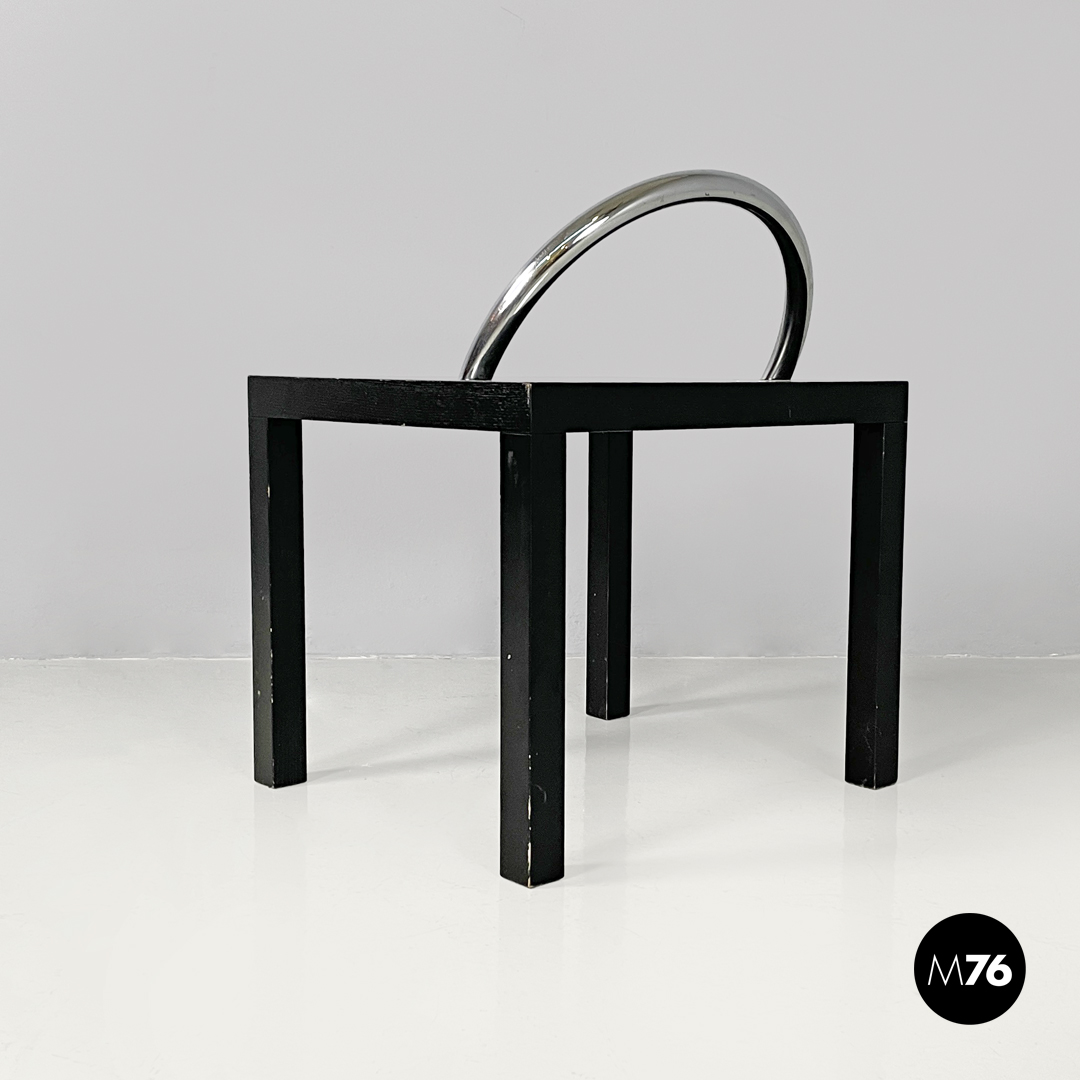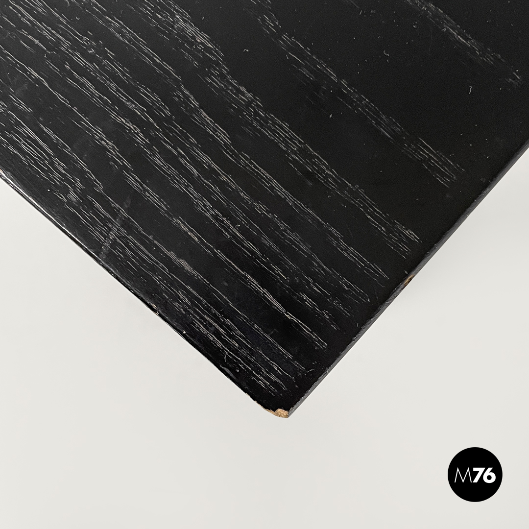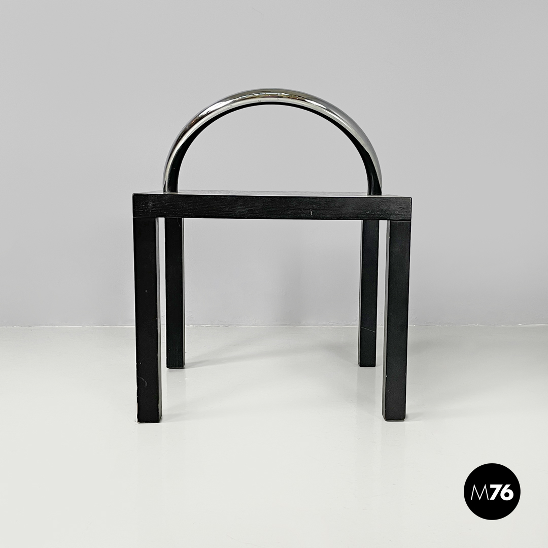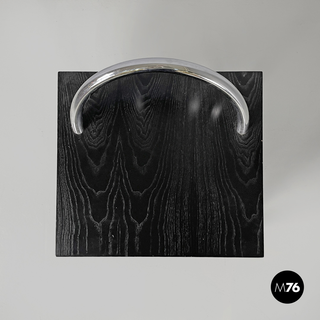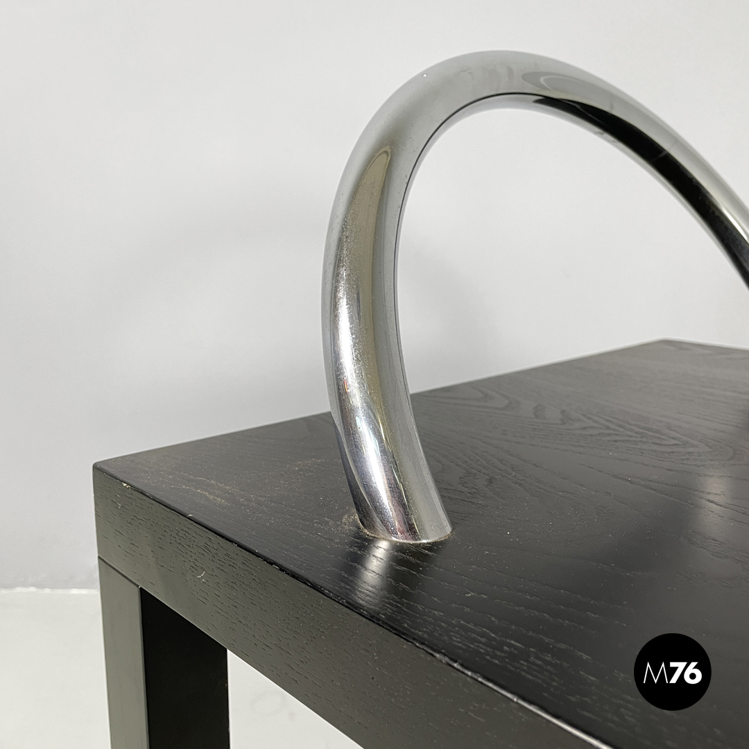 Tavolo da caffè modello Ko-Ko in legno nero a base quadrata. Su un lato del piano è presente una maniglia in tubolare di metallo utilizzabile anche come schienale, così da trasformare il tavolo anche in sgabello o sedia. Le quattro gambe sono a sezione quadrata.