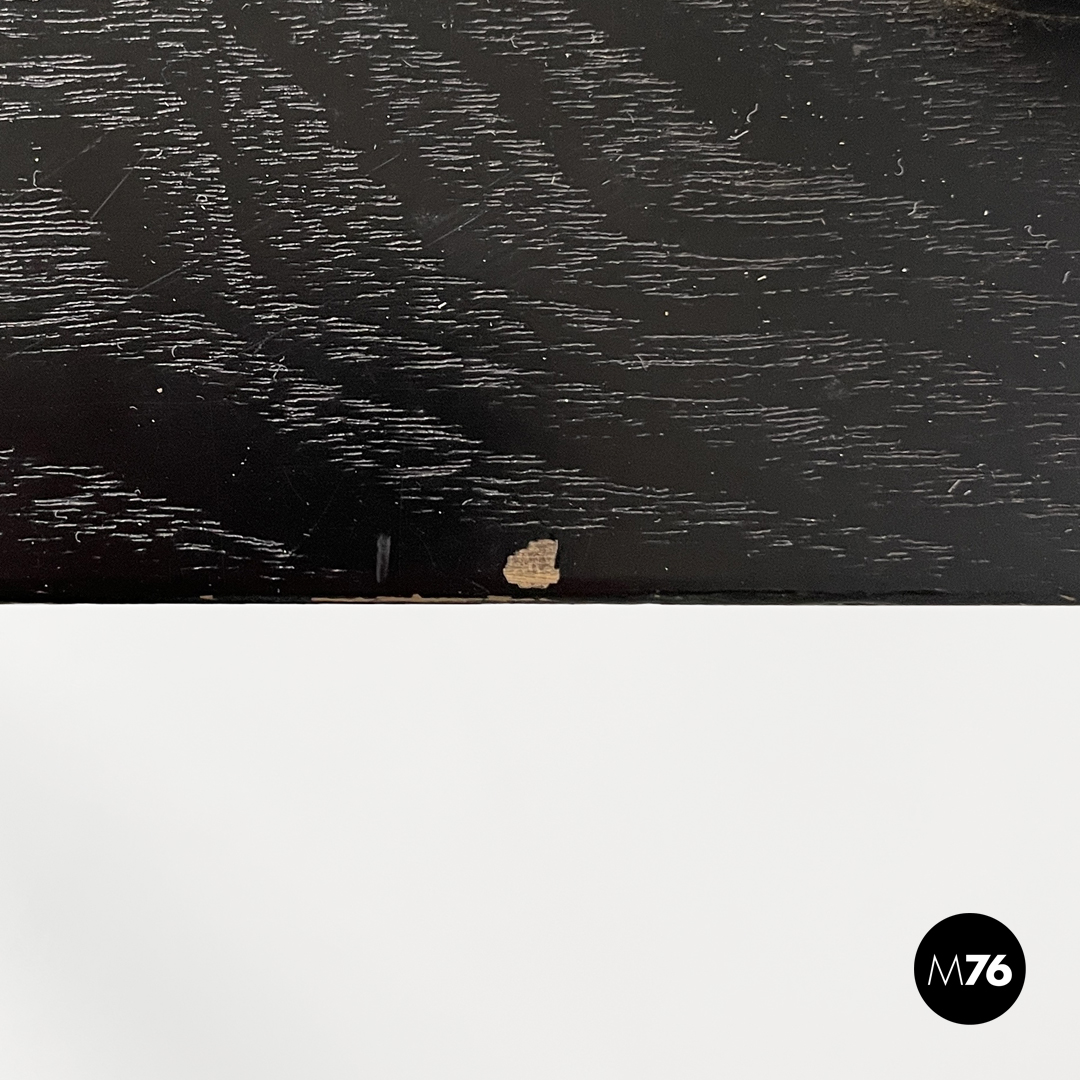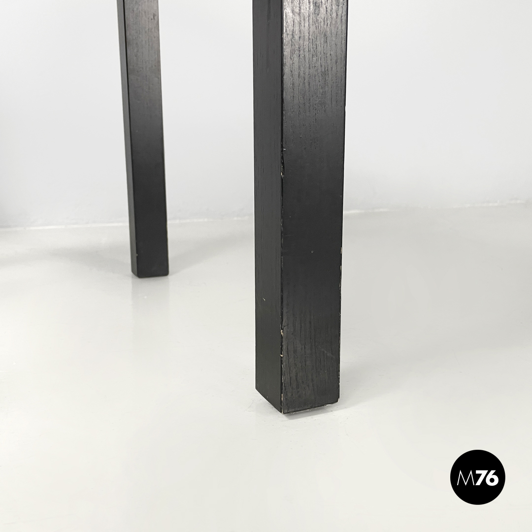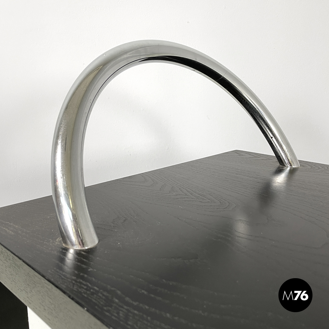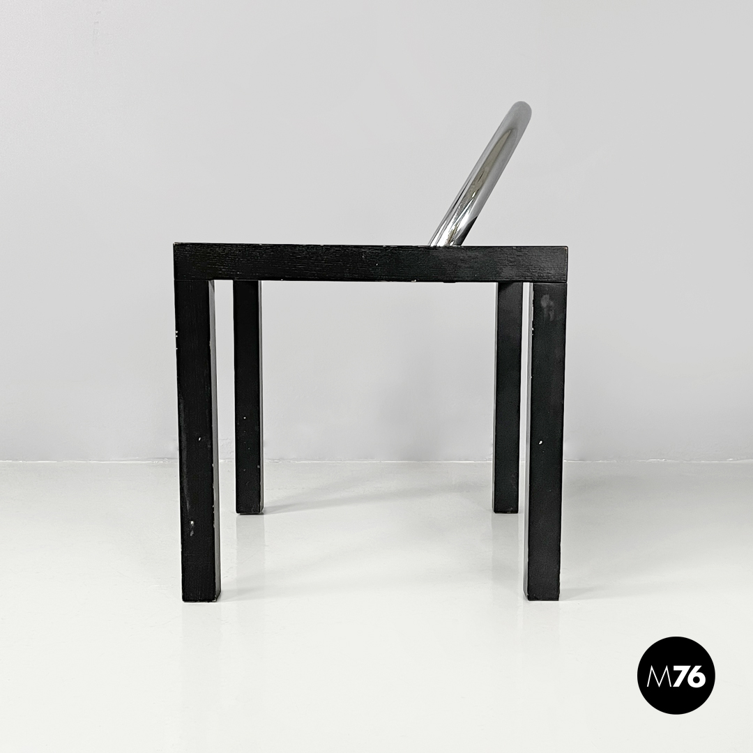 Tavolo da caffè modello Ko-Ko in legno nero a base quadrata. Su un lato del piano è presente una maniglia in tubolare di metallo utilizzabile anche come schienale, così da trasformare il tavolo anche in sgabello o sedia. Le quattro gambe sono a sezione quadrata.