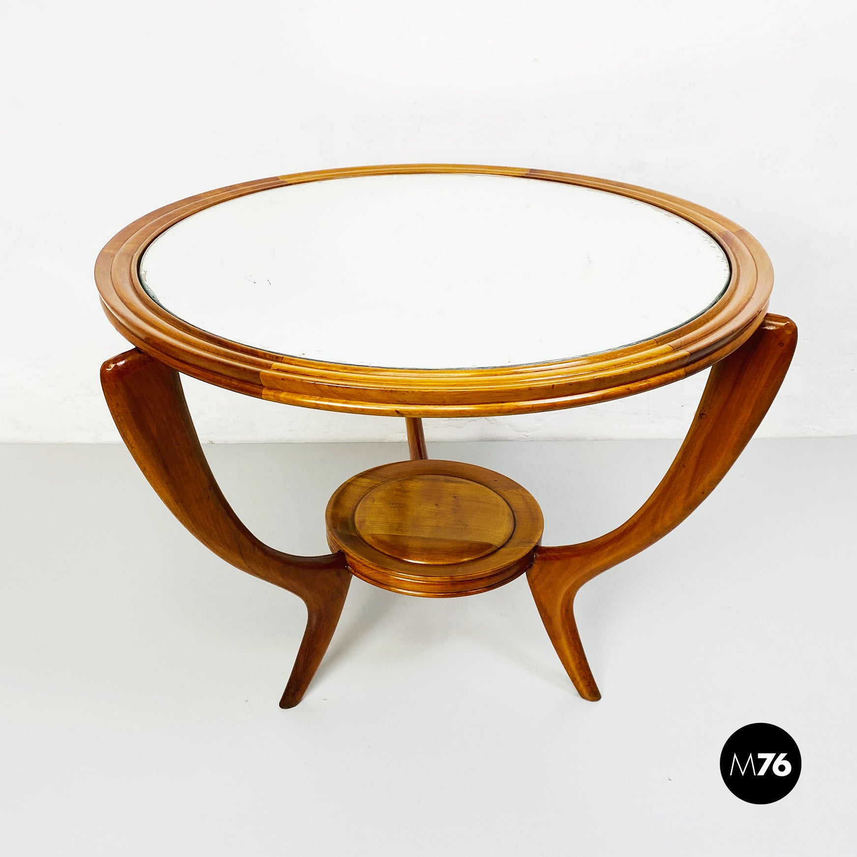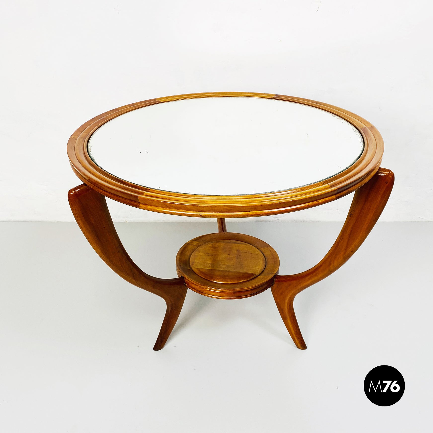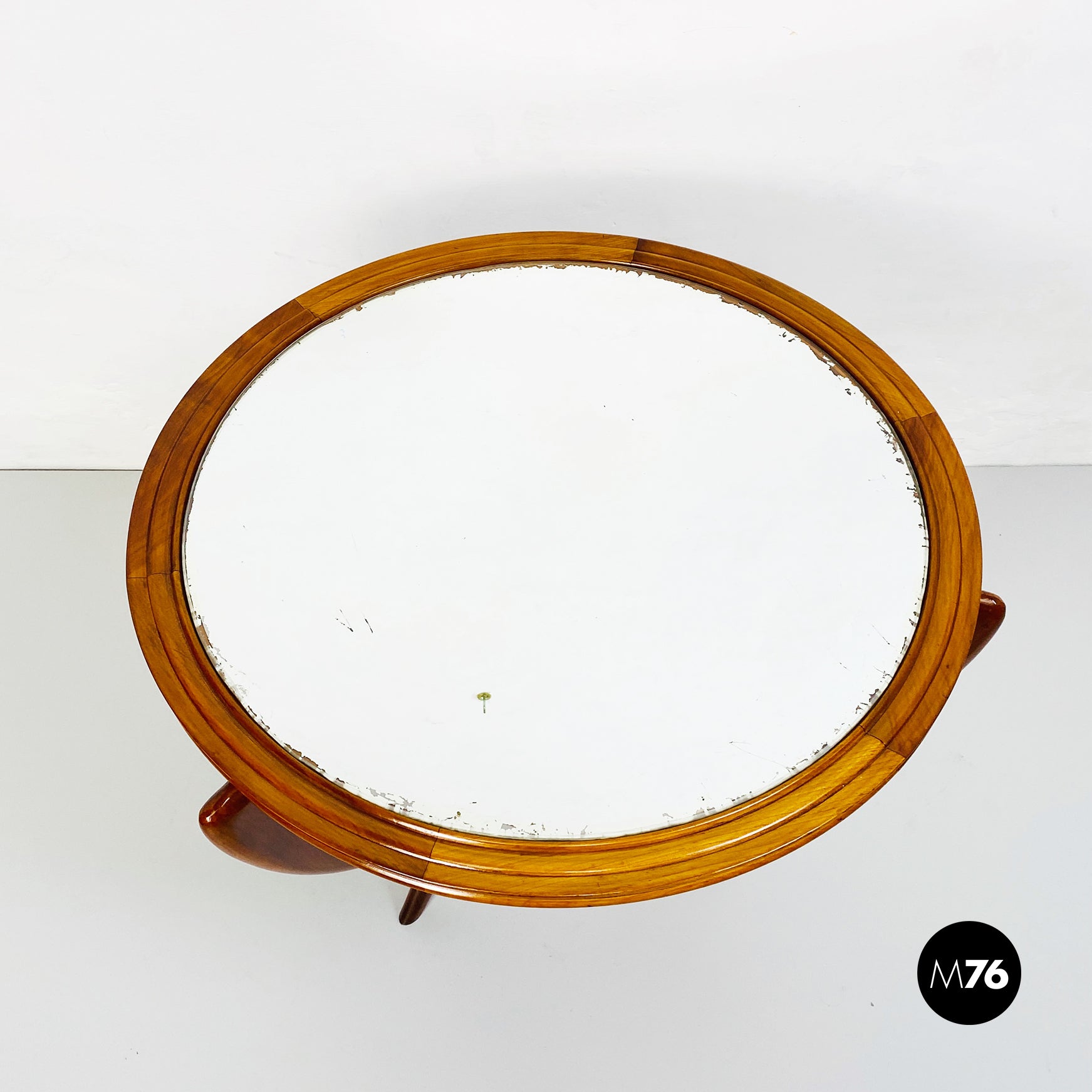 Tavolo da caffè tondo in legno con specchio, 1950 ca.