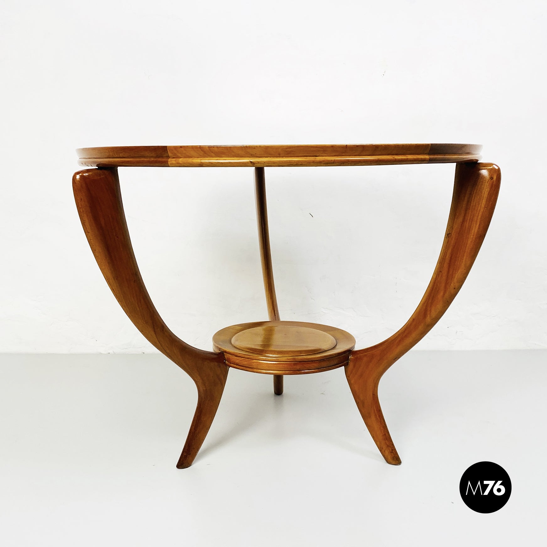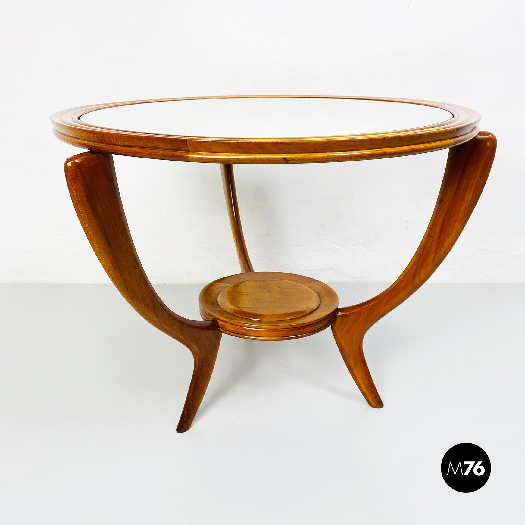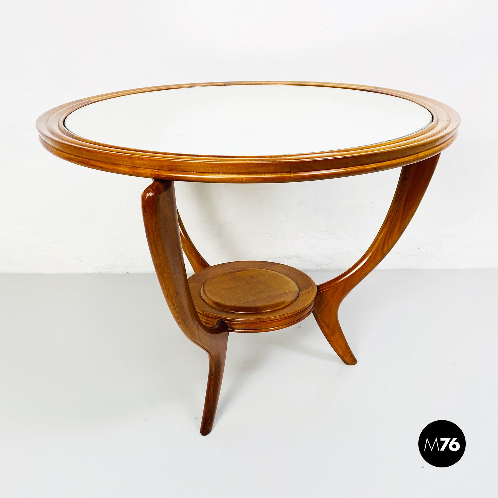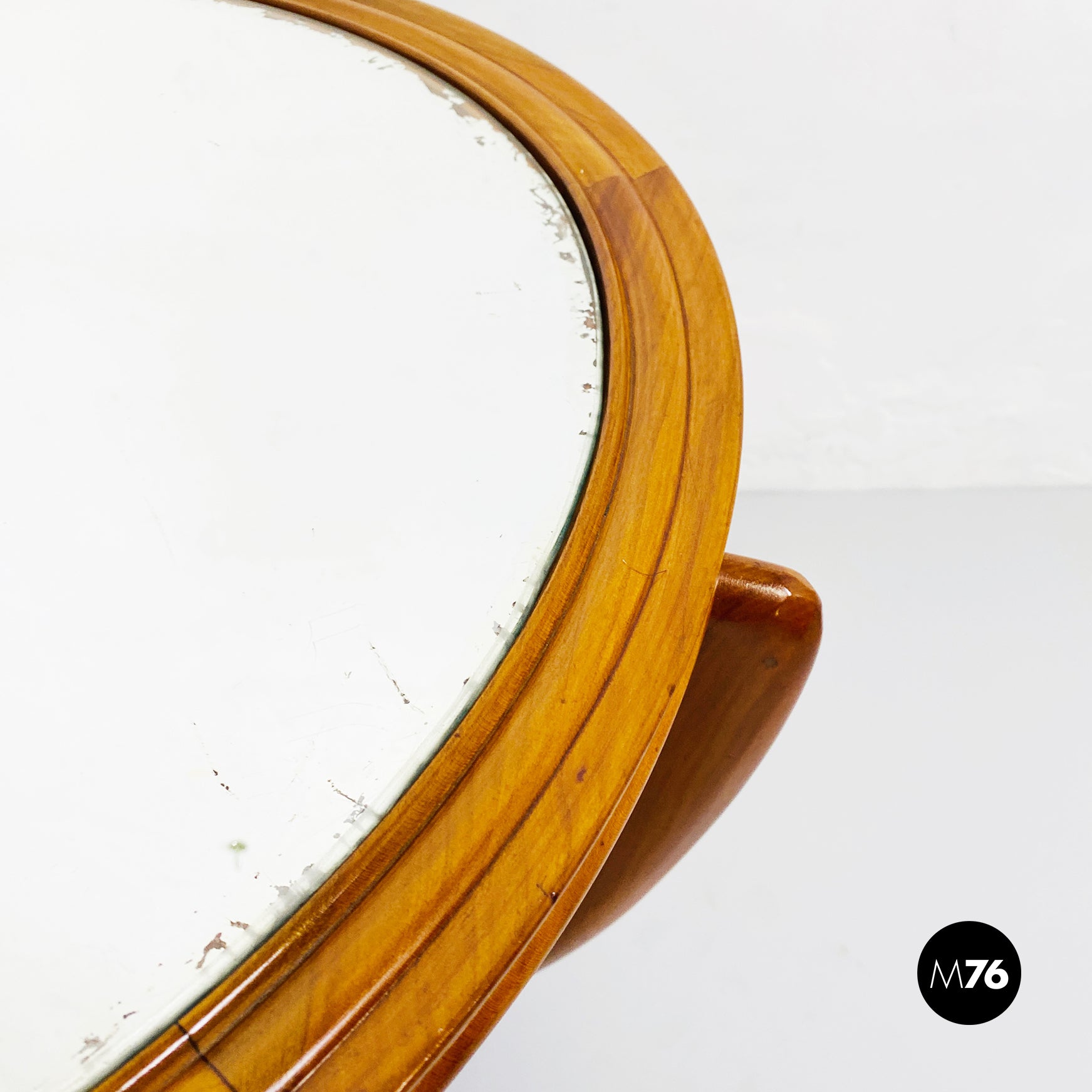 Tavolo da caffè tondo in legno con specchio, 1950 ca.