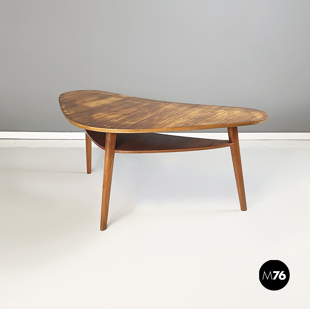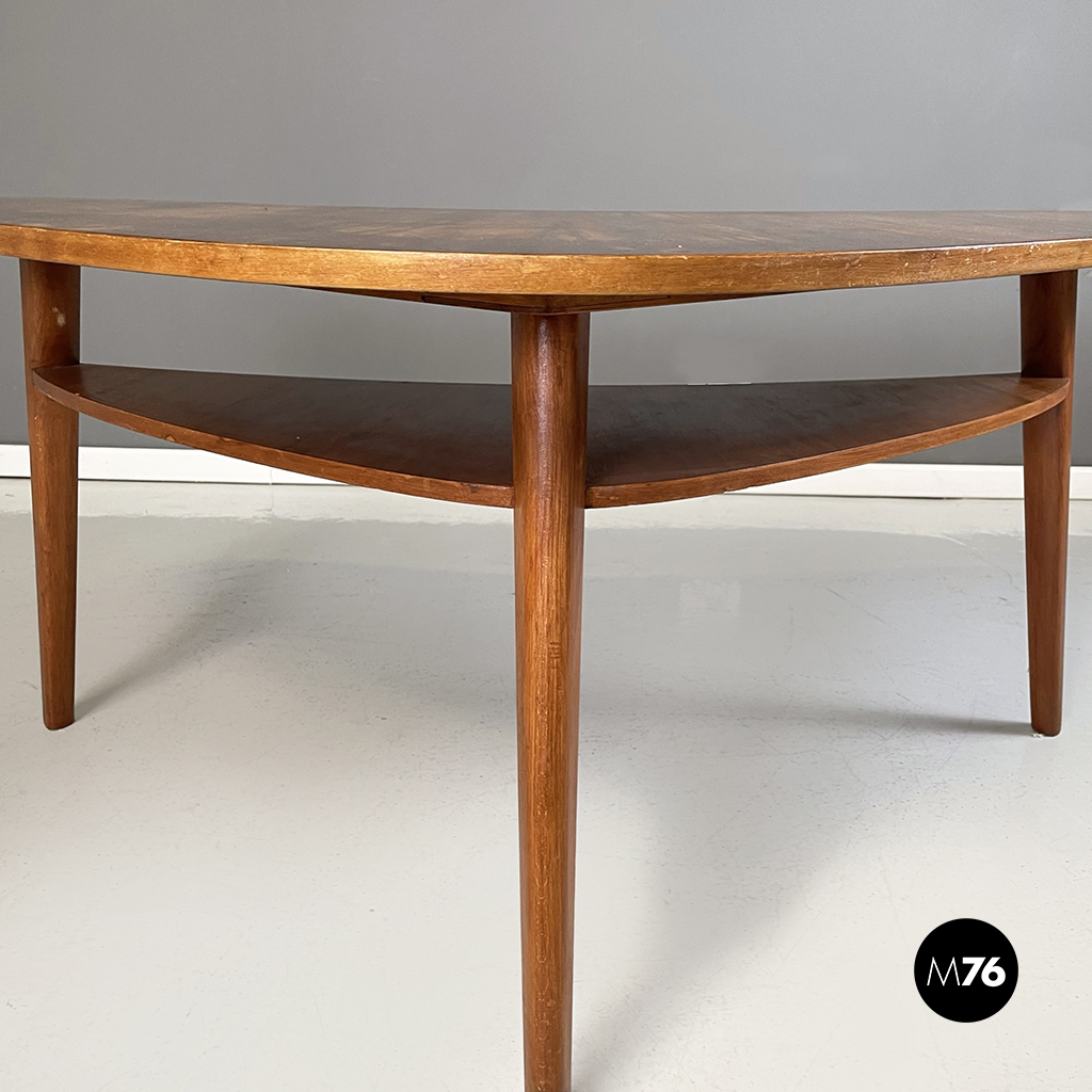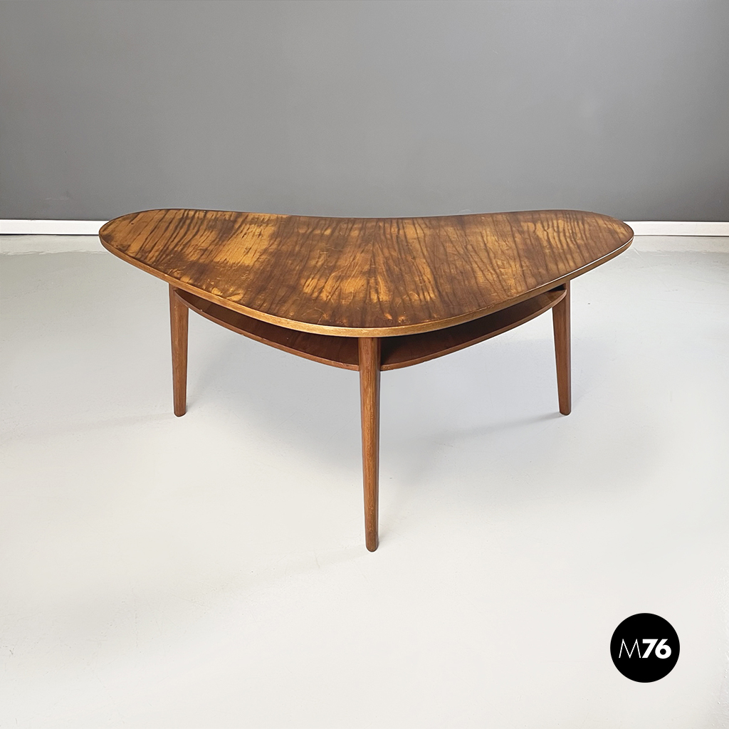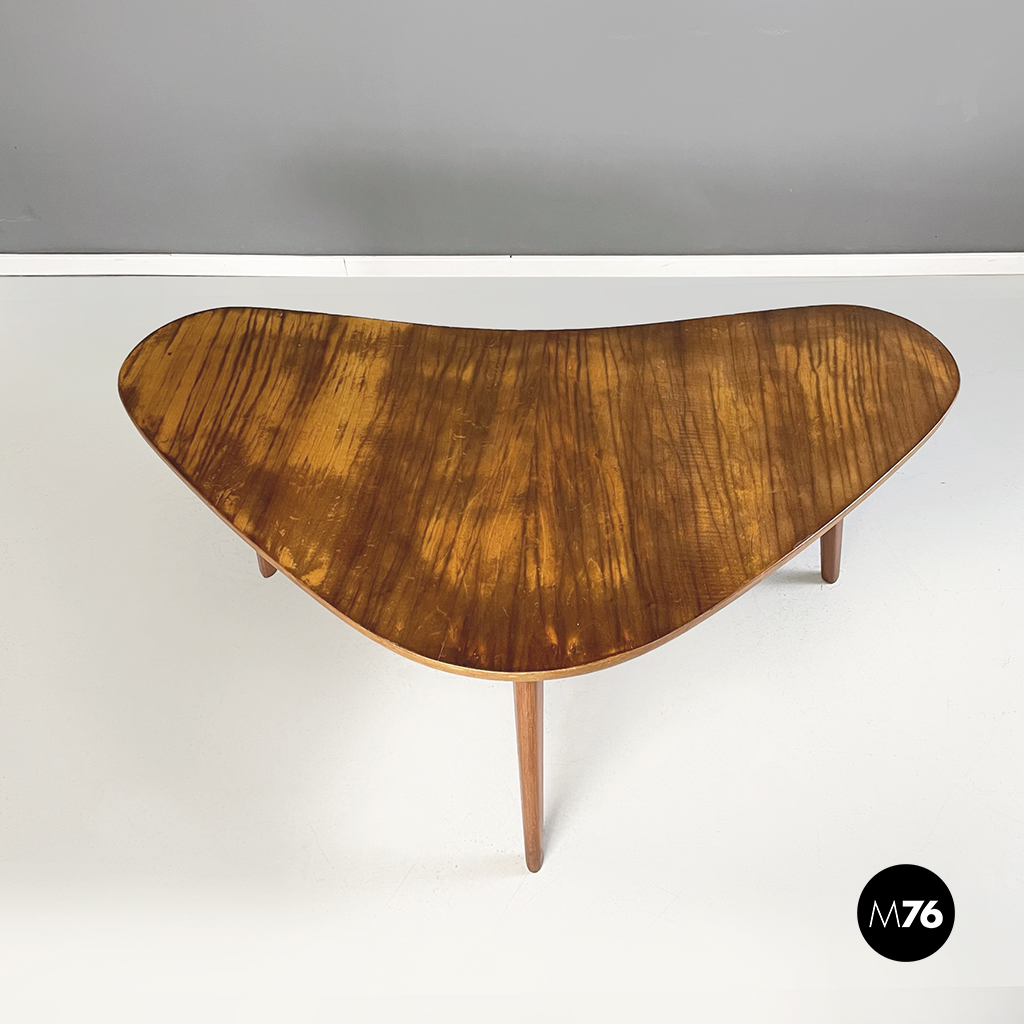 Tavolo da caffè triangolare in legno, 1960 ca.