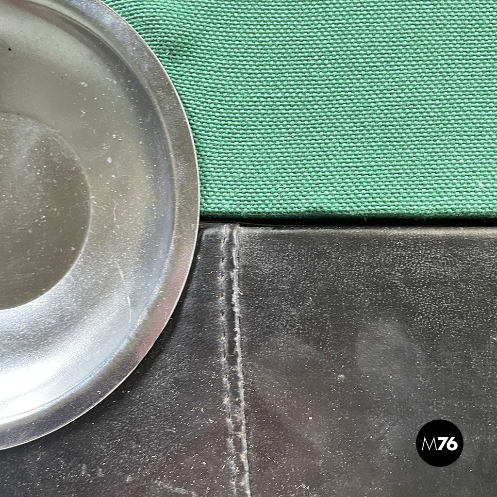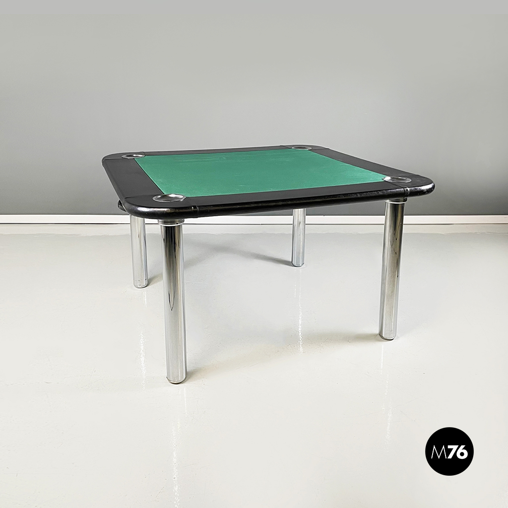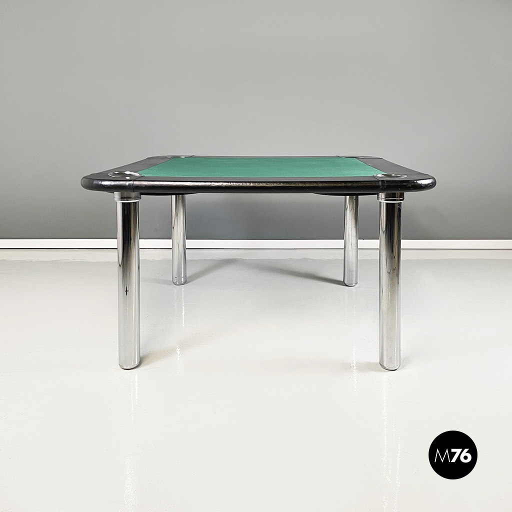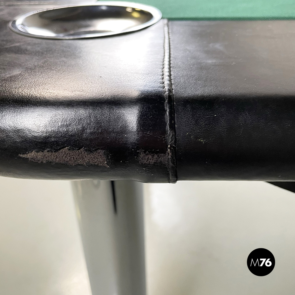 Tavolo da gioco i tessuto verde, pelle nera e acciaio, 1970 ca.
