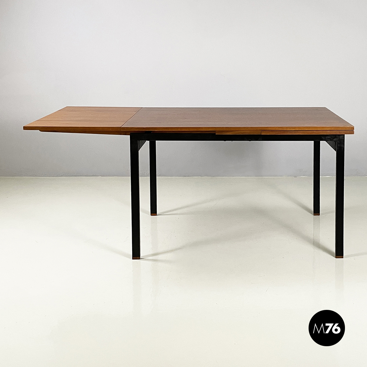 Tavolo da pranzo allungabile in legno e metallo nero, 1960 ca.
