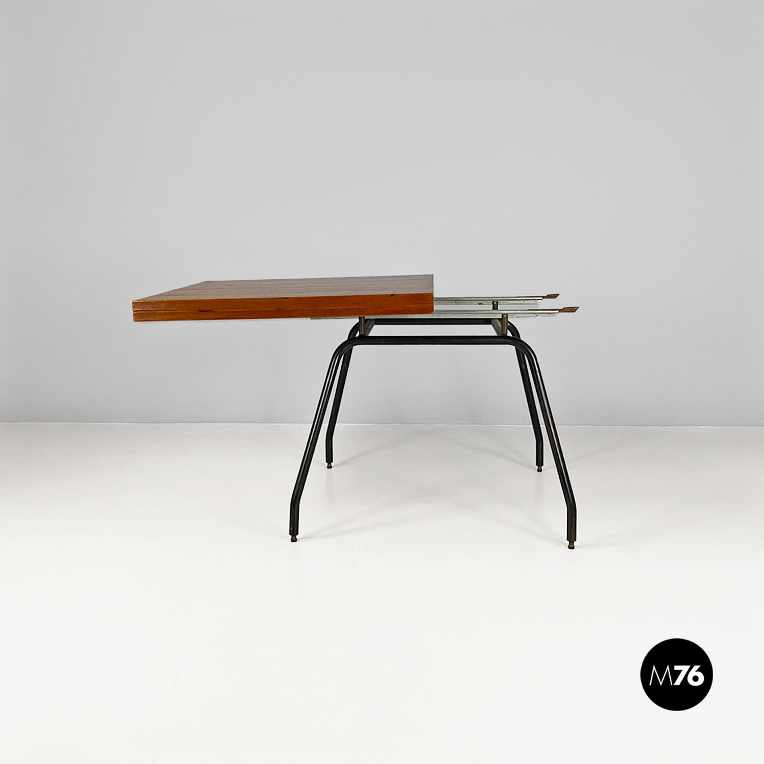 Tavolo da pranzo allungabile in metallo e legno, 1960 ca.