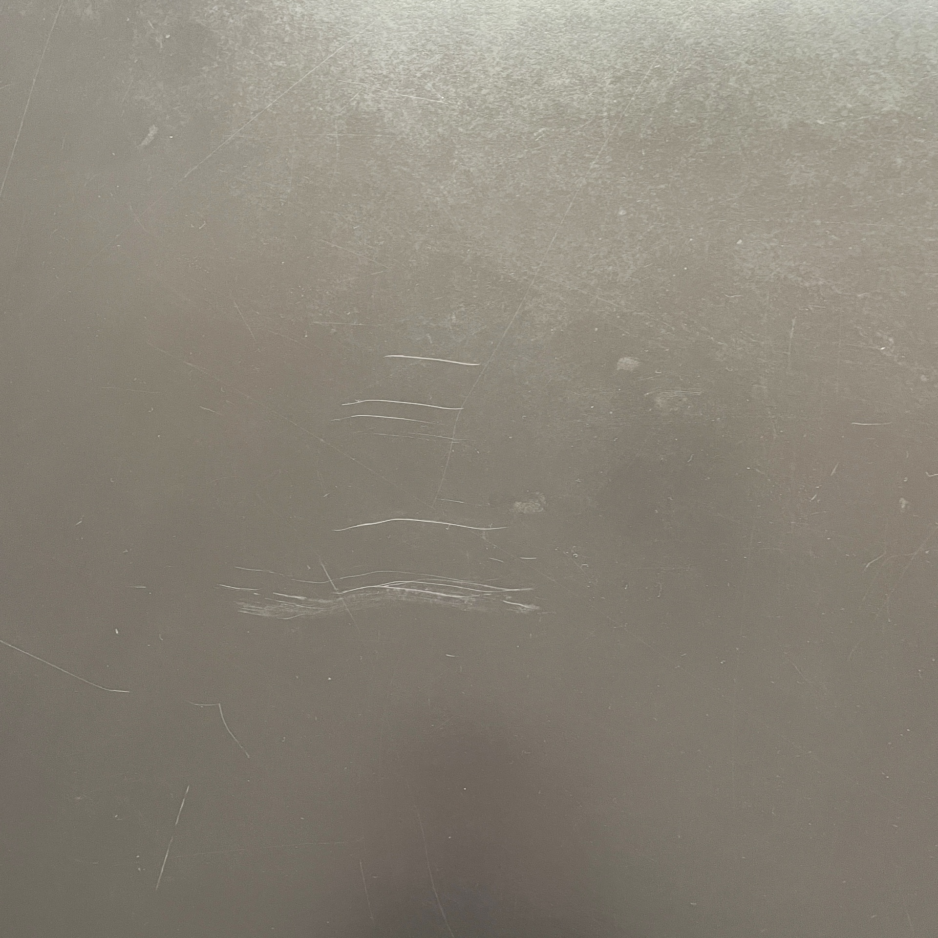 Condizioni discrete. Il piano presenta segni e graffi sparsi. Il metallo nero presenta piccole mancanze di colore. Segni del tempo sparsi.