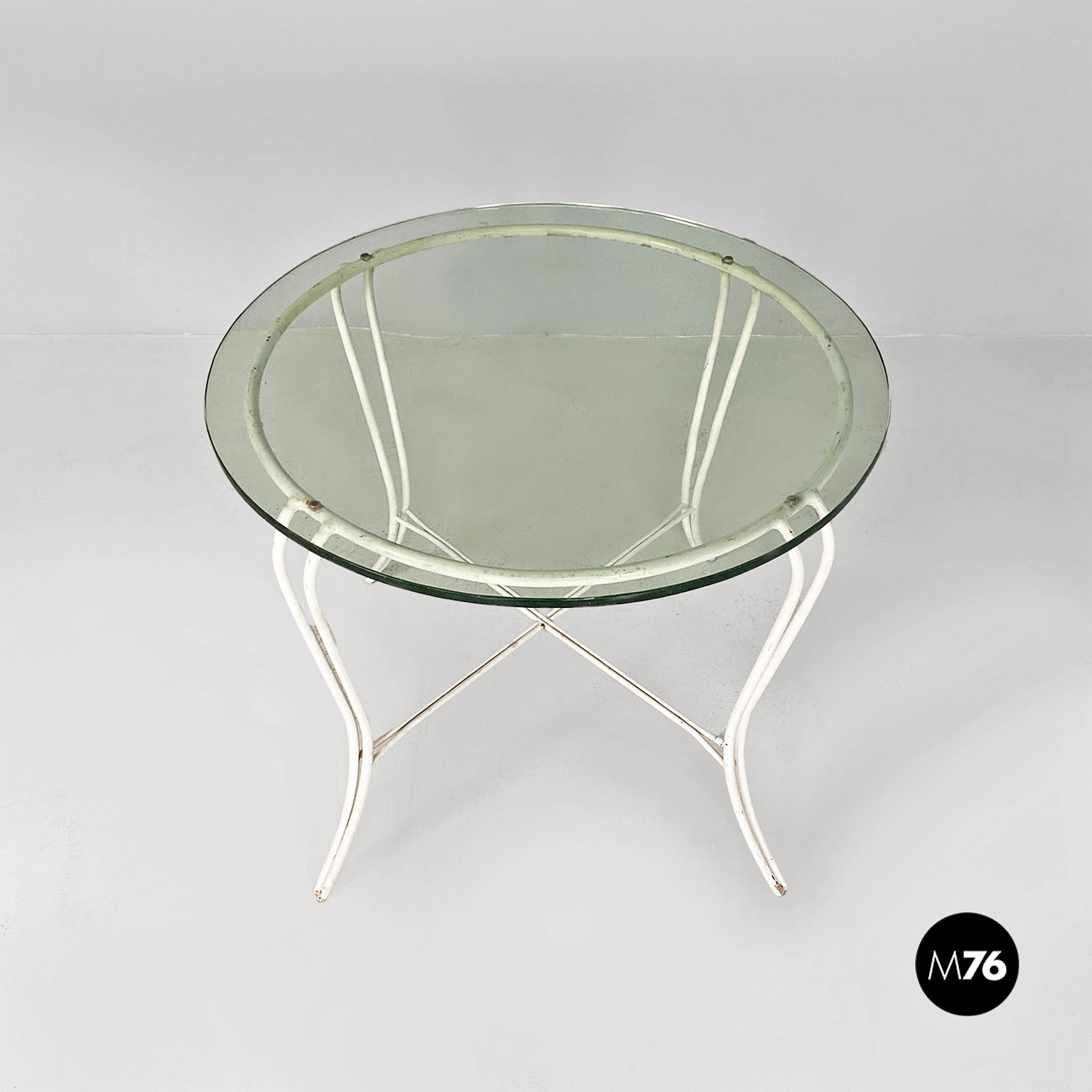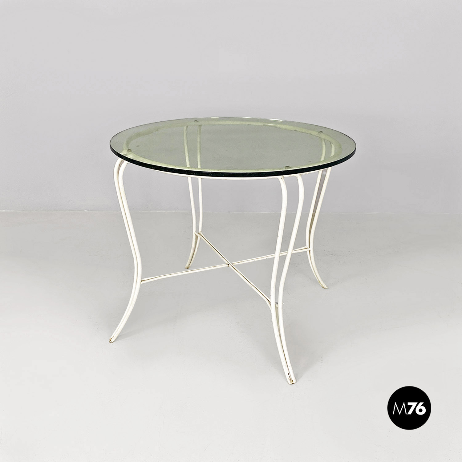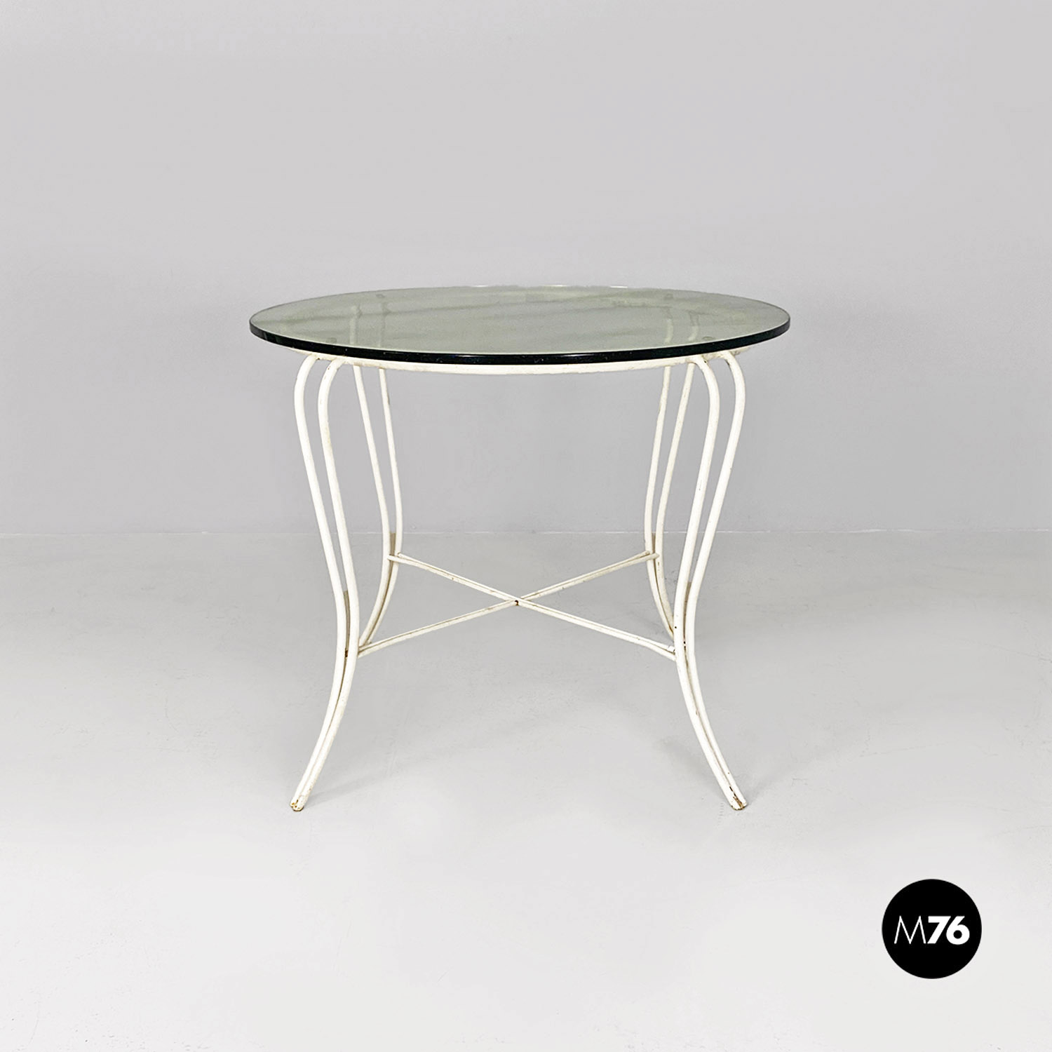 Tavolo da pranzo in ferro bianco e vetro, 1960 ca.