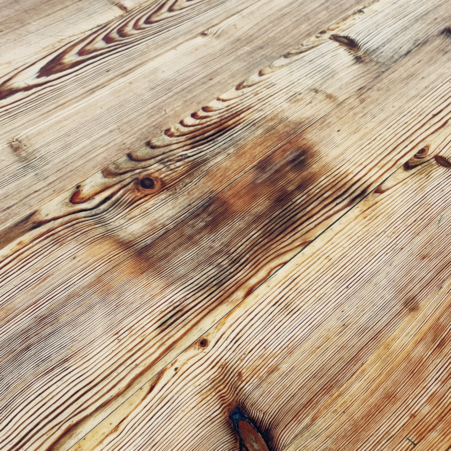 Condizioni discrete. Presenta segni dati dal tempo e dall’utilizzo, soprattutto sul piano. Il legno al centro del piano è leggermente incurvato verso l’interno.
