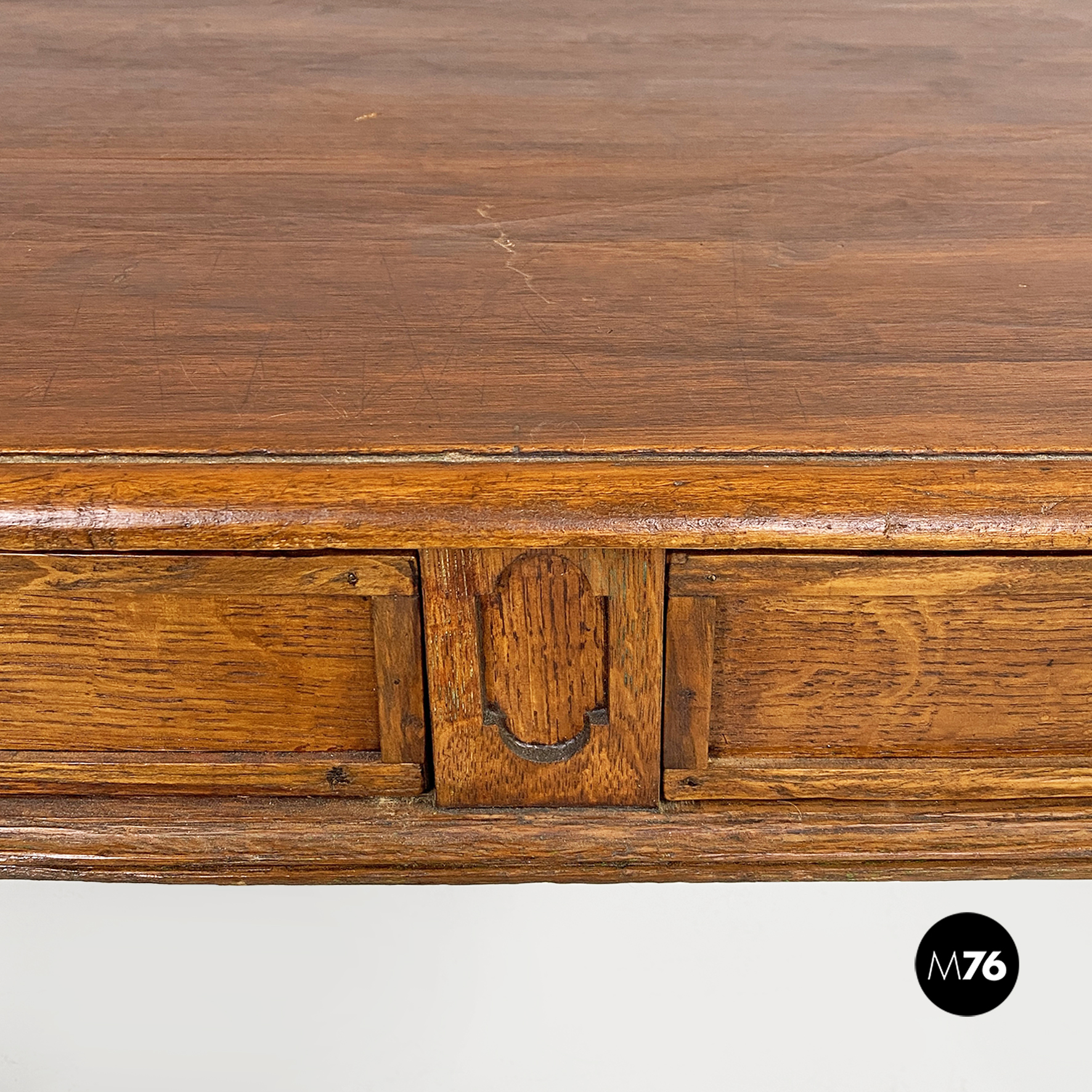 Tavolo antico da pranzo in legno con due cassetti, 1800 ca.