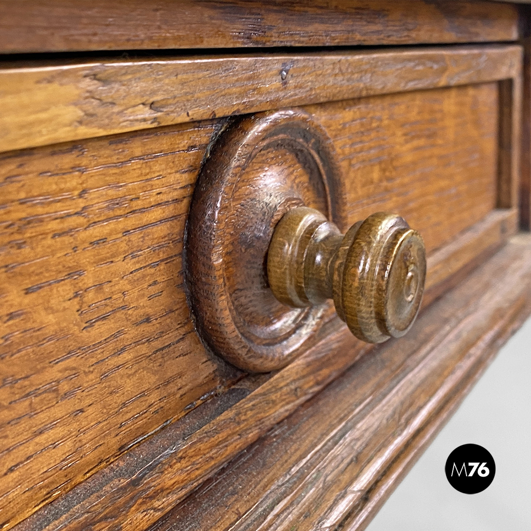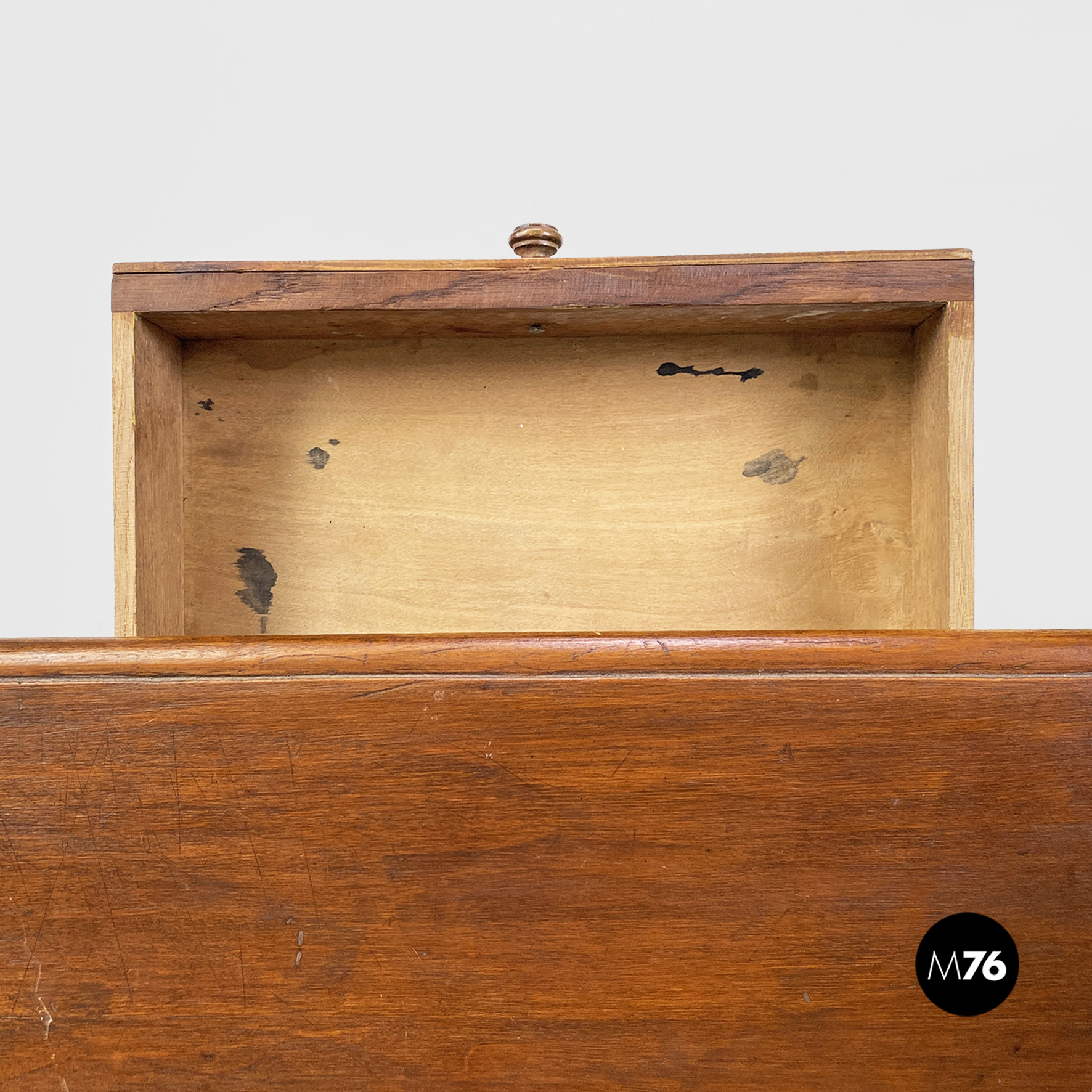 Condizioni vintage, con chiari segni dell’uso e del tempo come segni di vernice verde, piccole mancanze e aloni dentro ai cassetti.