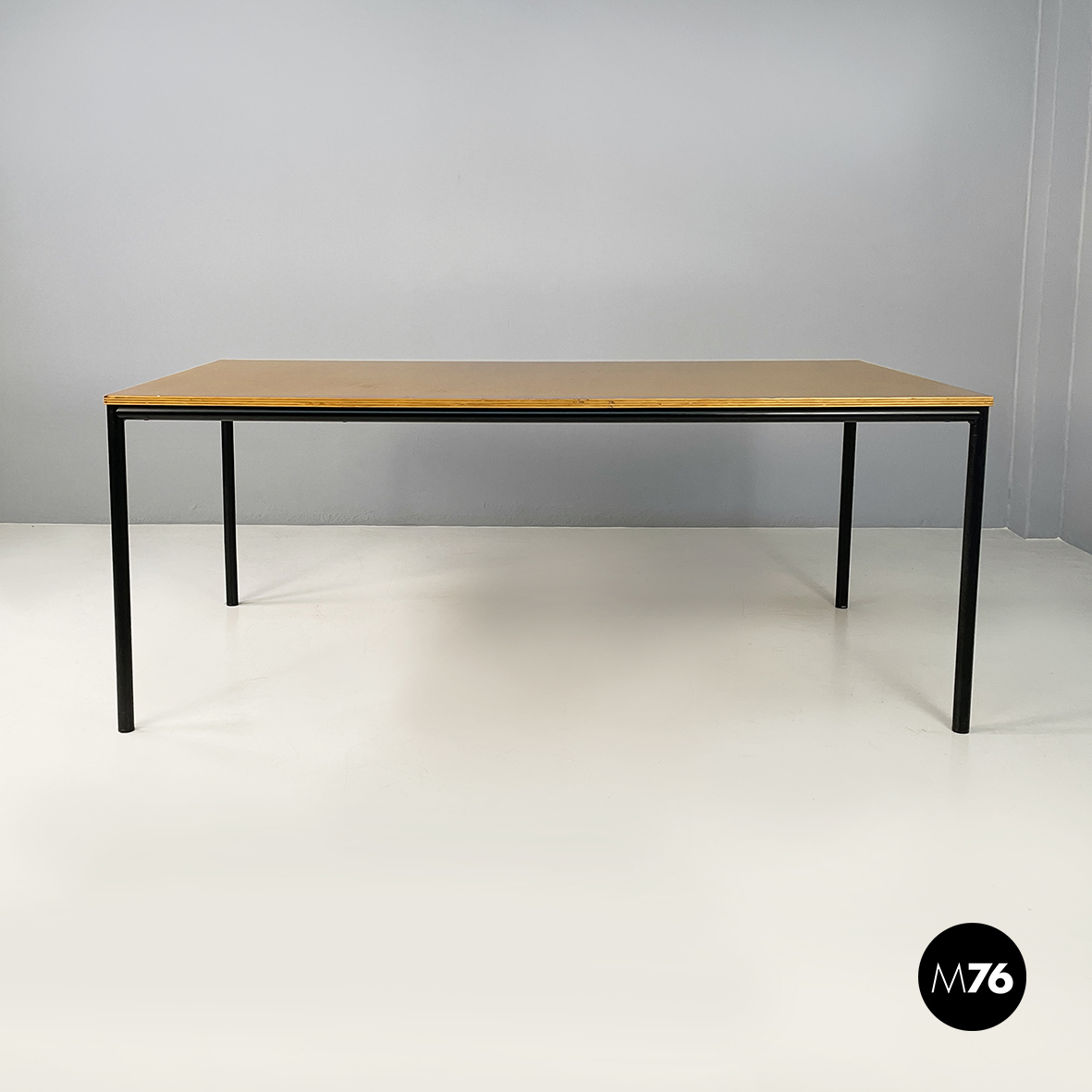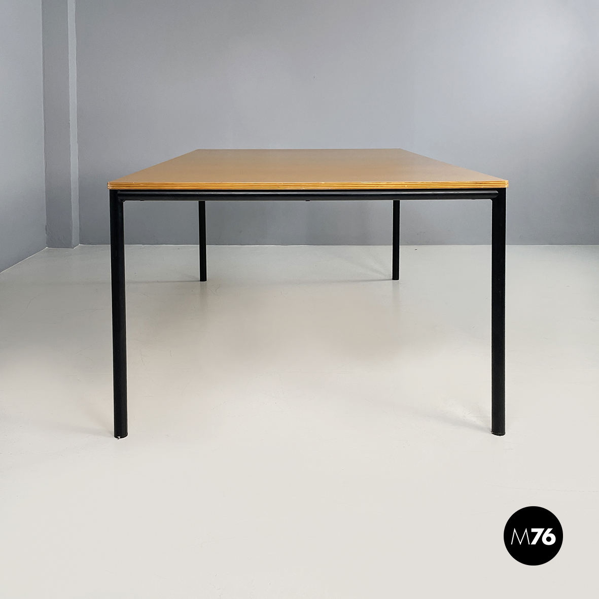 Tavolo da pranzo in legno e metallo nero, 1980 ca.