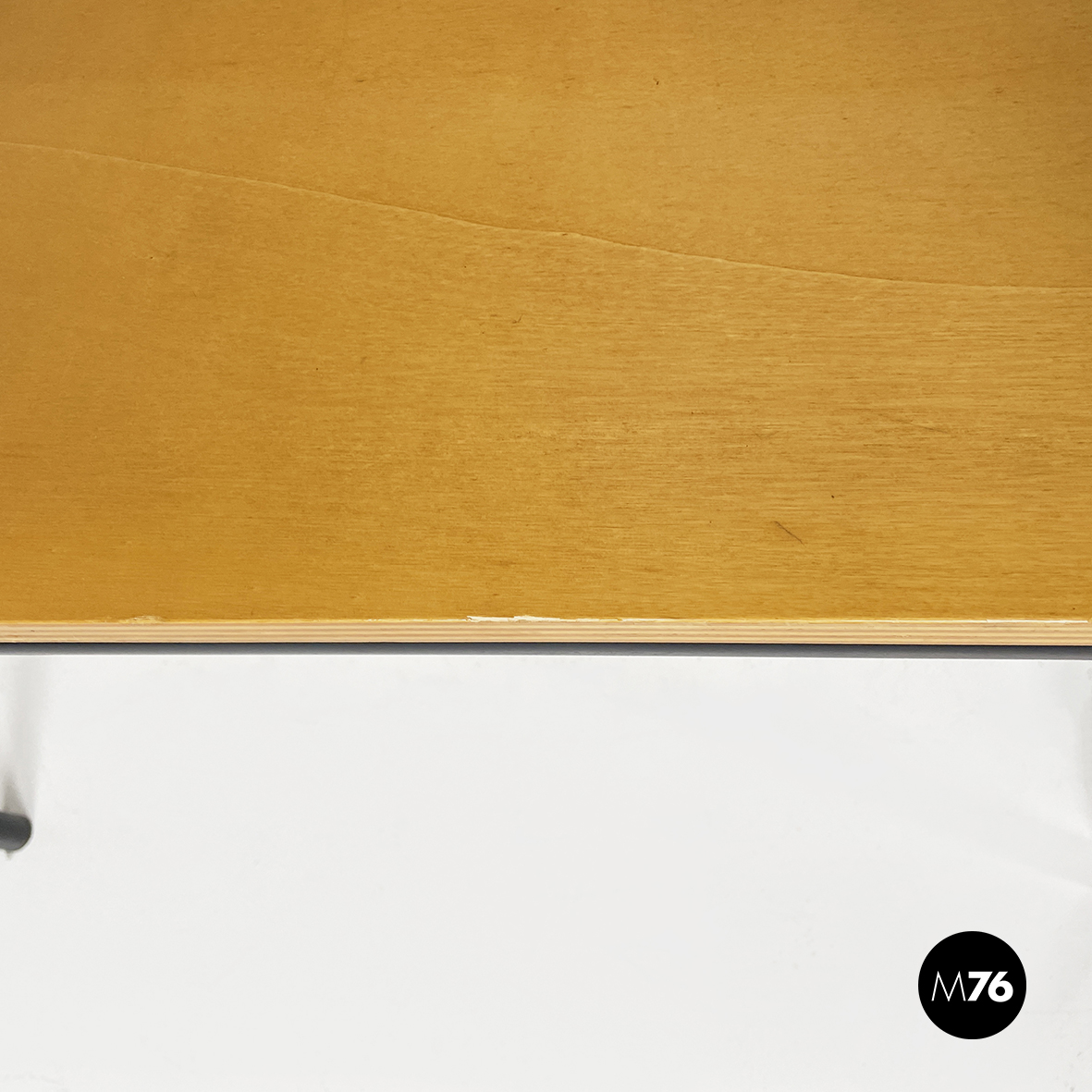 Tavolo da pranzo o scrivania con piano rettangolare in legno chiaro. La struttura a cui è fissato il piano e le zampe sono in tubolare di metallo verniciato nero.