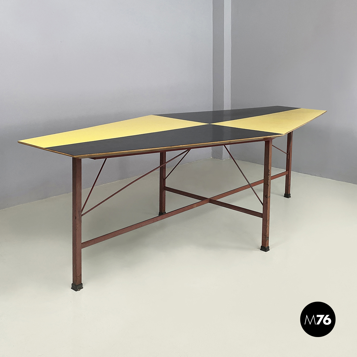 Tavolo da pranzo in legno, ferro e formica gialle e nera, 1950 ca.